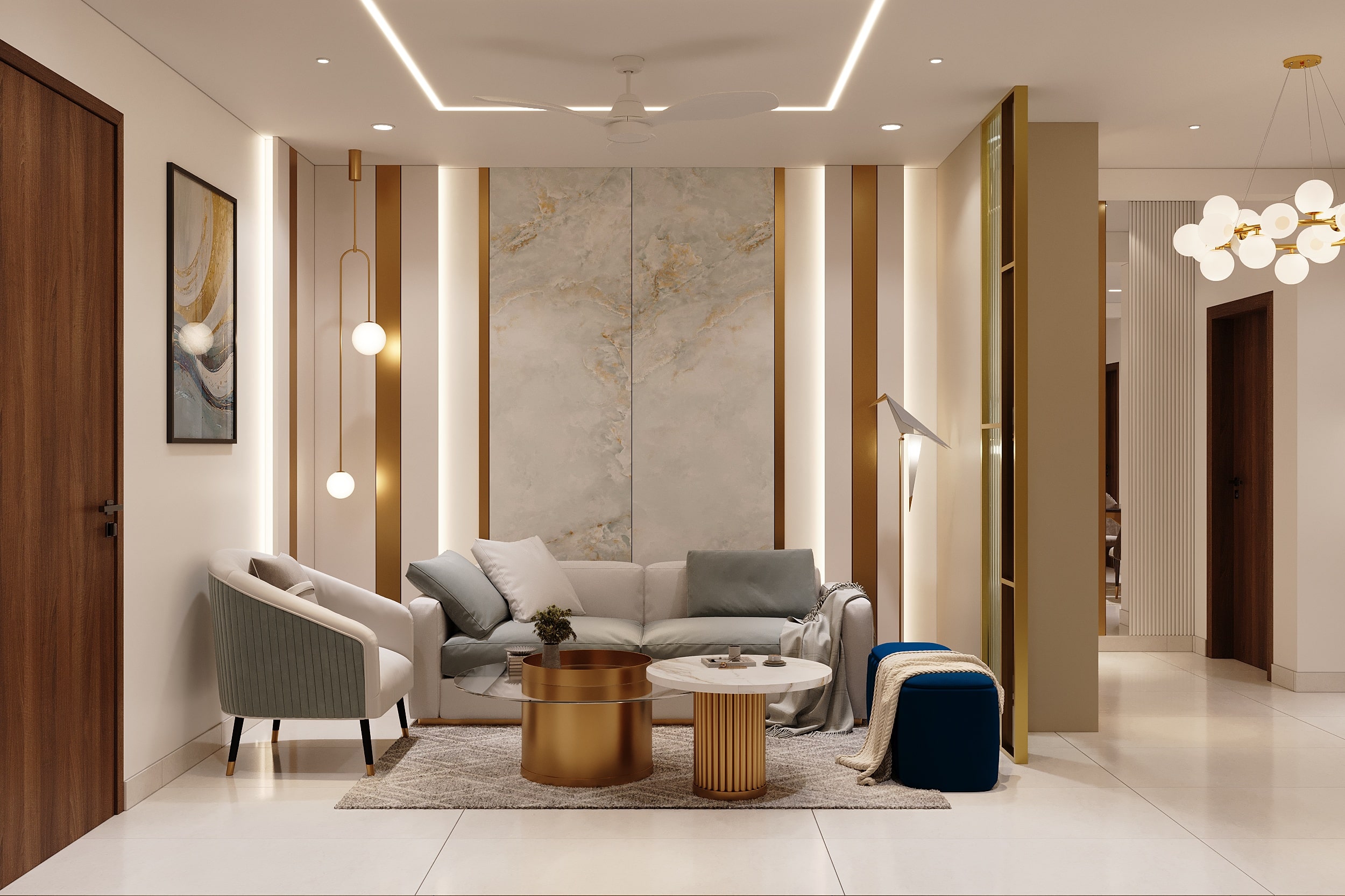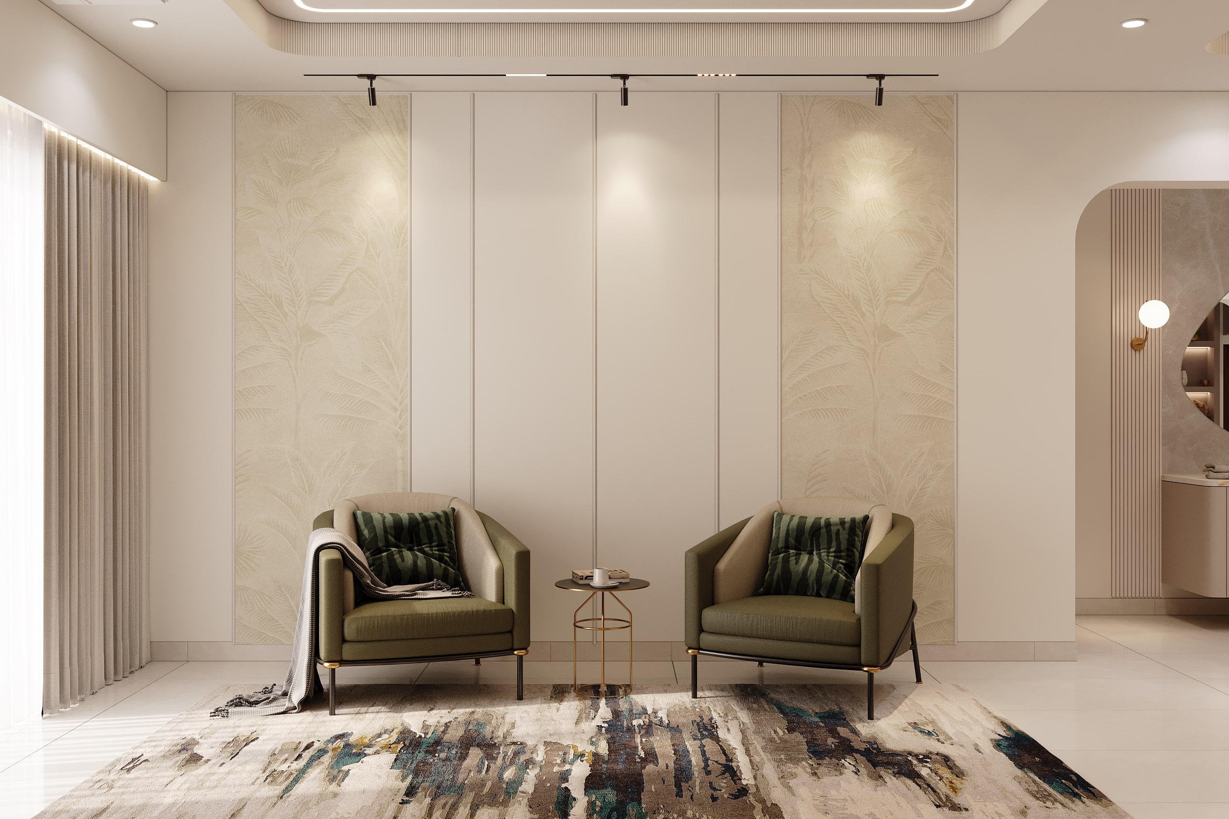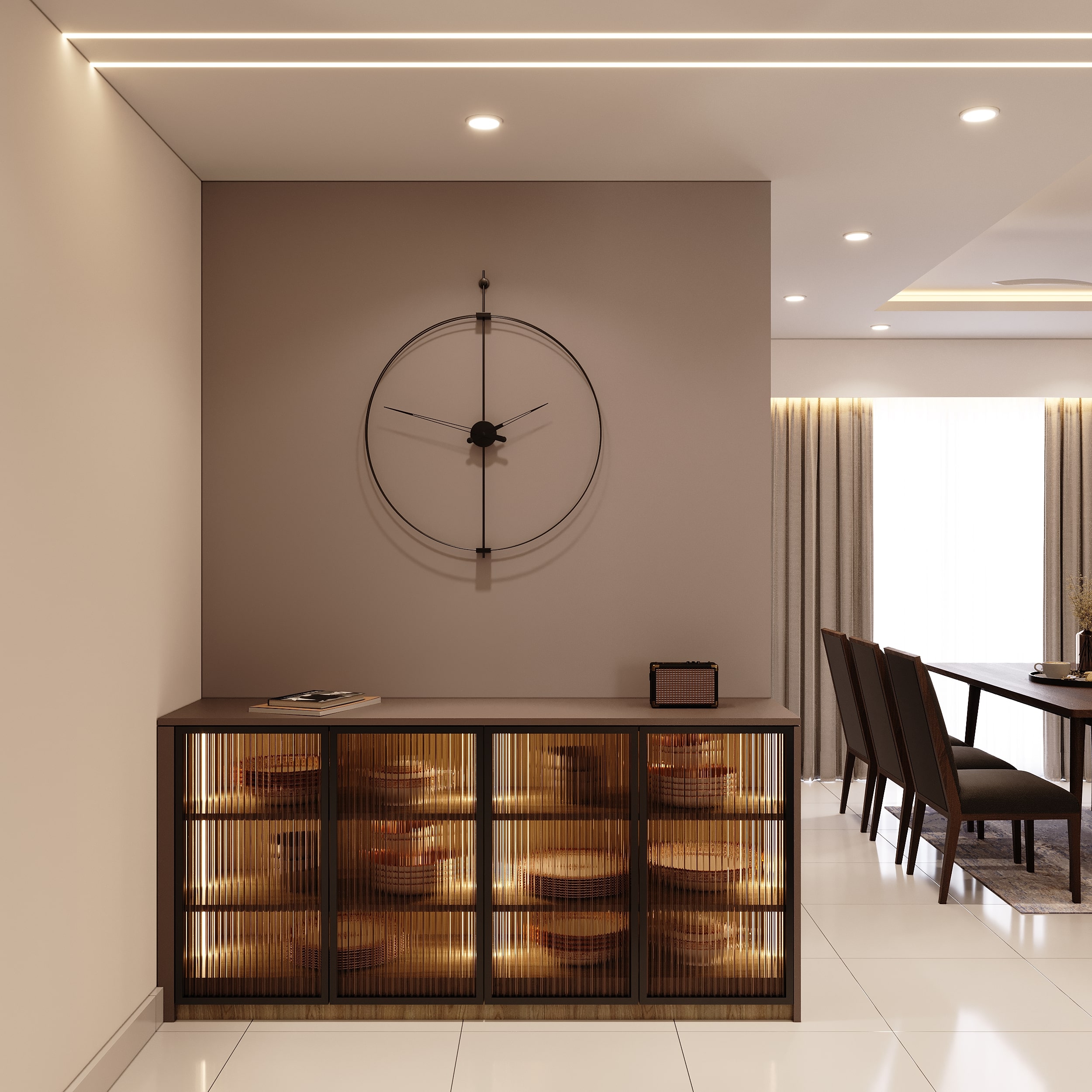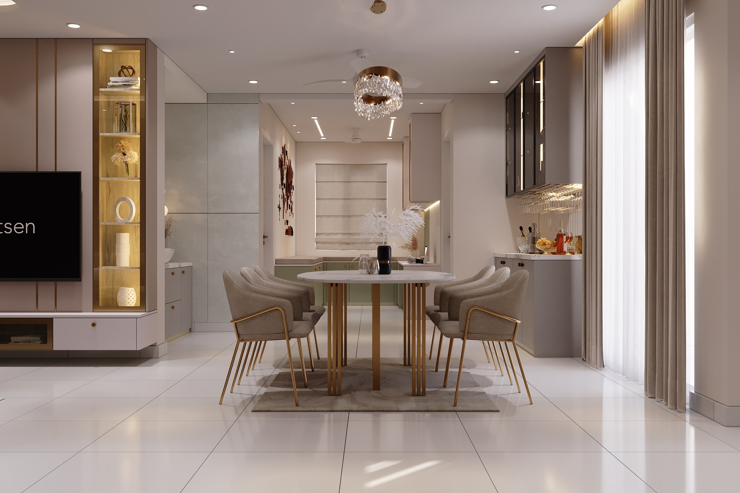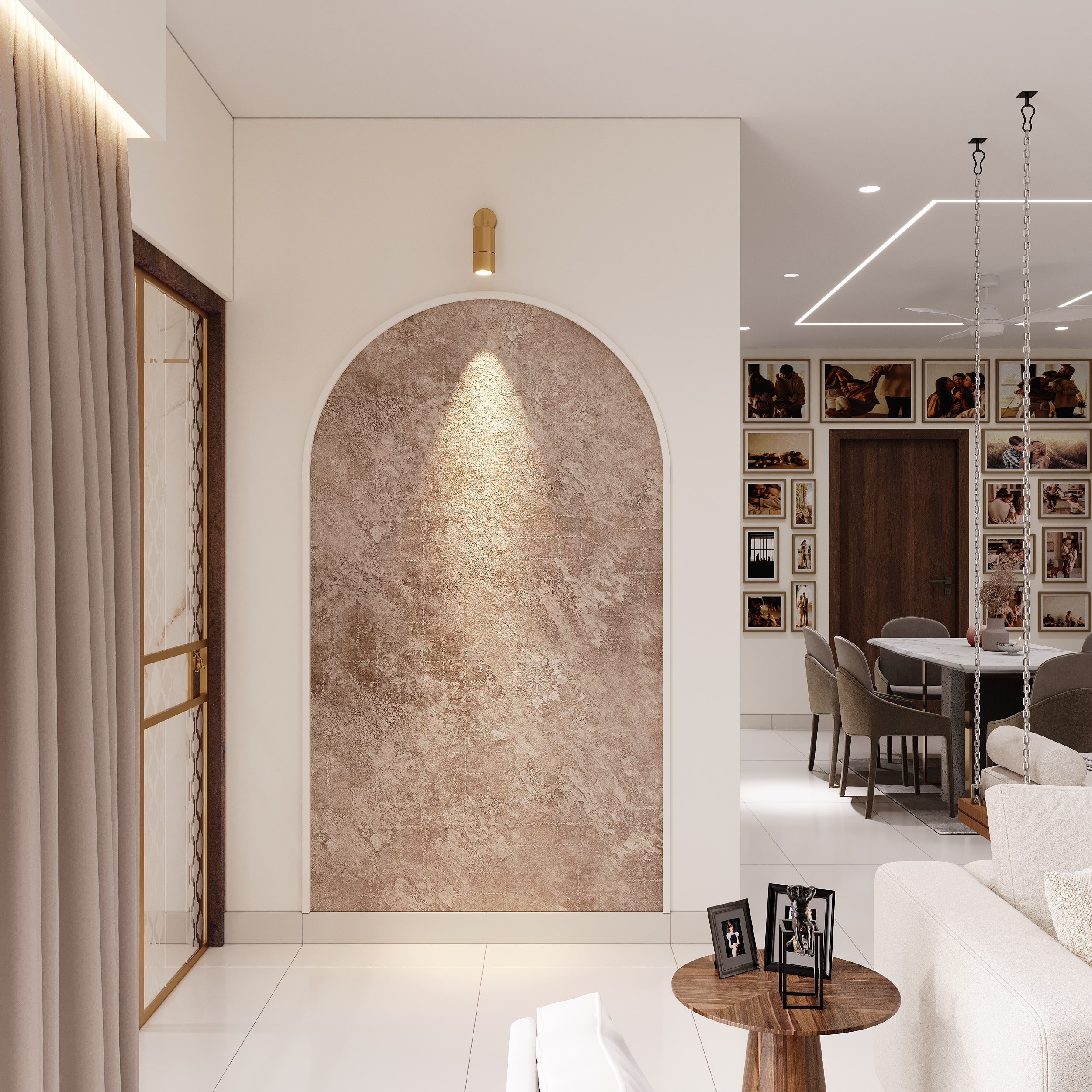 This 3BHK residence at Jayabheri The Nirvana, crafted for Mr. Rahul, is imagined as a dialogue between presence and pause. The design moves with a quiet confidence — spaces that don’t demand attention yet linger in memory through their precision. Light is treated as a material in itself, shifting across stone, metal, and fabric to create atmospheres that evolve with time of day. Boundaries dissolve into thresholds, and rooms become moments within a larger composition. It is a home that does not declare luxury, but lets it emerge — through stillness, tactility, and the poetics of restraint.