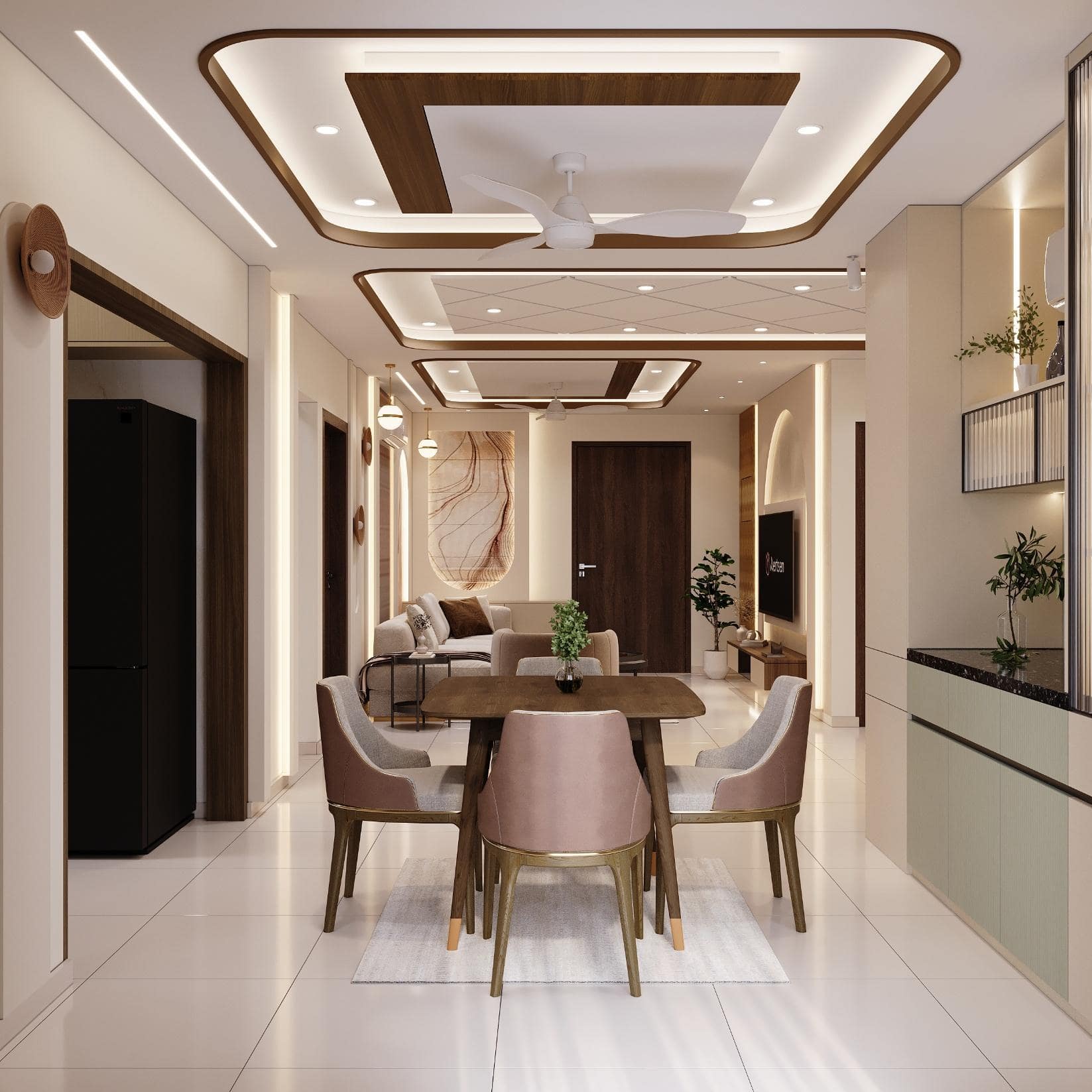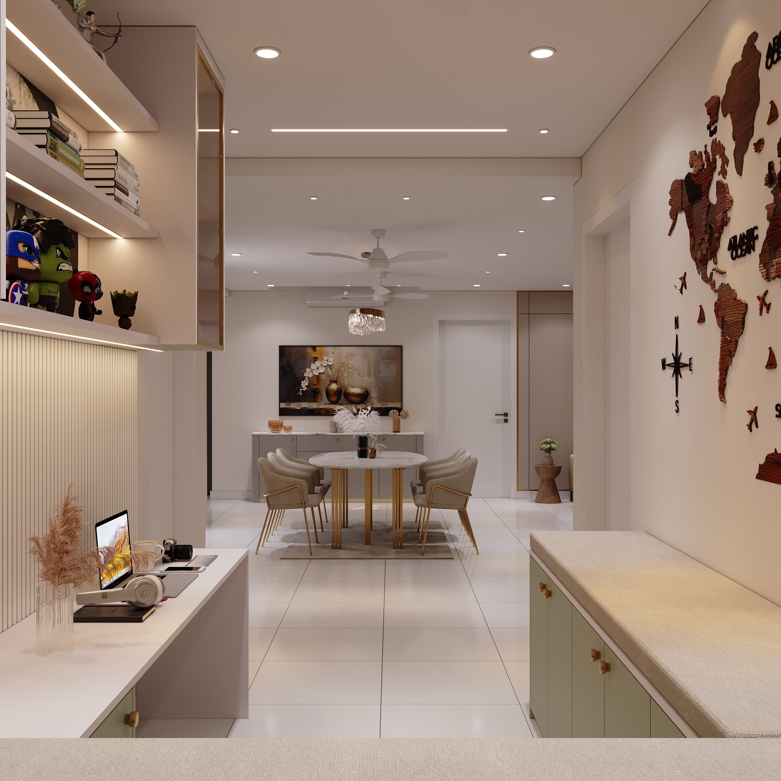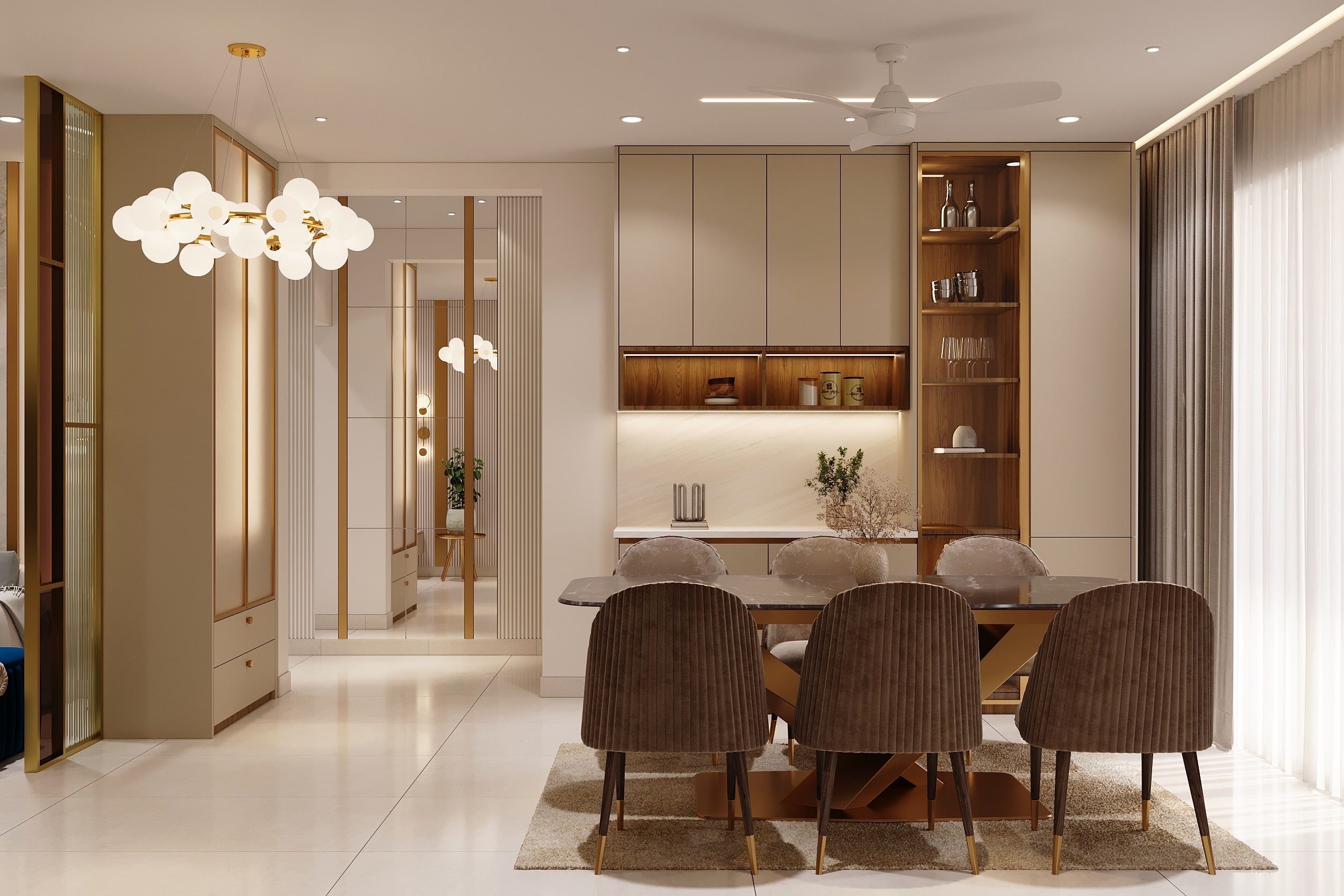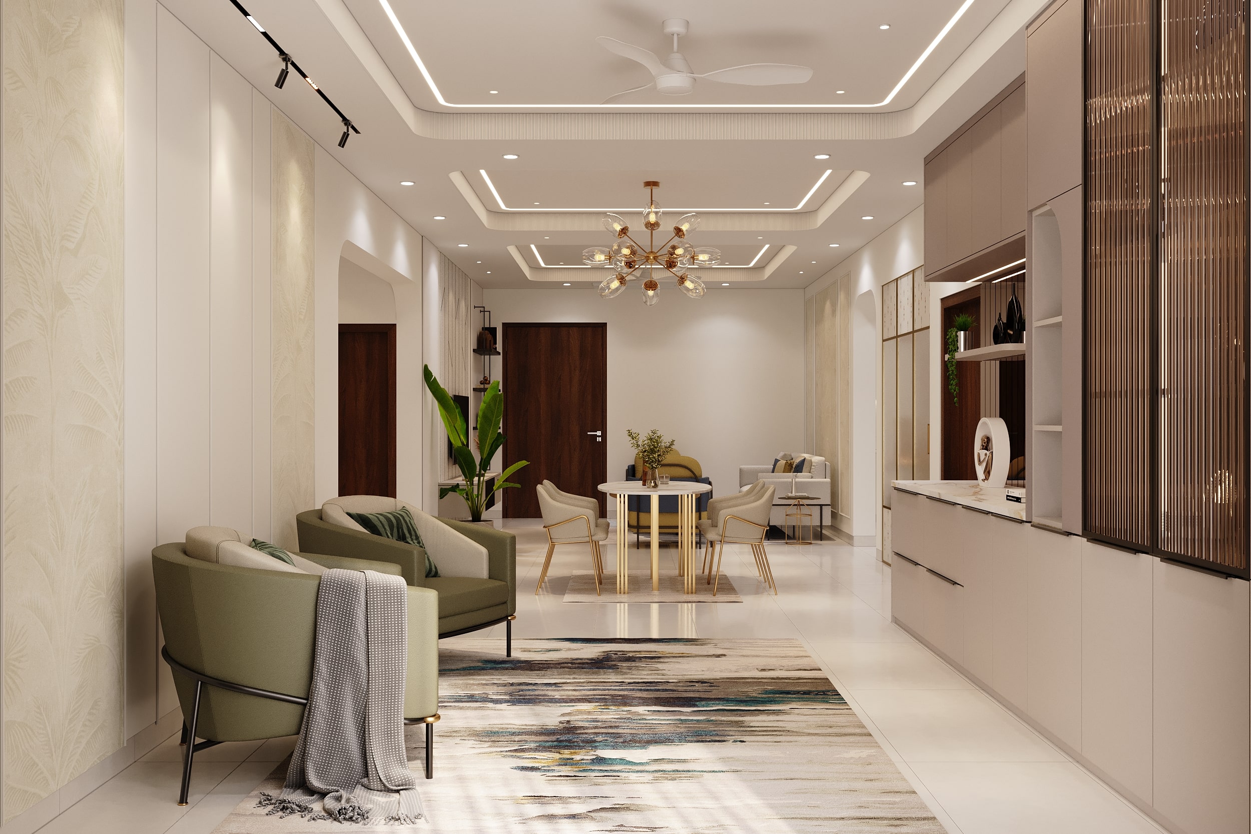 This 3BHK residence at Jayabheri The Nirvana, crafted for Mr. Rahul, is imagined as a dialogue between presence and pause. The design moves with a quiet confidence — spaces that don’t demand attention yet linger in memory through their precision. Light is treated as a material in itself, shifting across stone, metal, and fabric to create atmospheres that evolve with time of day. Boundaries dissolve into thresholds, and rooms become moments within a larger composition. It is a home that does not declare luxury, but lets it emerge — through stillness, tactility, and the poetics of restraint.