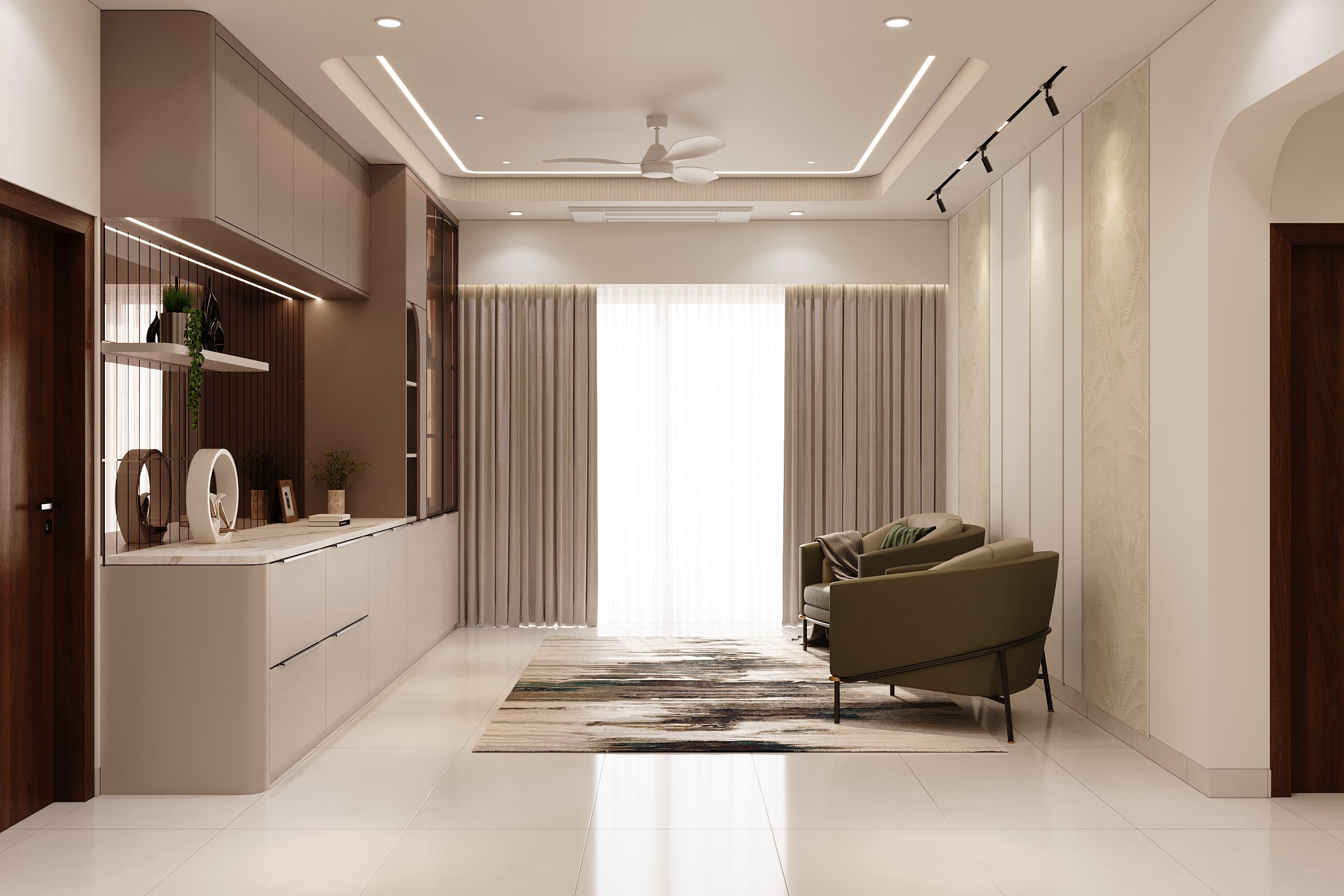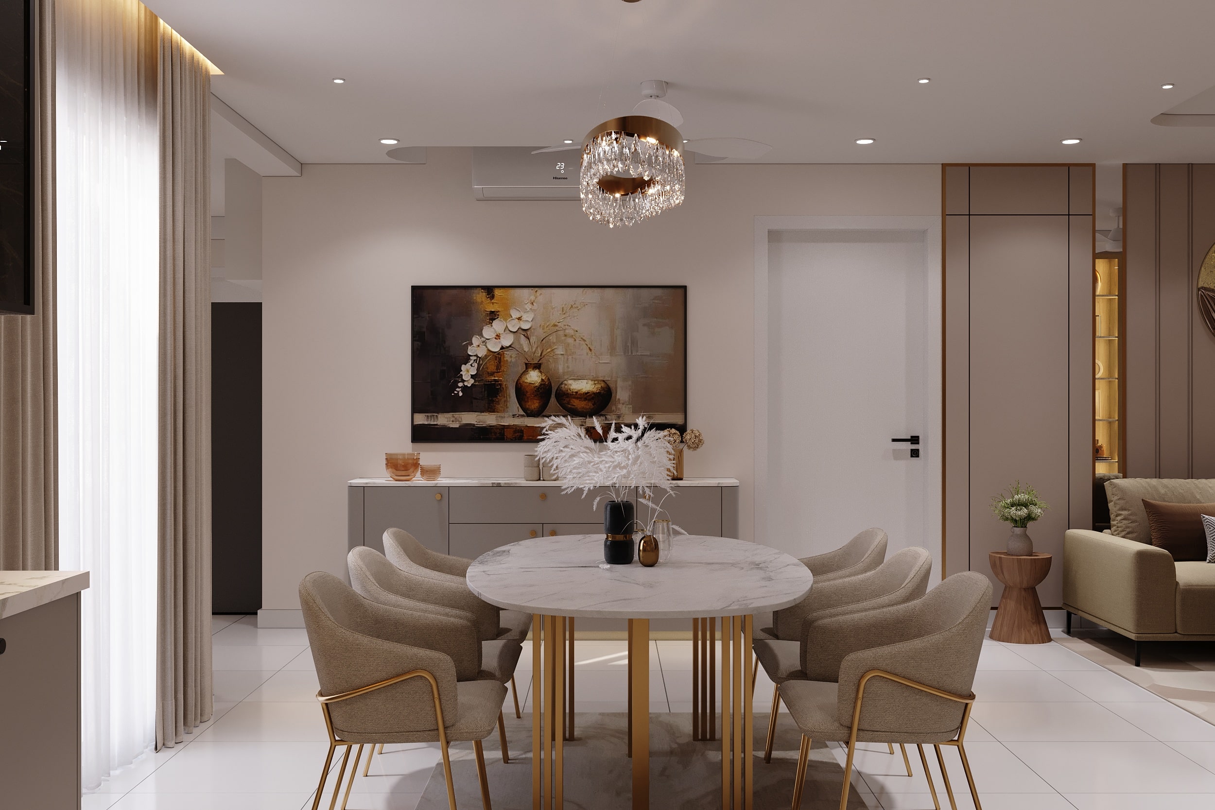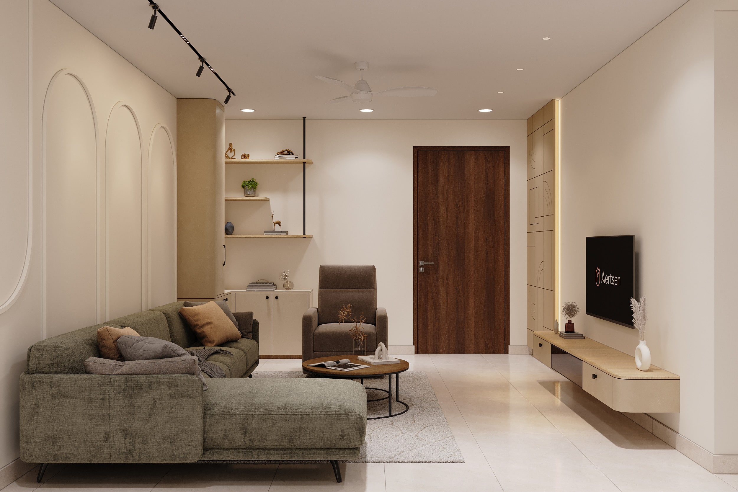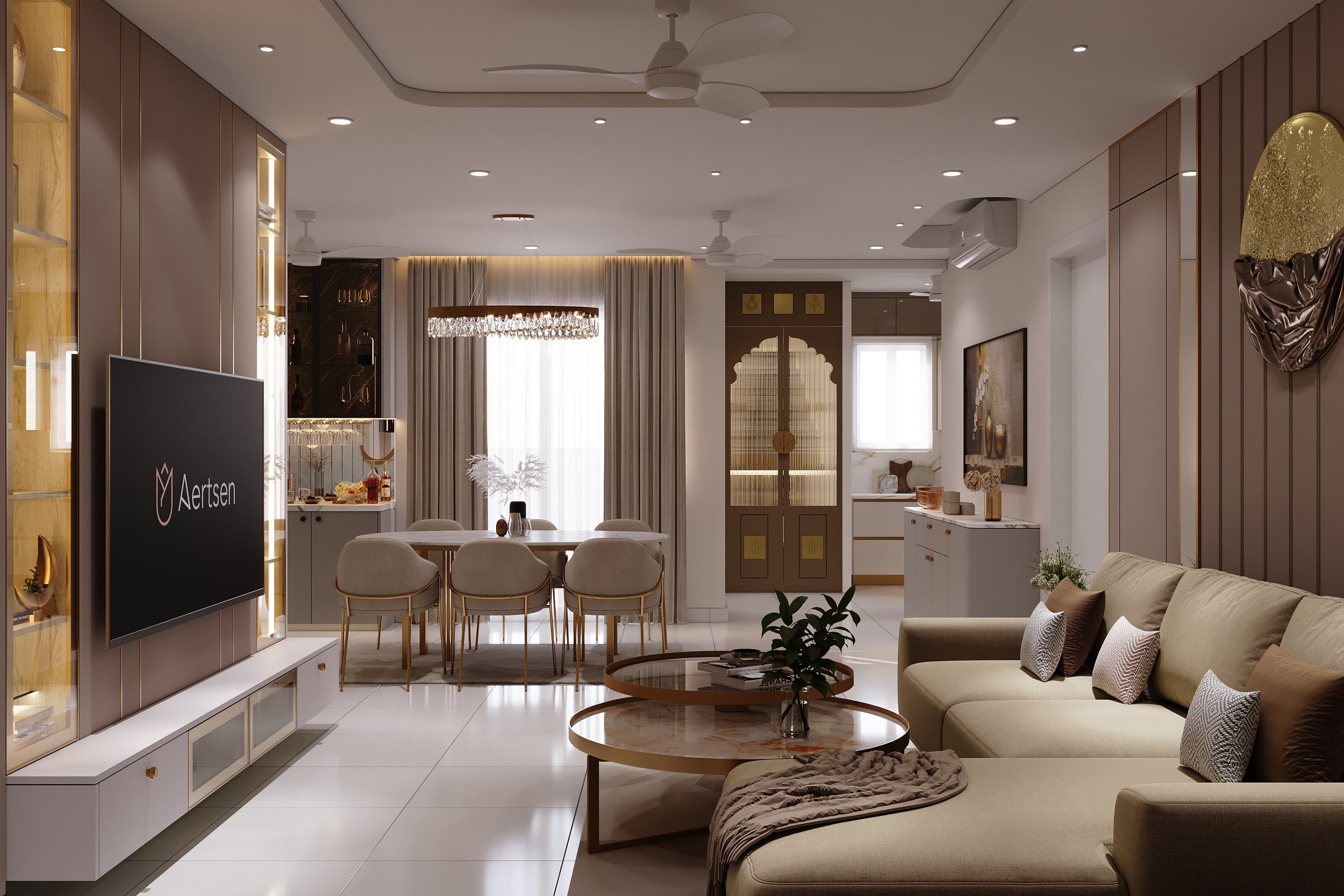 This 3BHK residence at Jayabheri The Nirvana, crafted for Mr. Rahul, is imagined as a dialogue between presence and pause. The design moves with a quiet confidence — spaces that don’t demand attention yet linger in memory through their precision. Light is treated as a material in itself, shifting across stone, metal, and fabric to create atmospheres that evolve with time of day. Boundaries dissolve into thresholds, and rooms become moments within a larger composition. It is a home that does not declare luxury, but lets it emerge — through stillness, tactility, and the poetics of restraint.
