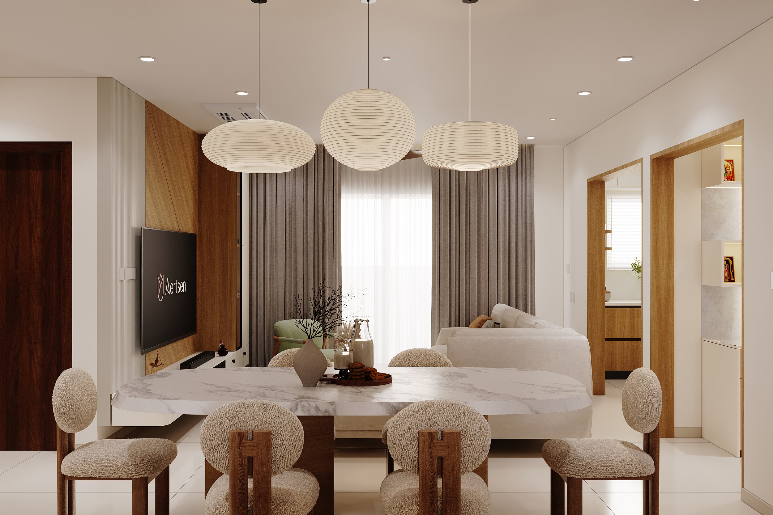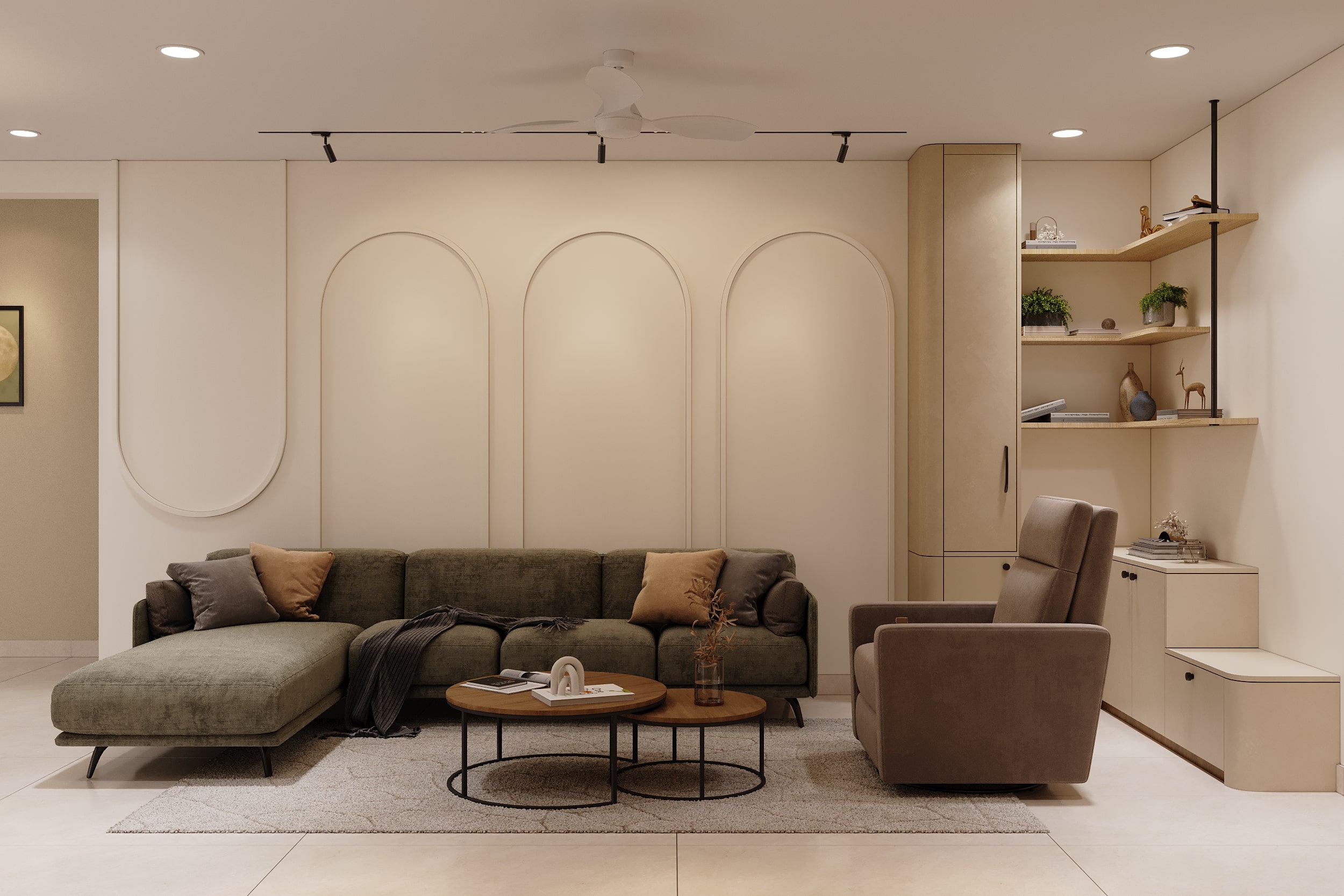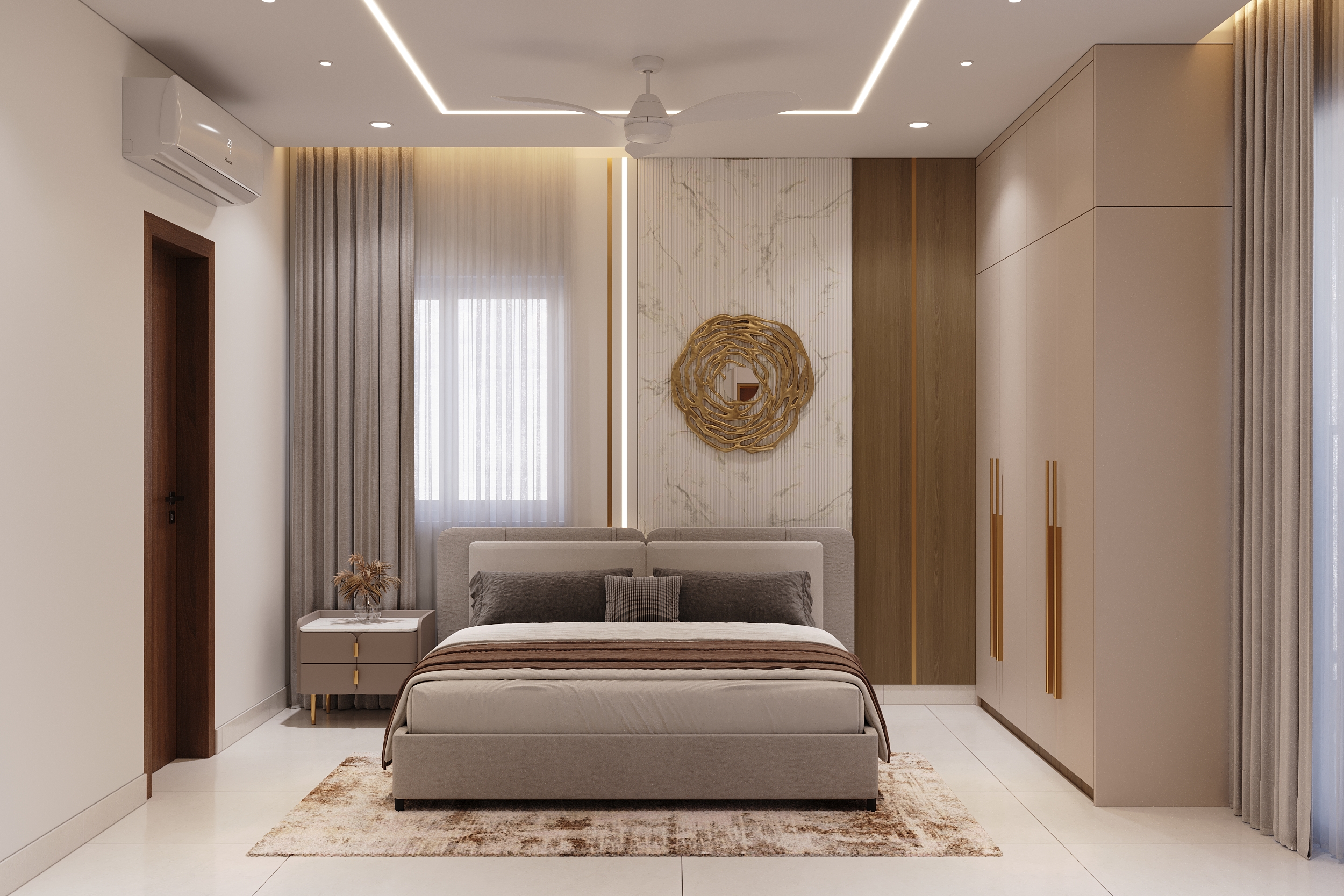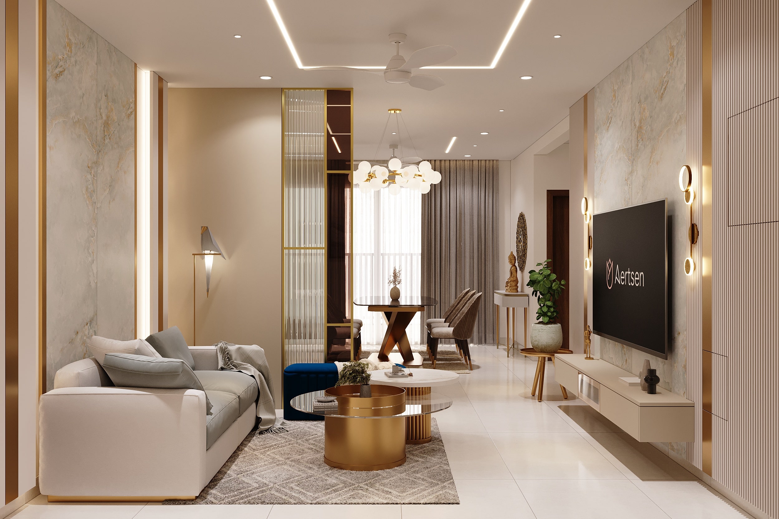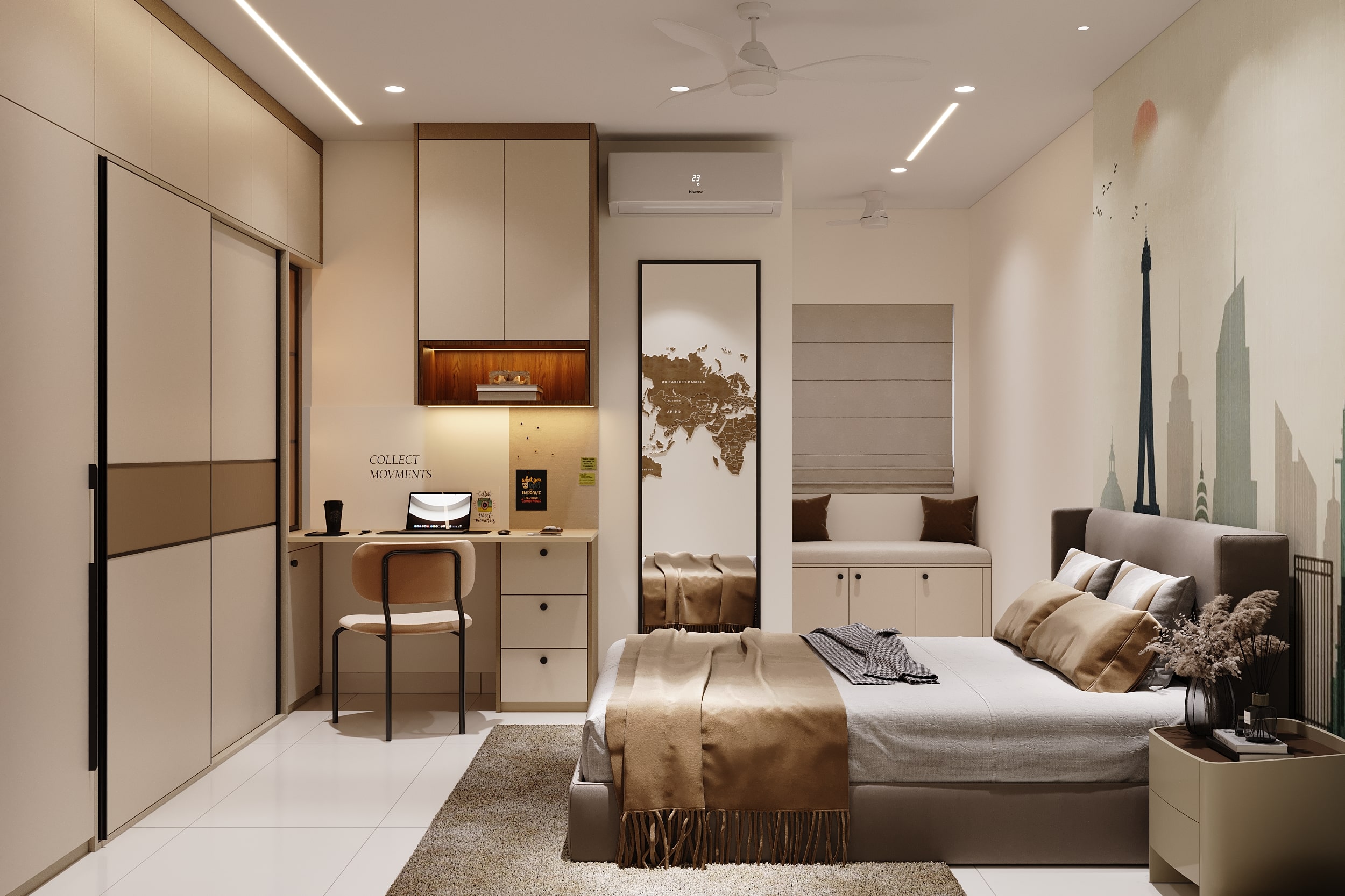 This 3BHK residence at Jayabheri The Nirvana, crafted for Mr. Rahul, is imagined as a dialogue between presence and pause. The design moves with a quiet confidence — spaces that don’t demand attention yet linger in memory through their precision. Light is treated as a material in itself, shifting across stone, metal, and fabric to create atmospheres that evolve with time of day. Boundaries dissolve into thresholds, and rooms become moments within a larger composition. It is a home that does not declare luxury, but lets it emerge — through stillness, tactility, and the poetics of restraint.