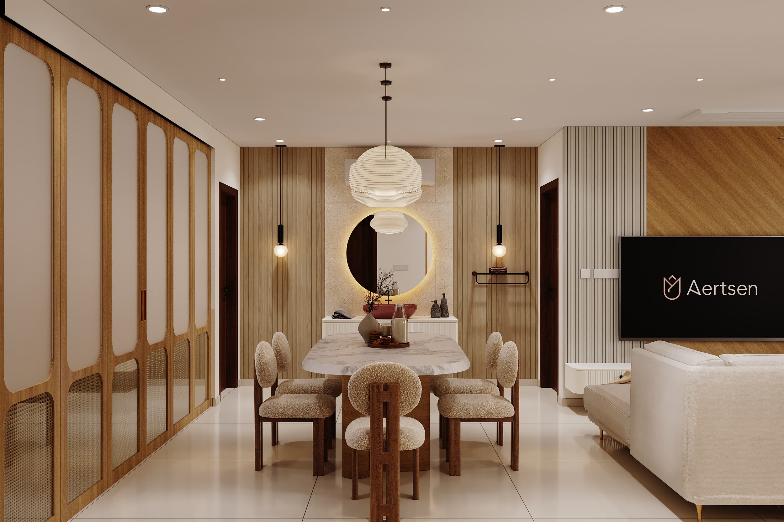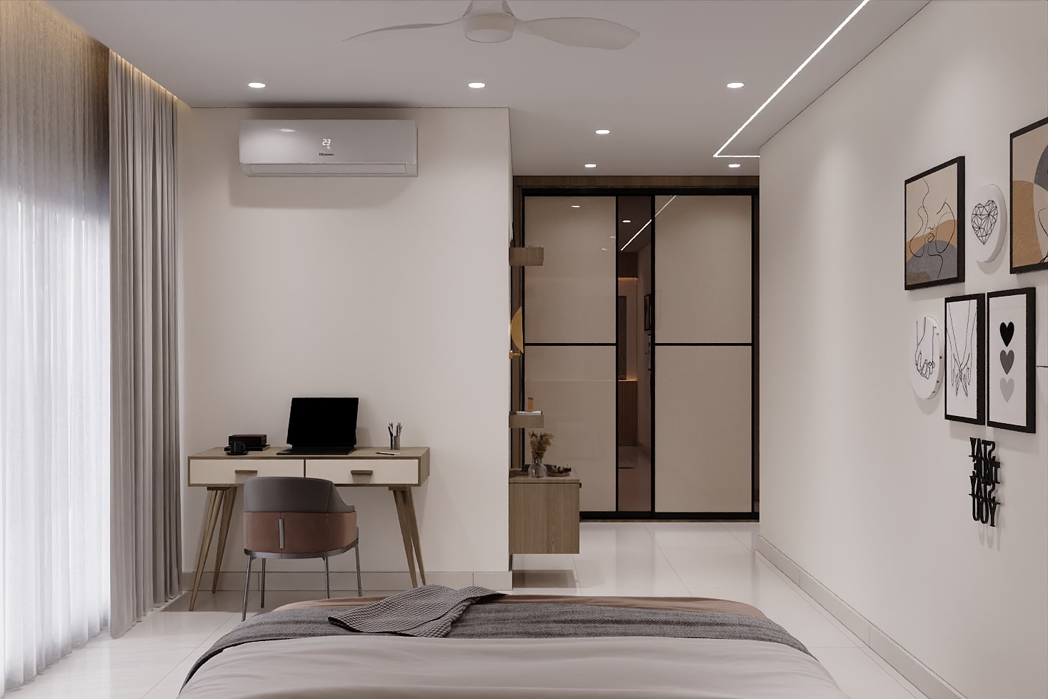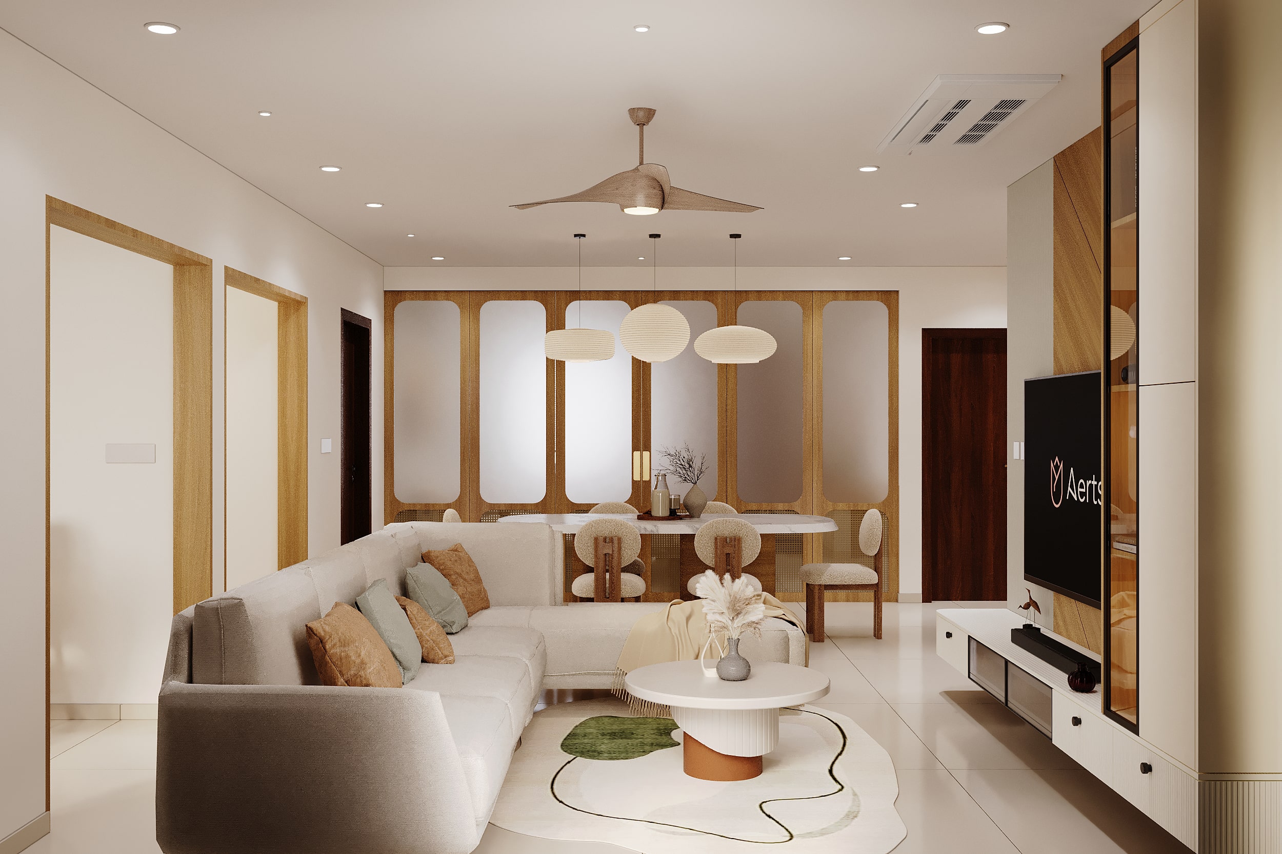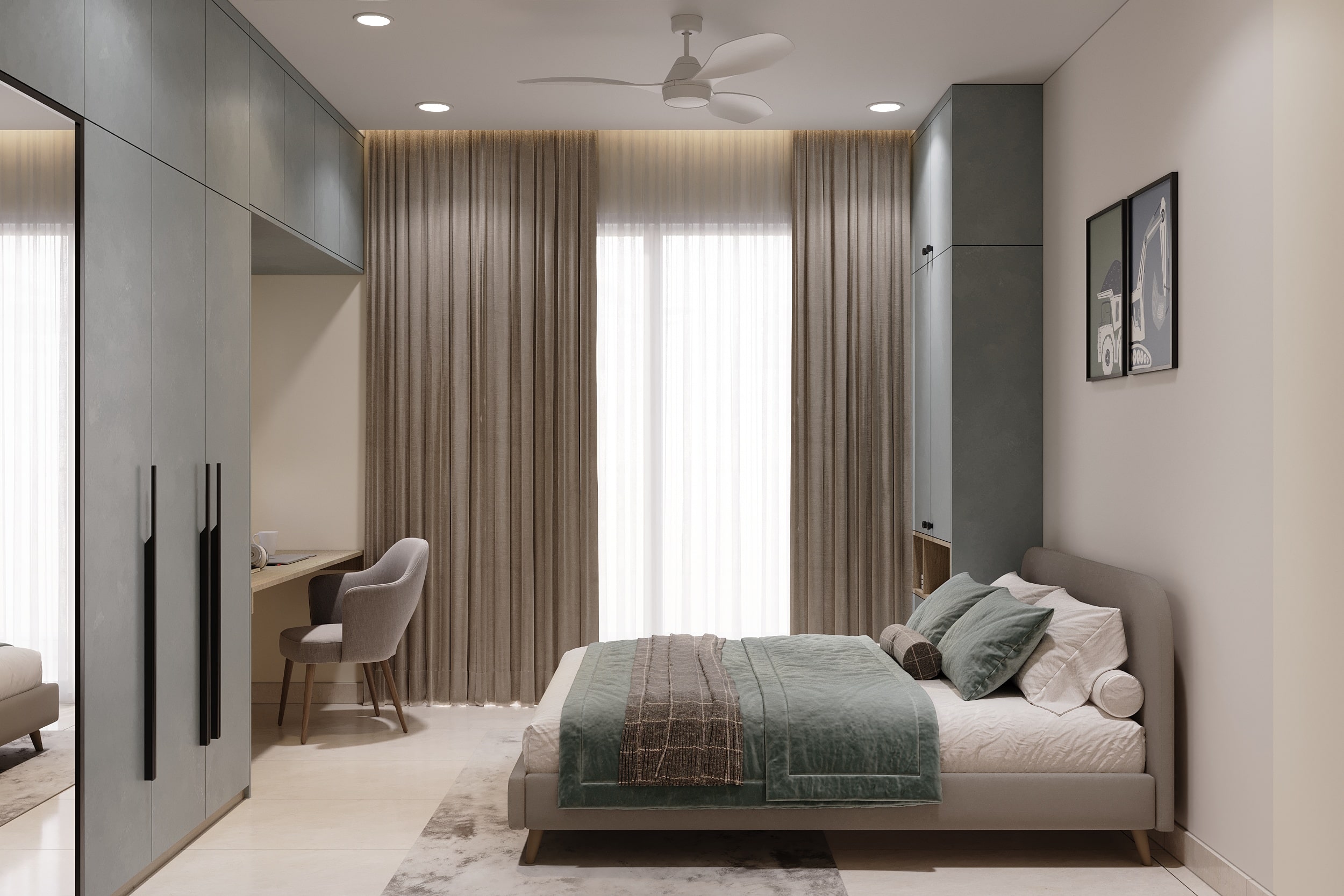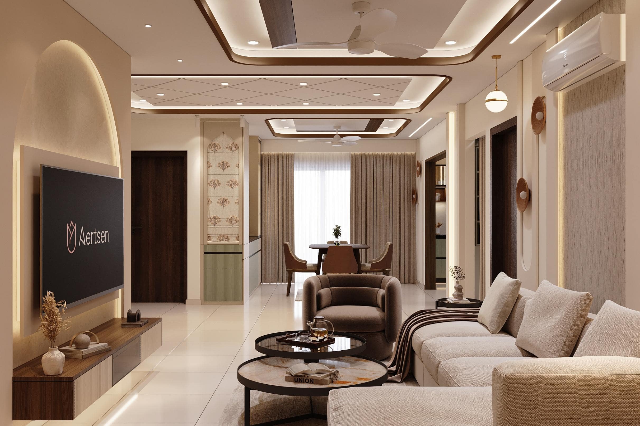 This 3BHK residence at Jayabheri The Nirvana, crafted for Mr. Rahul, is imagined as a dialogue between presence and pause. The design moves with a quiet confidence — spaces that don’t demand attention yet linger in memory through their precision. Light is treated as a material in itself, shifting across stone, metal, and fabric to create atmospheres that evolve with time of day. Boundaries dissolve into thresholds, and rooms become moments within a larger composition. It is a home that does not declare luxury, but lets it emerge — through stillness, tactility, and the poetics of restraint.