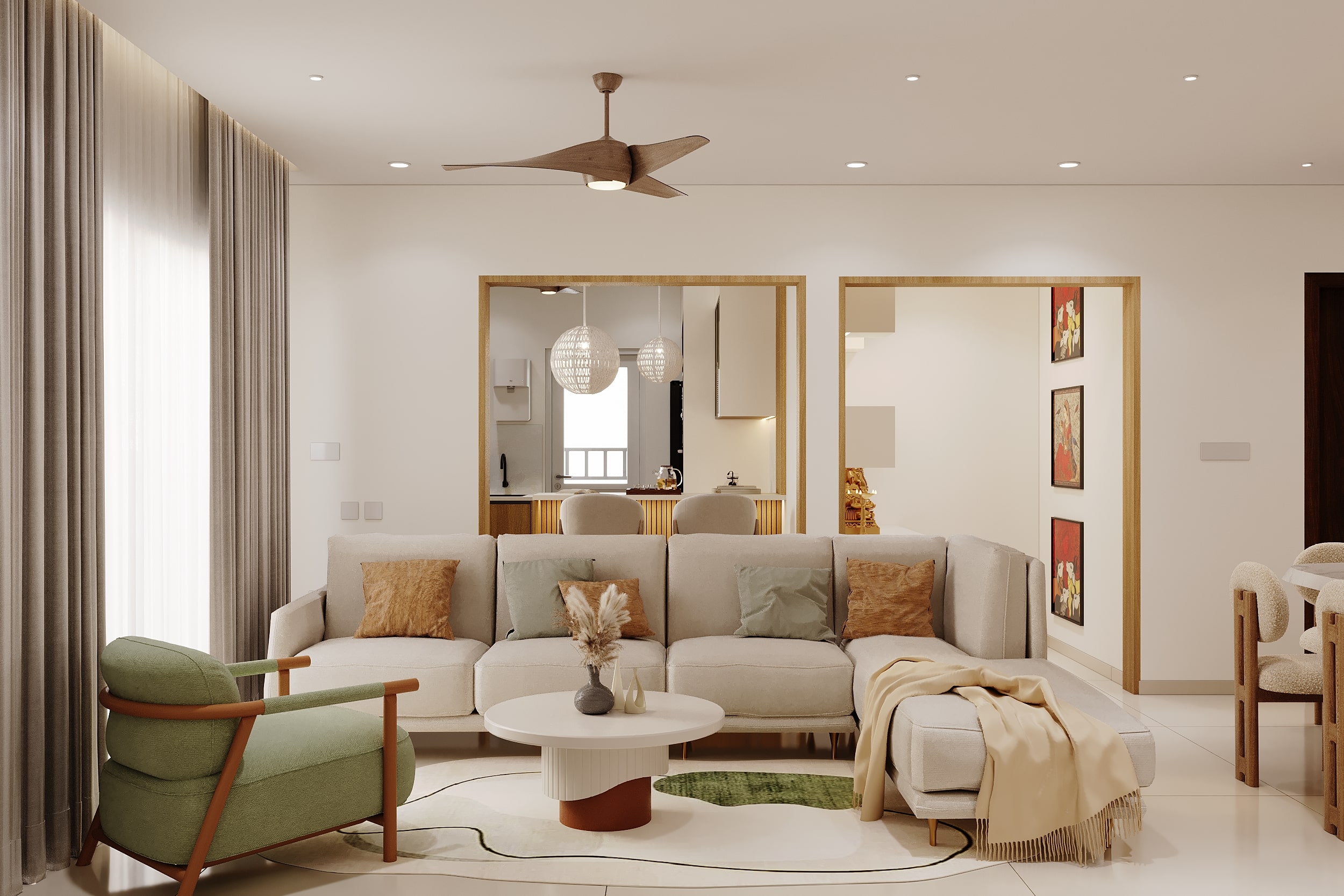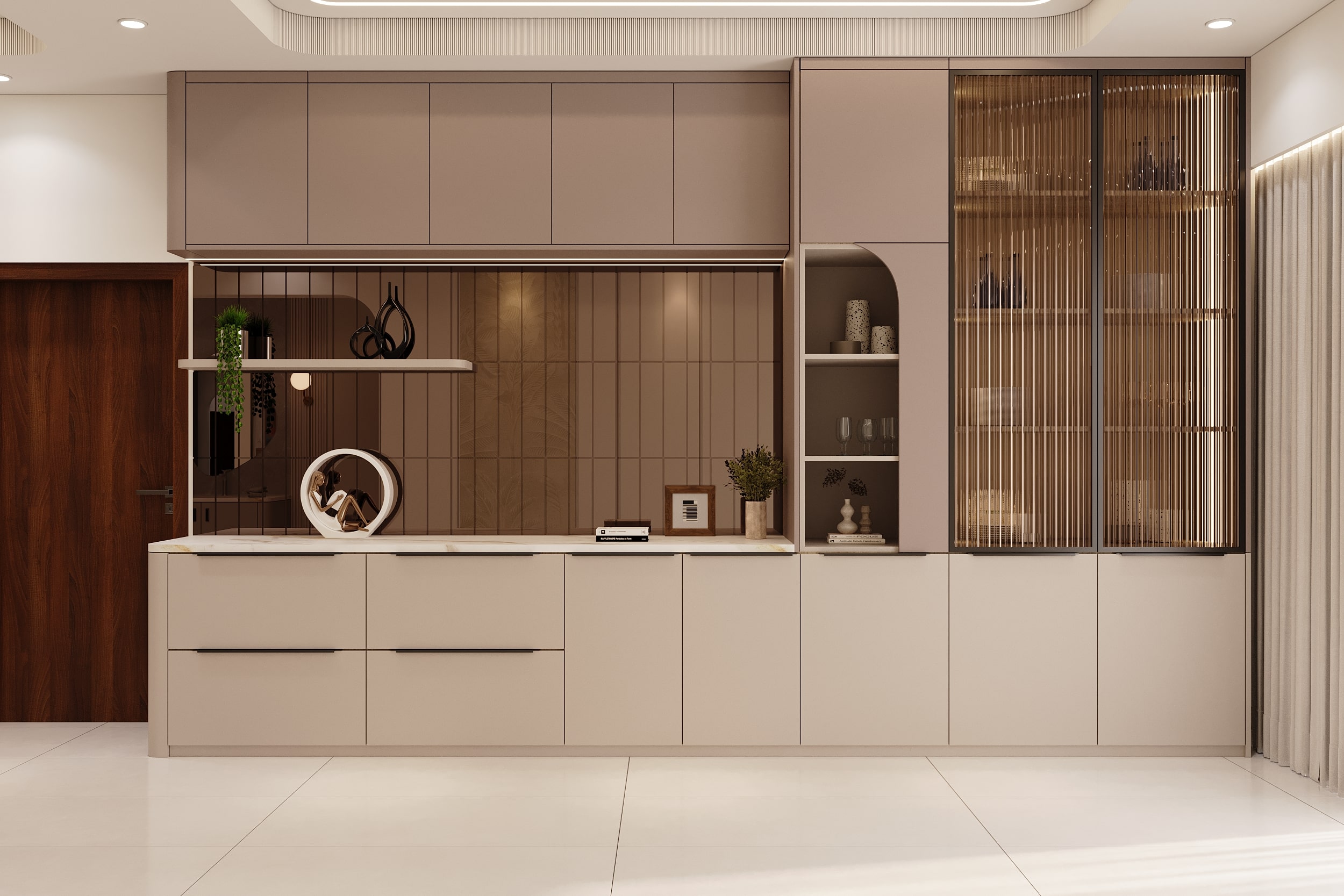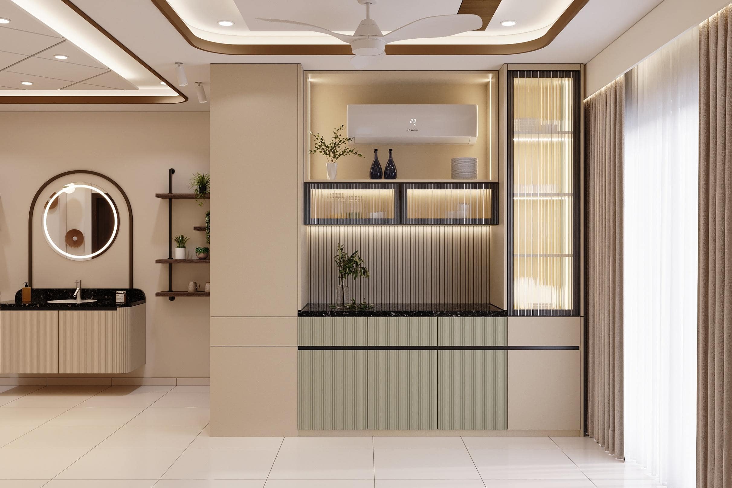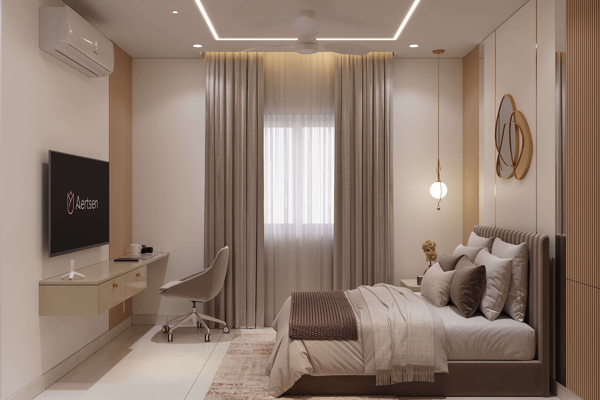 This 3BHK residence at Jayabheri The Nirvana, crafted for Mr. Rahul, is imagined as a dialogue between presence and pause. The design moves with a quiet confidence — spaces that don’t demand attention yet linger in memory through their precision. Light is treated as a material in itself, shifting across stone, metal, and fabric to create atmospheres that evolve with time of day. Boundaries dissolve into thresholds, and rooms become moments within a larger composition. It is a home that does not declare luxury, but lets it emerge — through stillness, tactility, and the poetics of restraint.