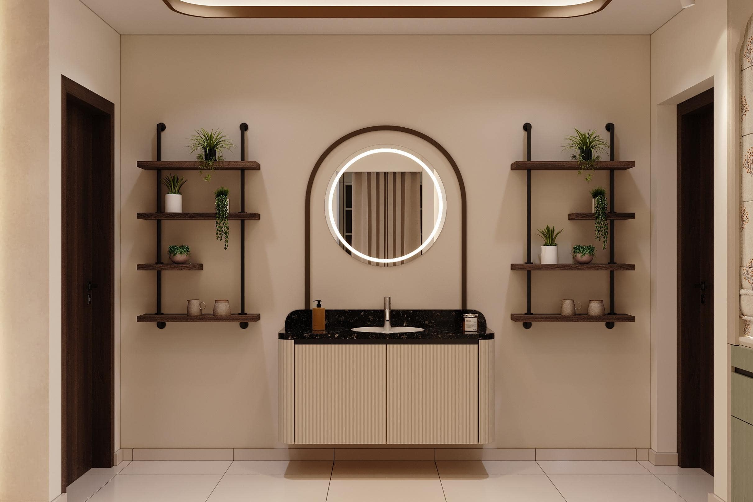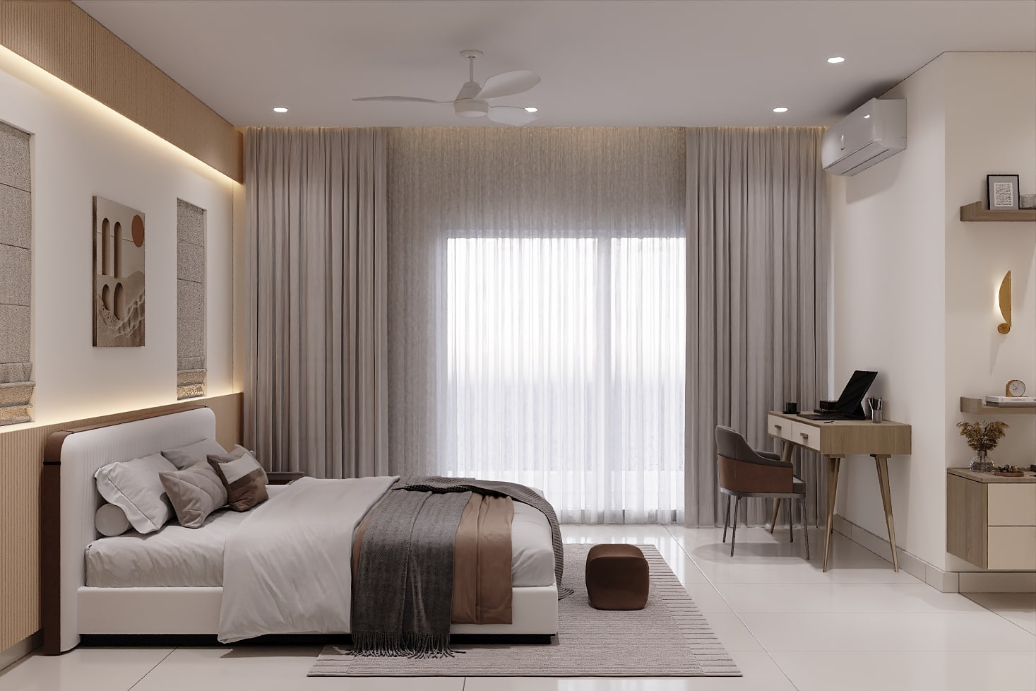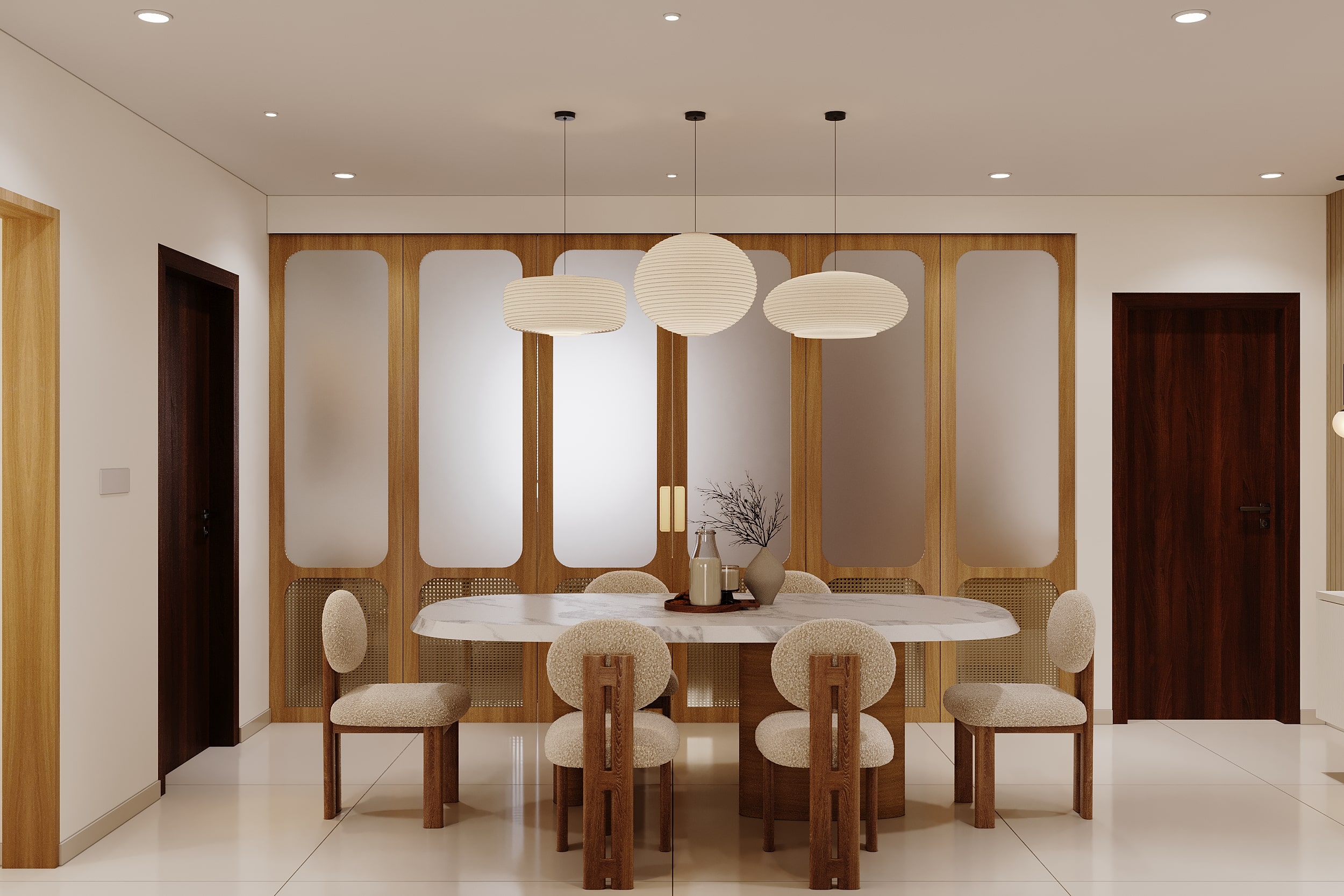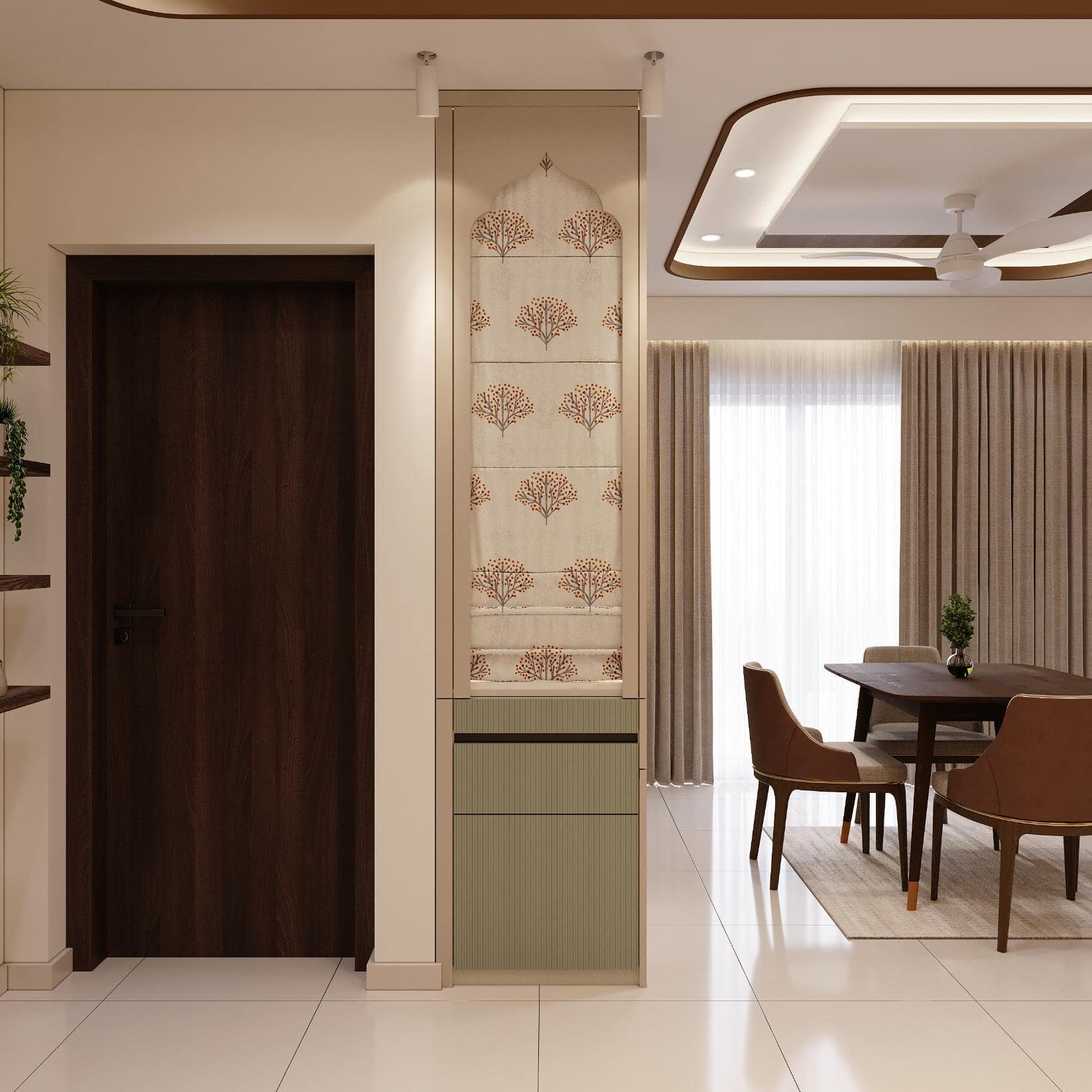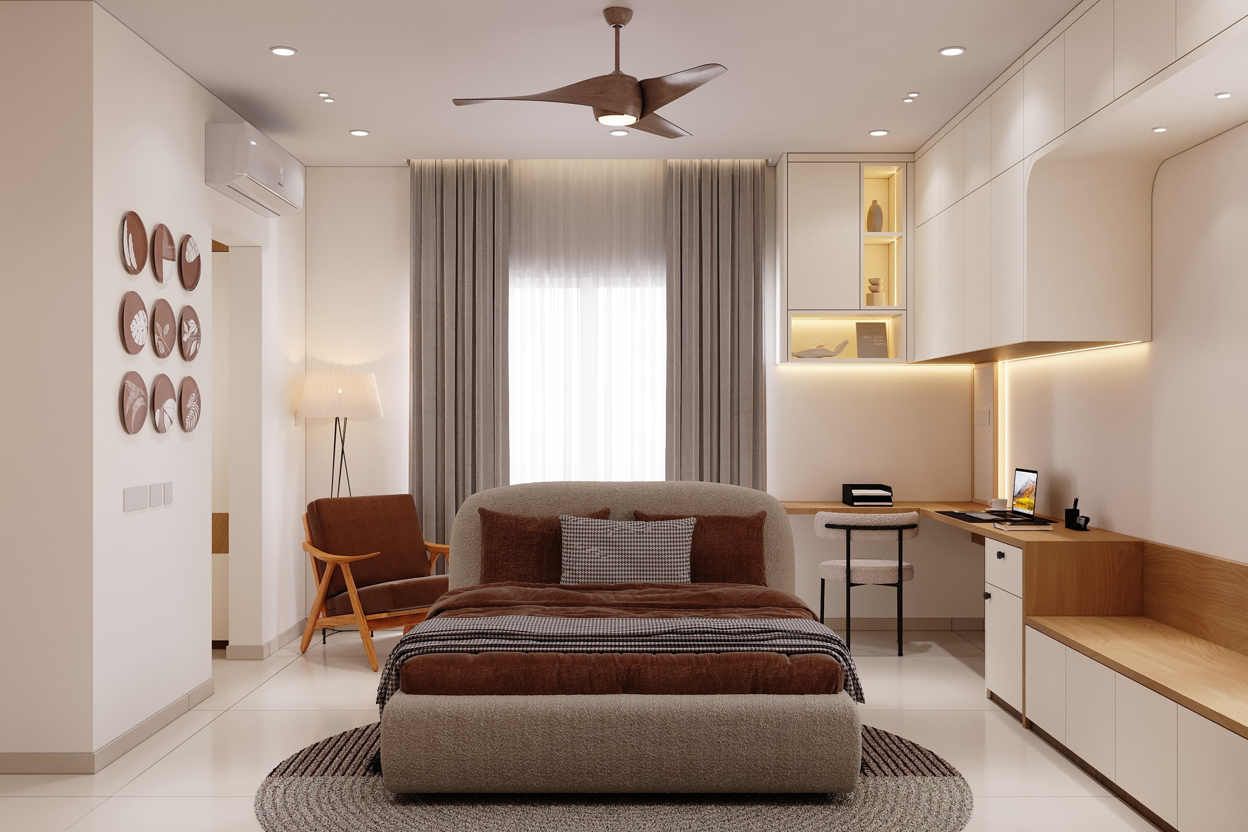 This 3BHK residence at Jayabheri The Nirvana, crafted for Mr. Rahul, is imagined as a dialogue between presence and pause. The design moves with a quiet confidence — spaces that don’t demand attention yet linger in memory through their precision. Light is treated as a material in itself, shifting across stone, metal, and fabric to create atmospheres that evolve with time of day. Boundaries dissolve into thresholds, and rooms become moments within a larger composition. It is a home that does not declare luxury, but lets it emerge — through stillness, tactility, and the poetics of restraint.