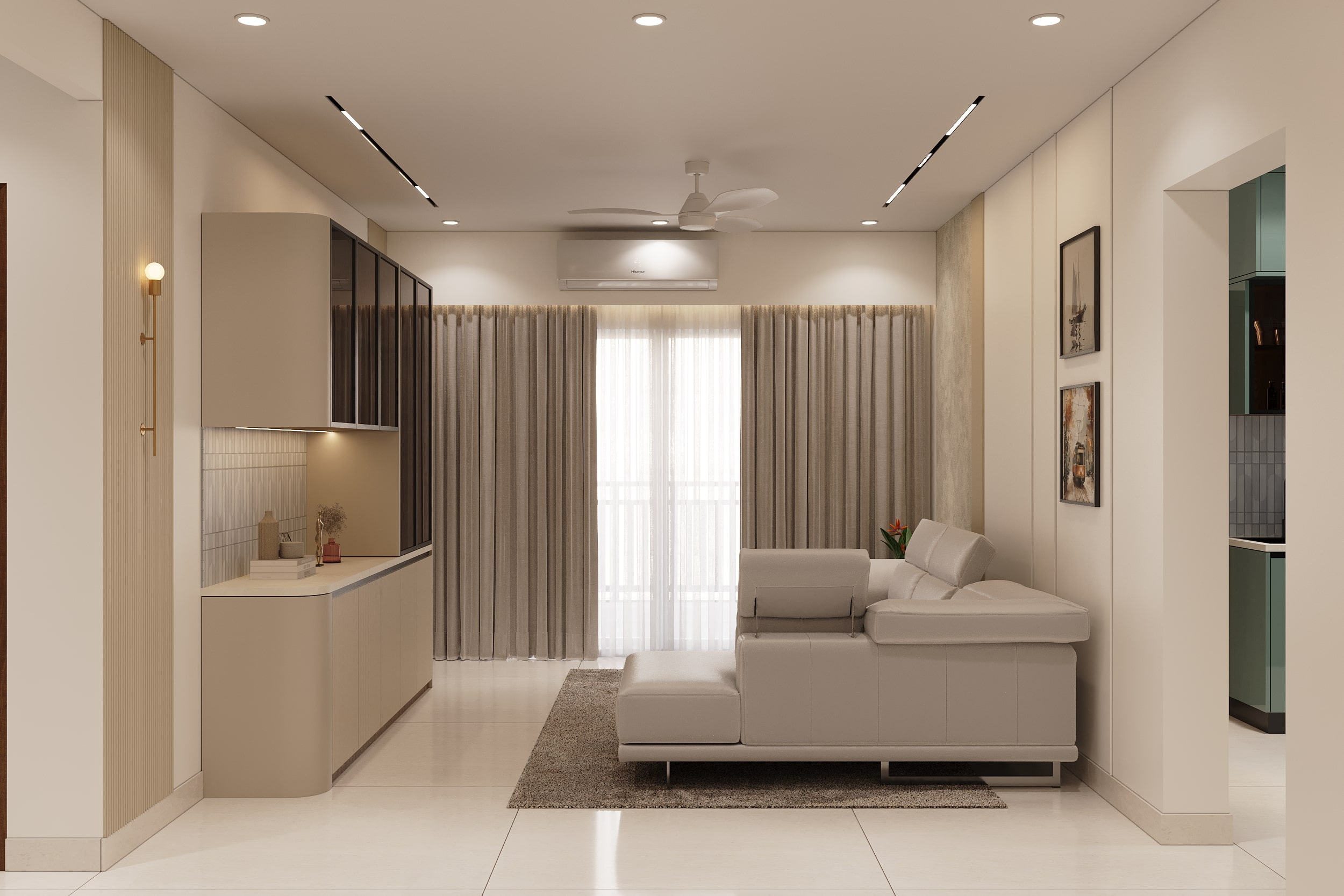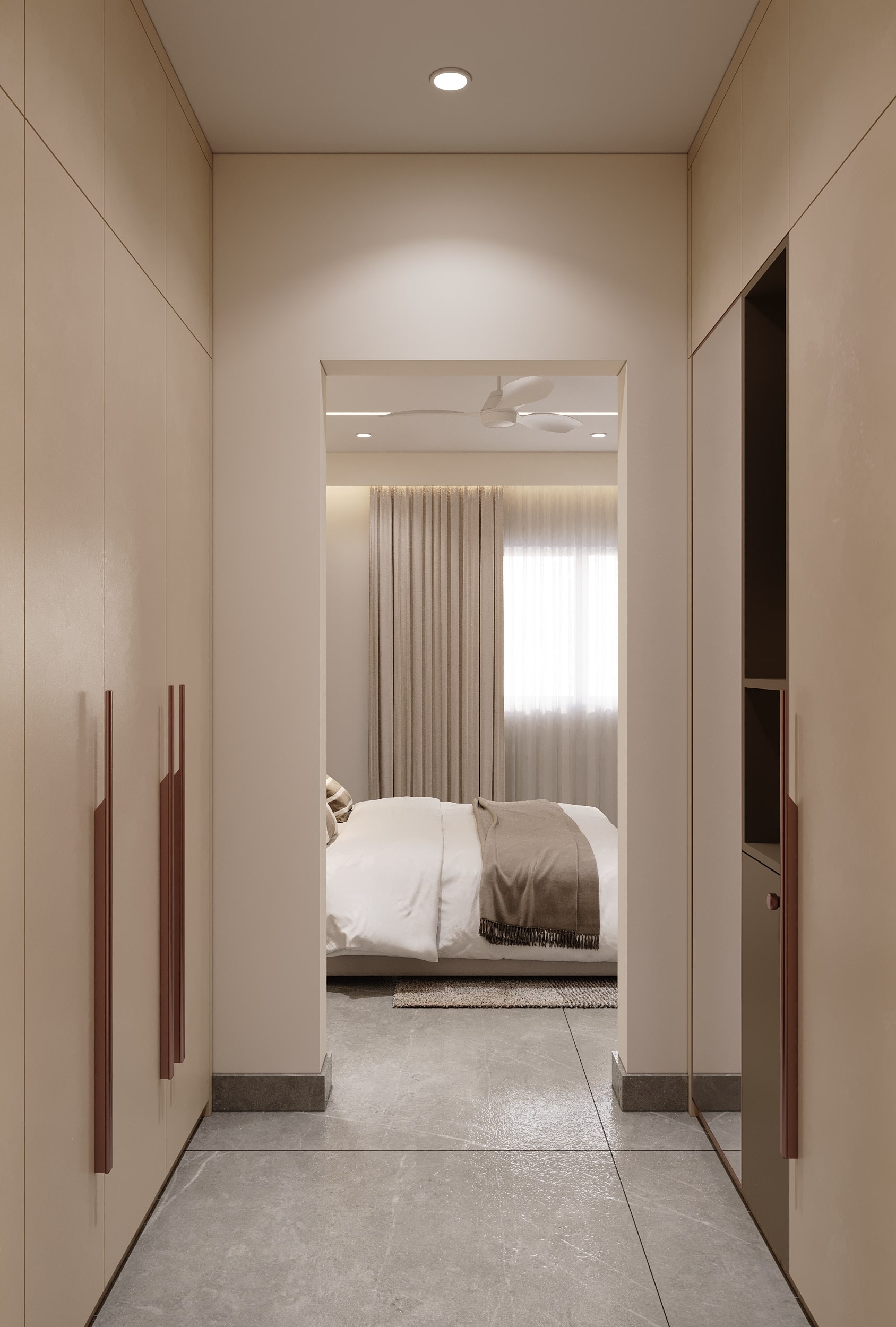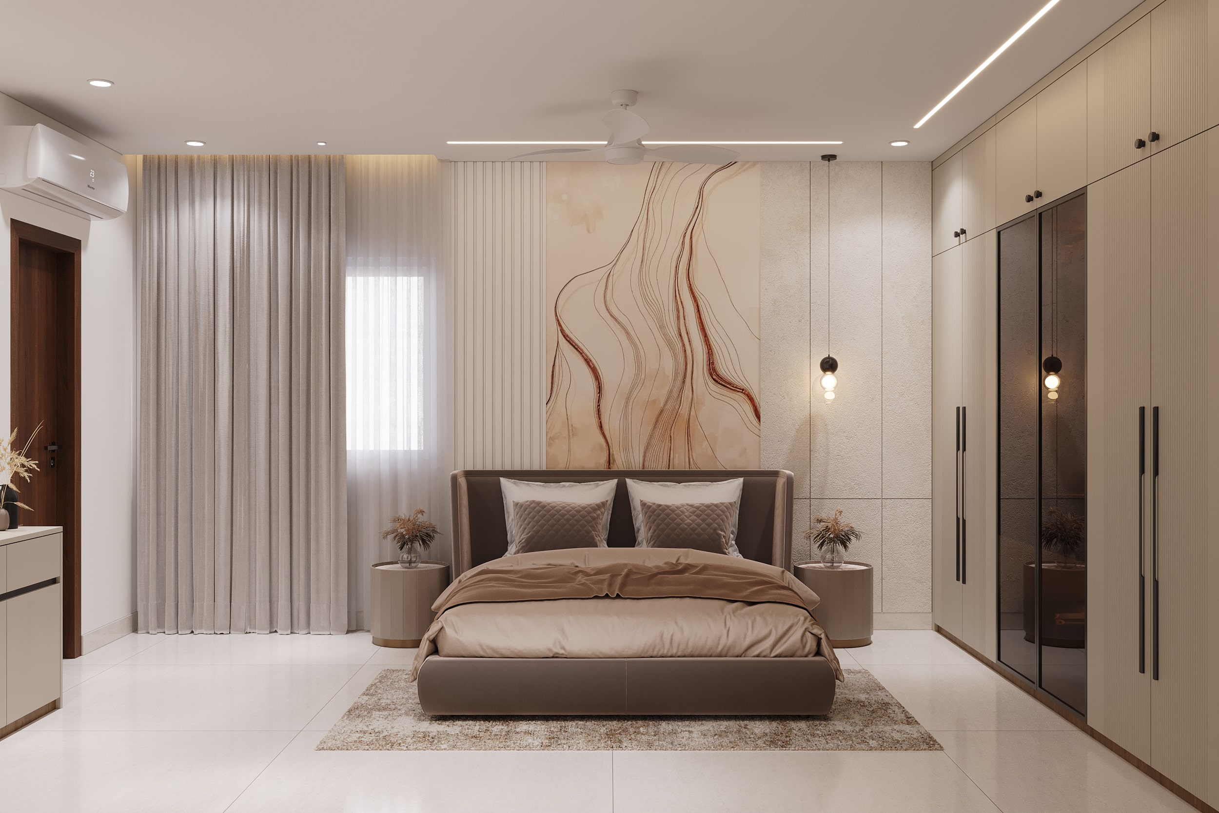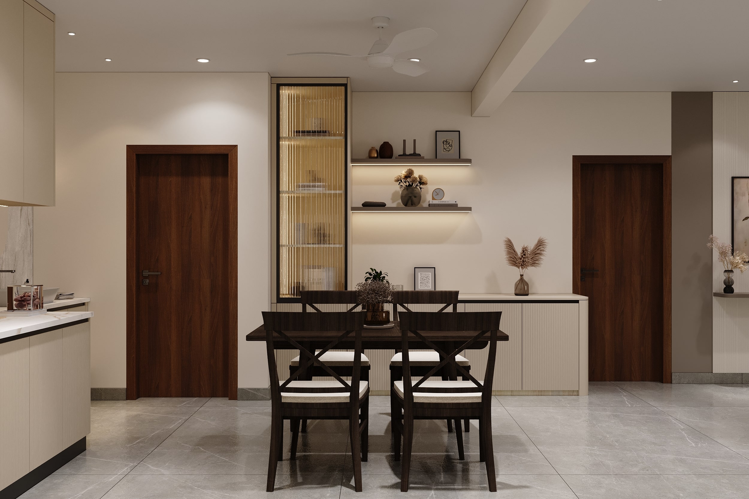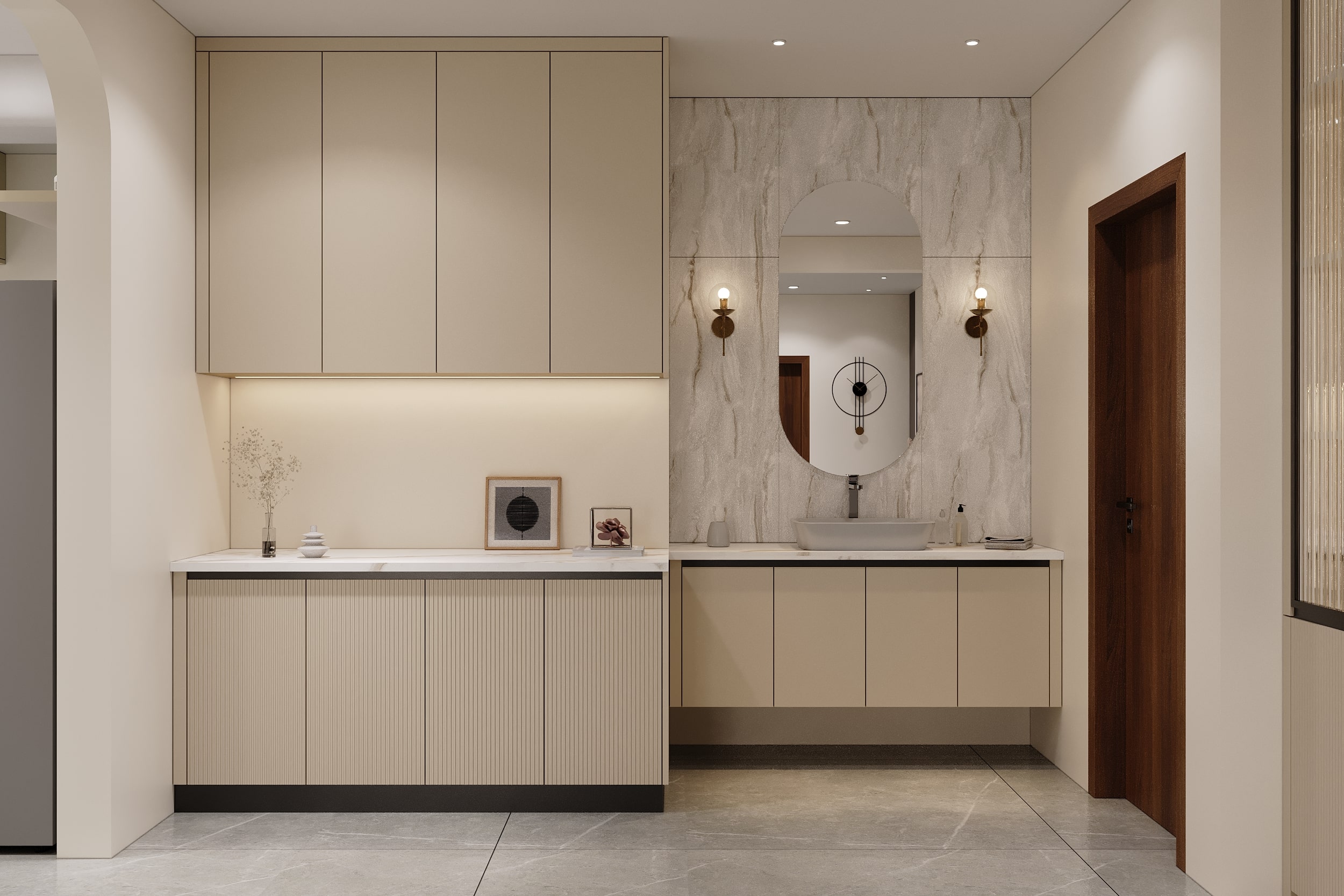 Mr. Dev Baburaj’s residence at SMR Vinay Iconia embodies contemporary luxury with warm tones, sculptural elements, and seamless spatial flow. The living, dining, and lounge areas exude calm refinement through curated textures, refined lighting, and modern minimalism, while the kitchen adds bold sophistication with its harmonious palette and crafted detailing. The bedroom continues this serene narrative with layered neutrals and understated opulence, creating a tranquil retreat that reflects a lifestyle of comfort, clarity, and elevated elegance.