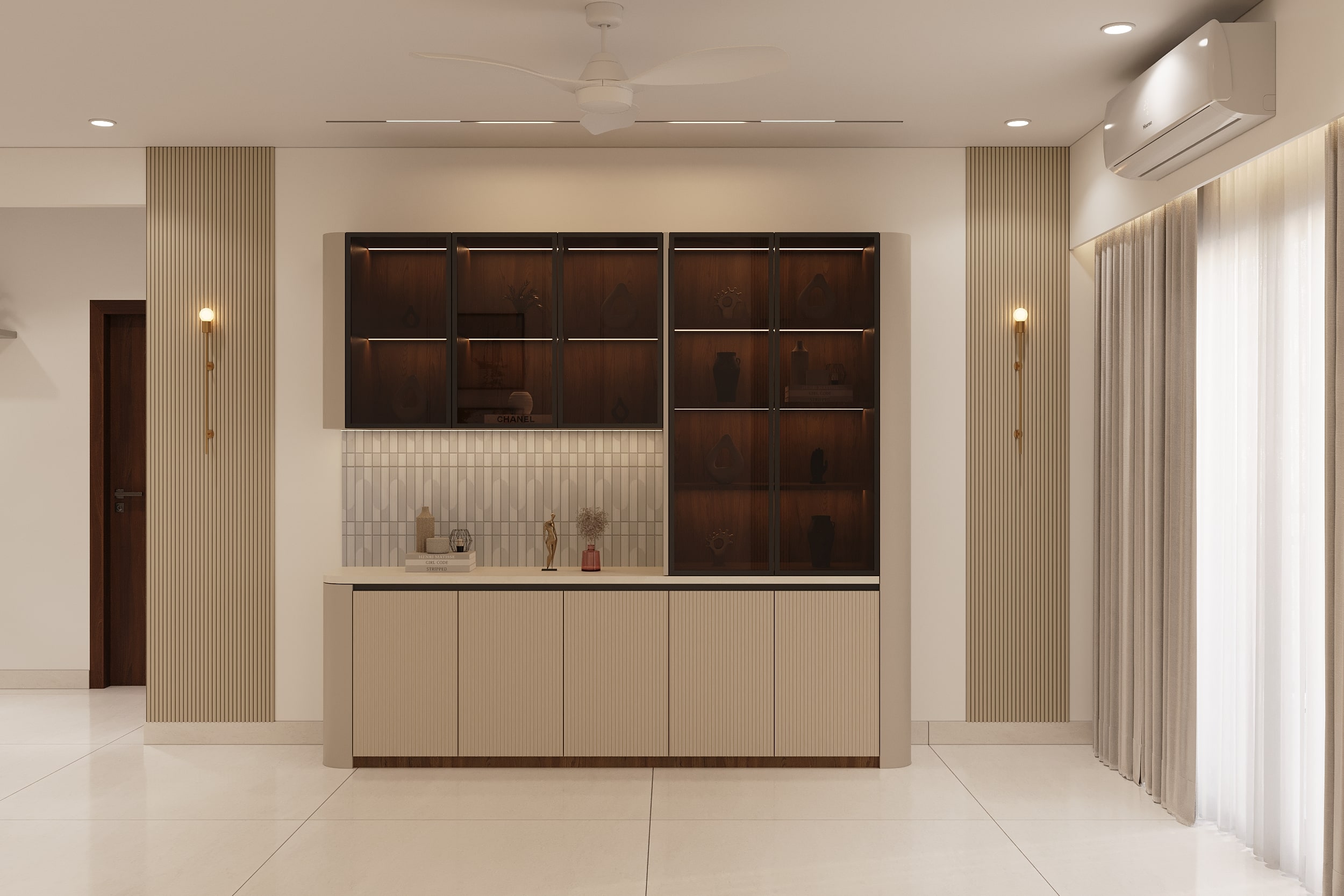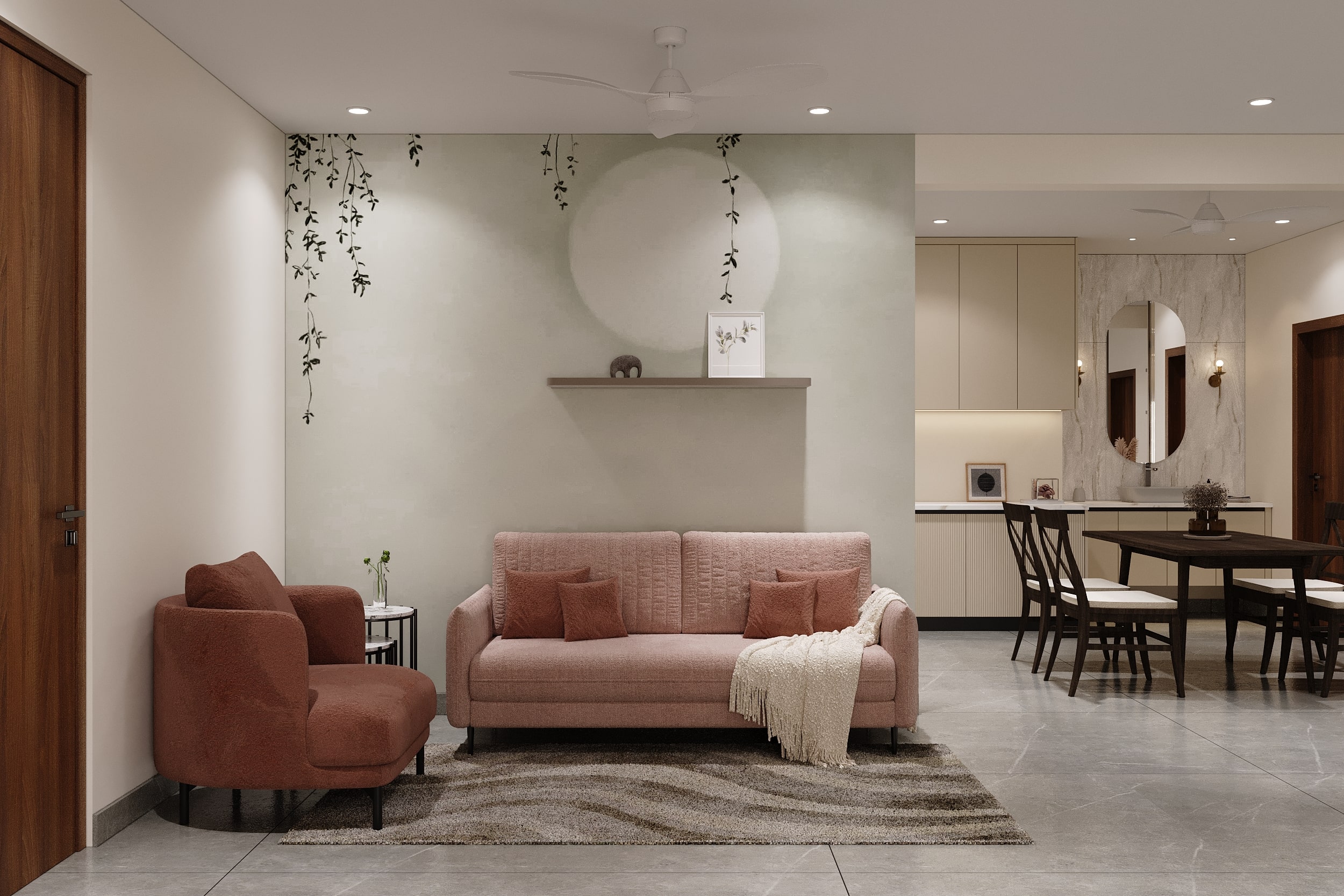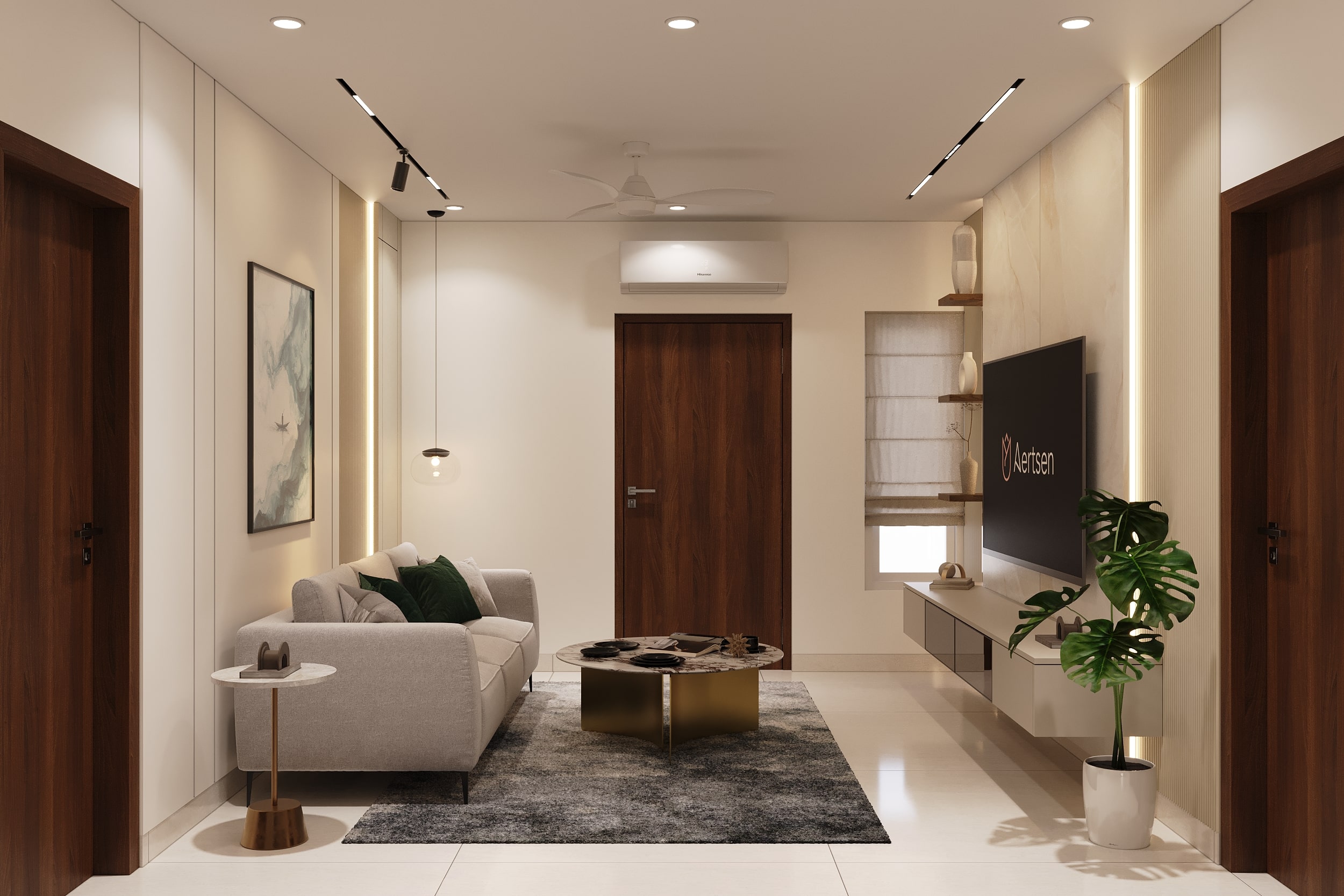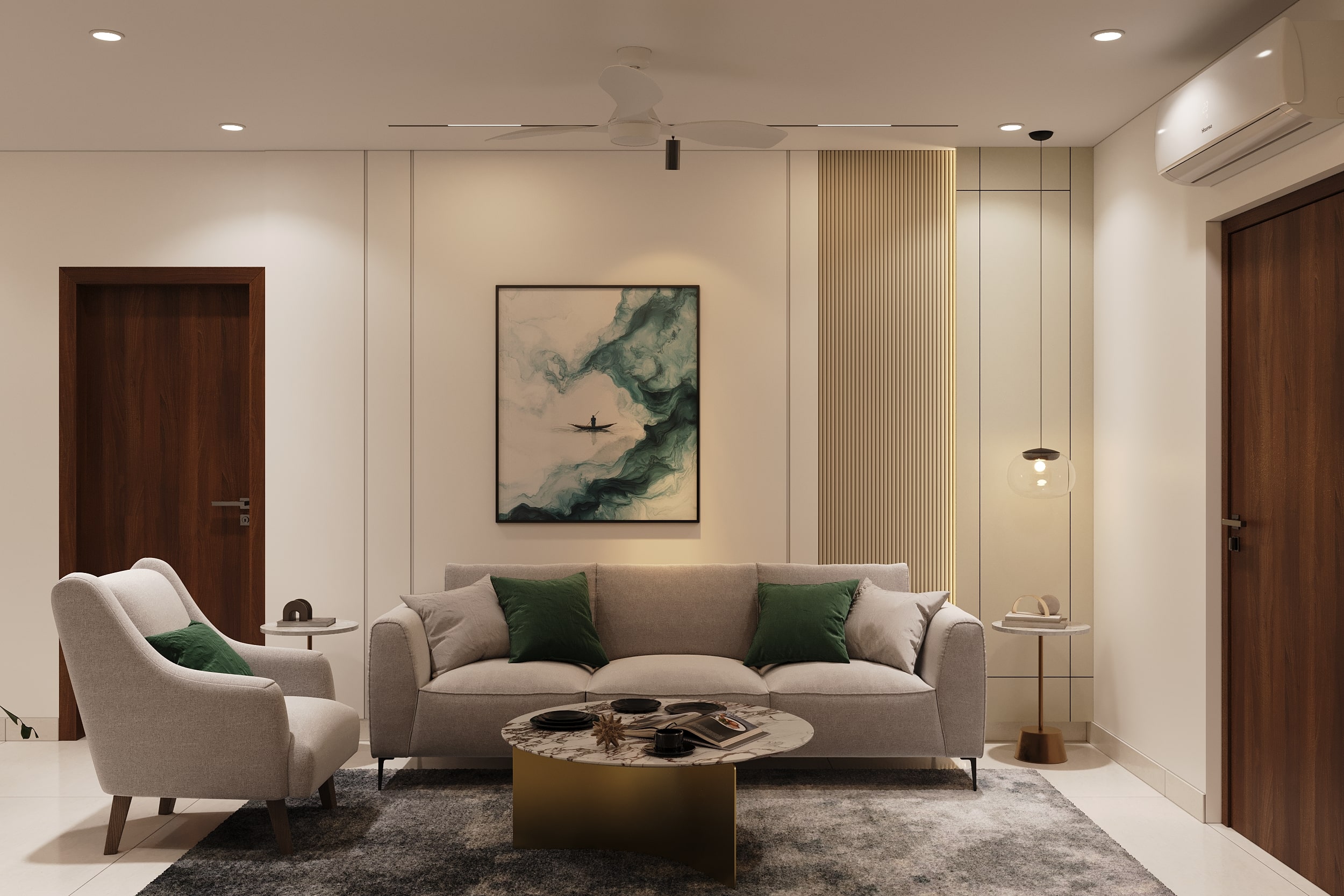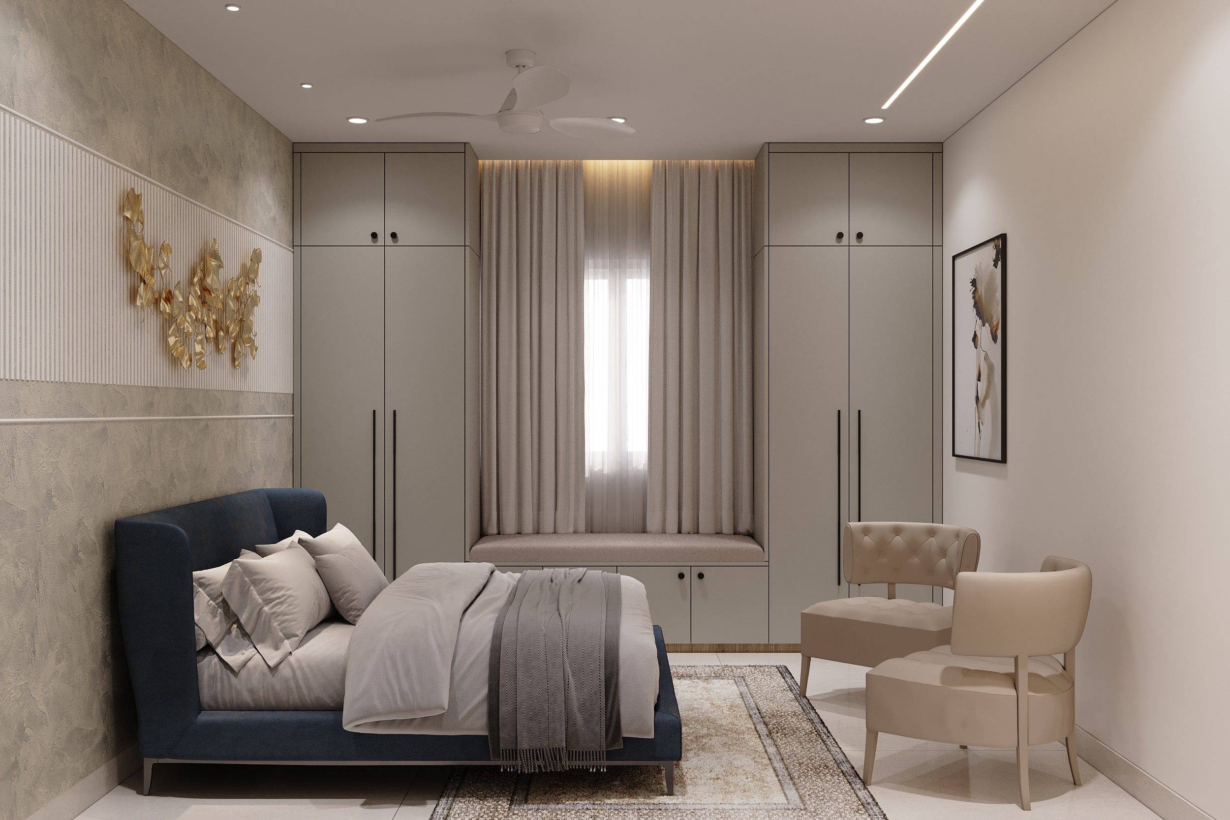 Mr. Dev Baburaj’s residence at SMR Vinay Iconia embodies contemporary luxury with warm tones, sculptural elements, and seamless spatial flow. The living, dining, and lounge areas exude calm refinement through curated textures, refined lighting, and modern minimalism, while the kitchen adds bold sophistication with its harmonious palette and crafted detailing. The bedroom continues this serene narrative with layered neutrals and understated opulence, creating a tranquil retreat that reflects a lifestyle of comfort, clarity, and elevated elegance.