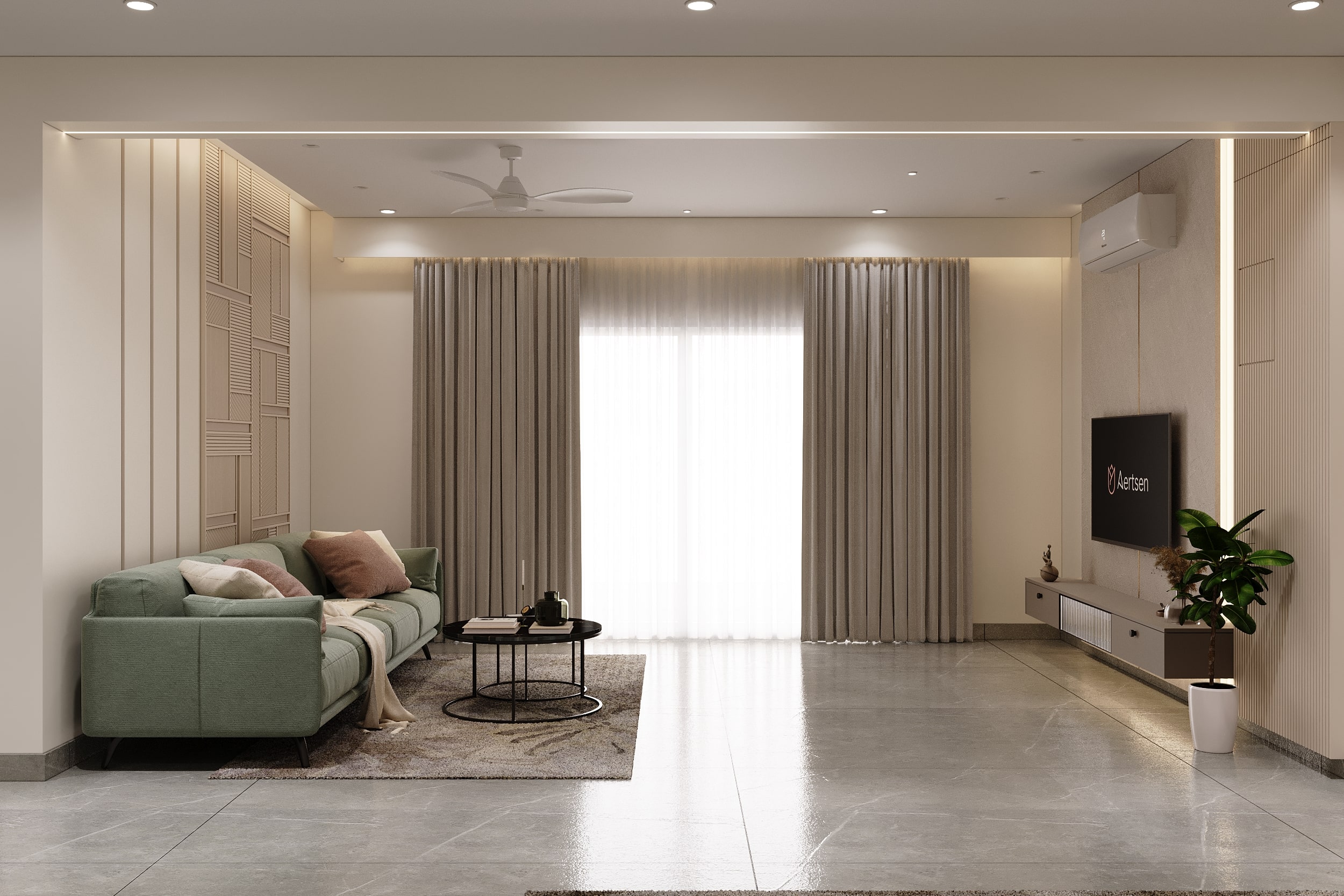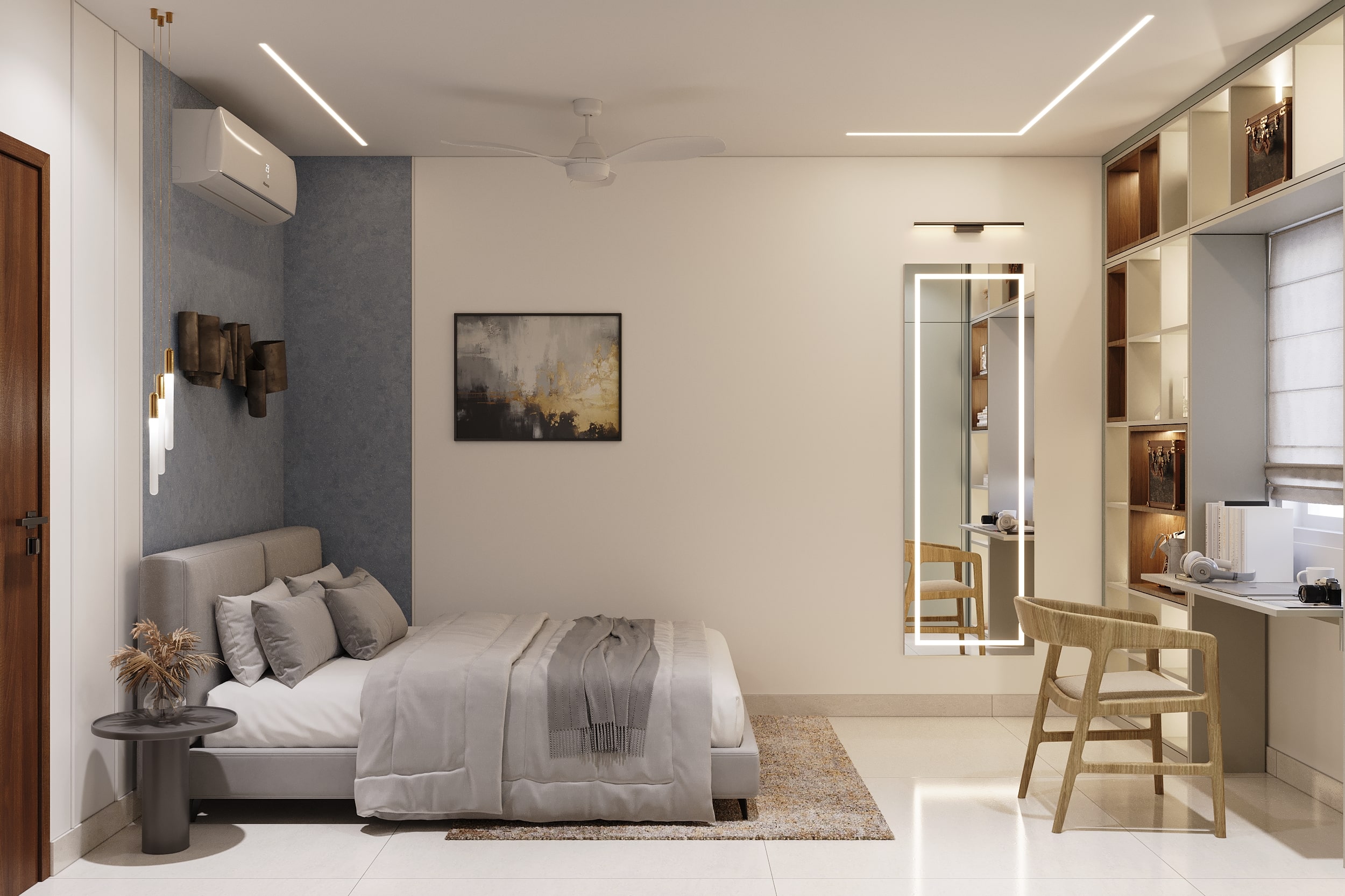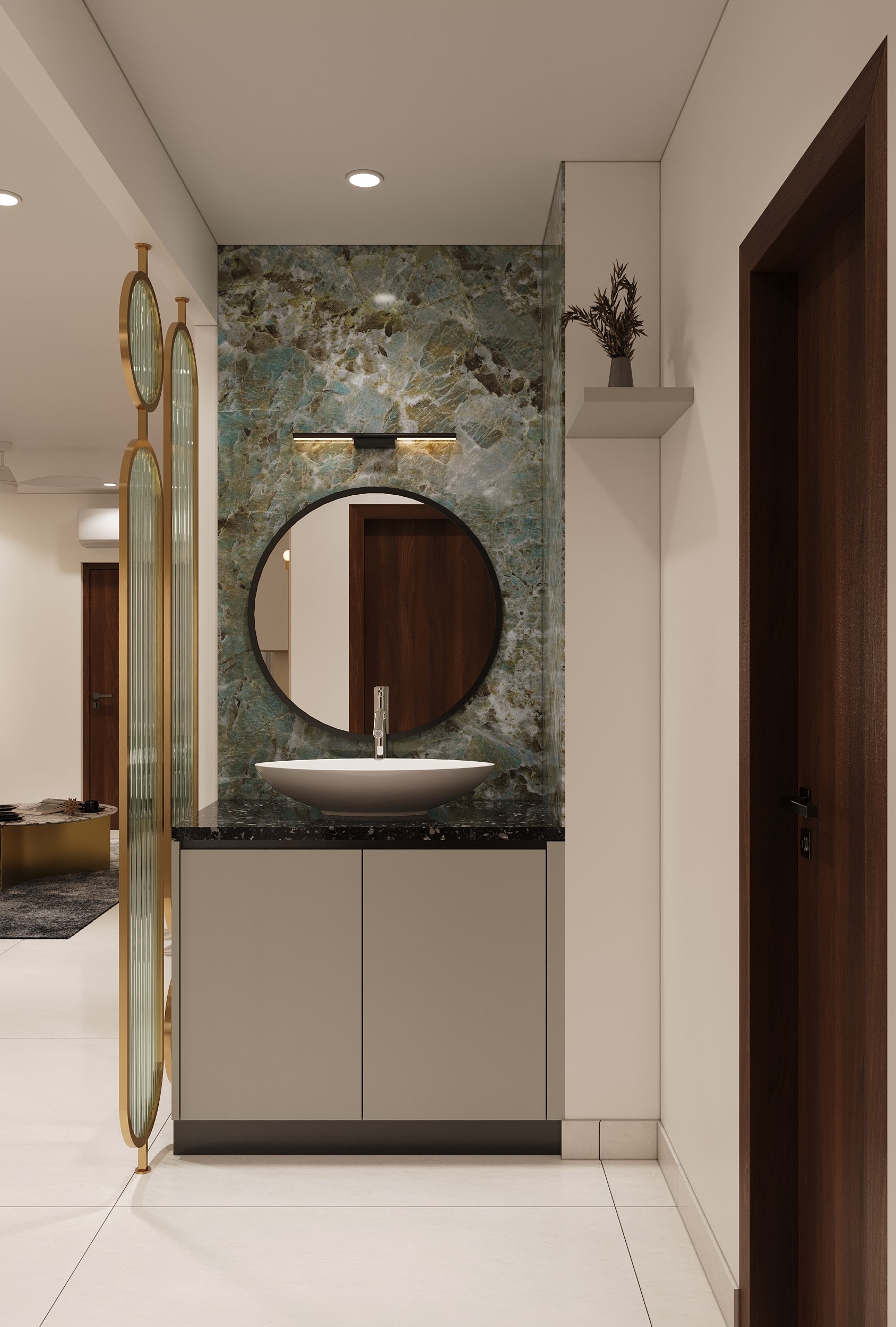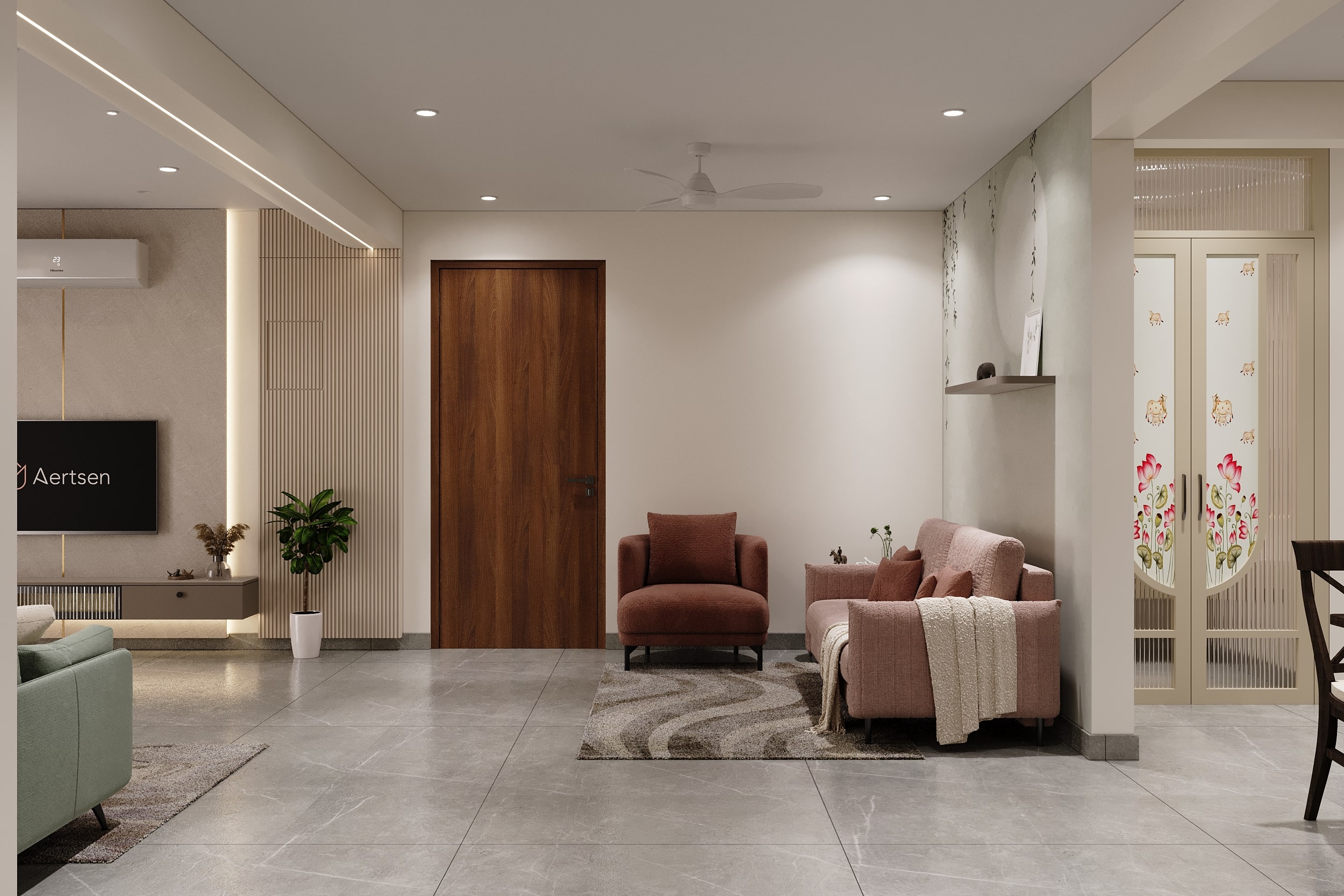 Mr. Dev Baburaj’s residence at SMR Vinay Iconia embodies contemporary luxury with warm tones, sculptural elements, and seamless spatial flow. The living, dining, and lounge areas exude calm refinement through curated textures, refined lighting, and modern minimalism, while the kitchen adds bold sophistication with its harmonious palette and crafted detailing. The bedroom continues this serene narrative with layered neutrals and understated opulence, creating a tranquil retreat that reflects a lifestyle of comfort, clarity, and elevated elegance.