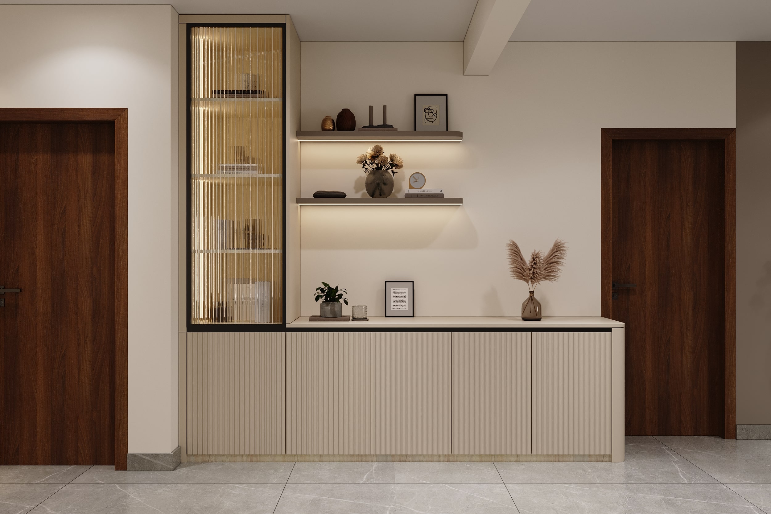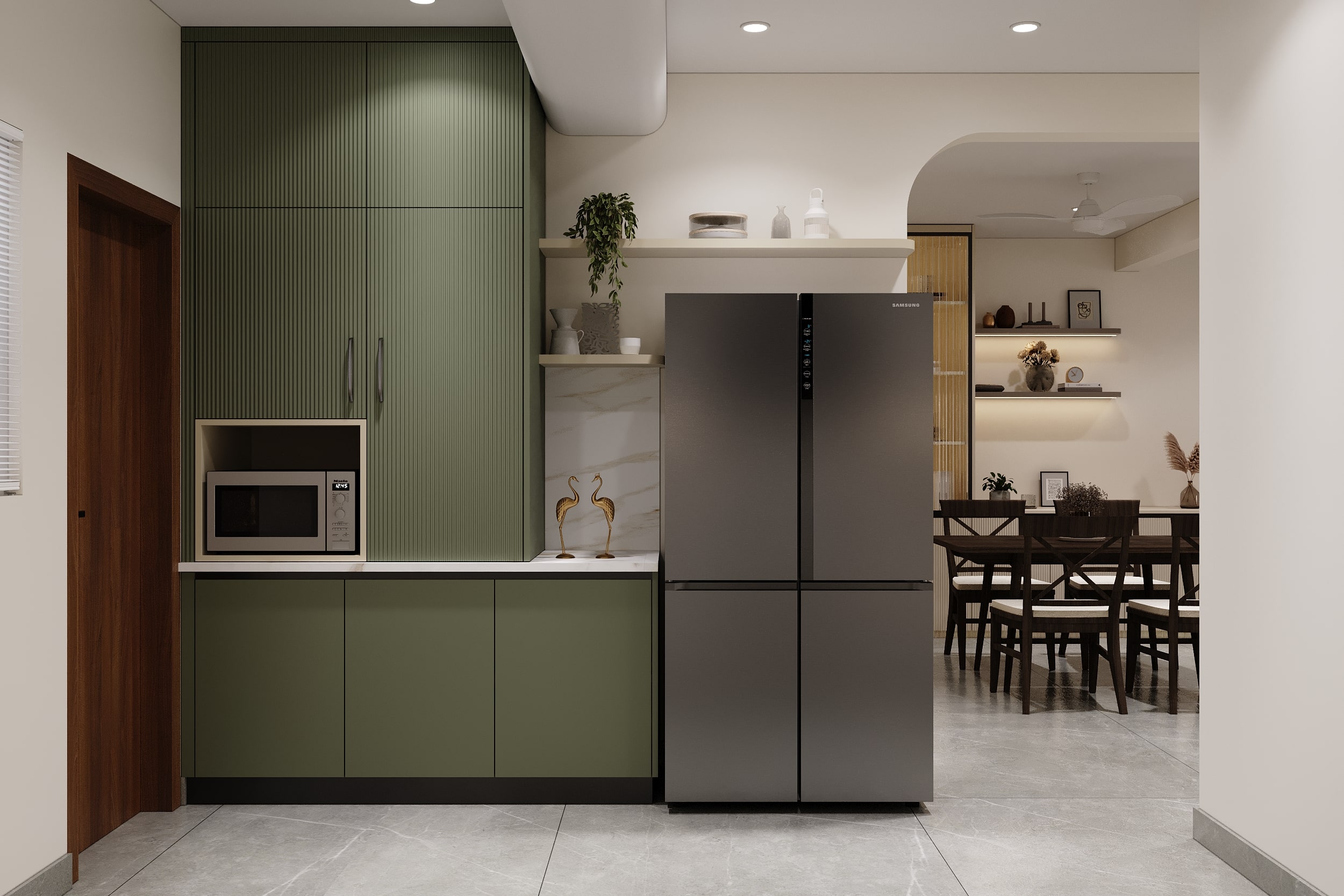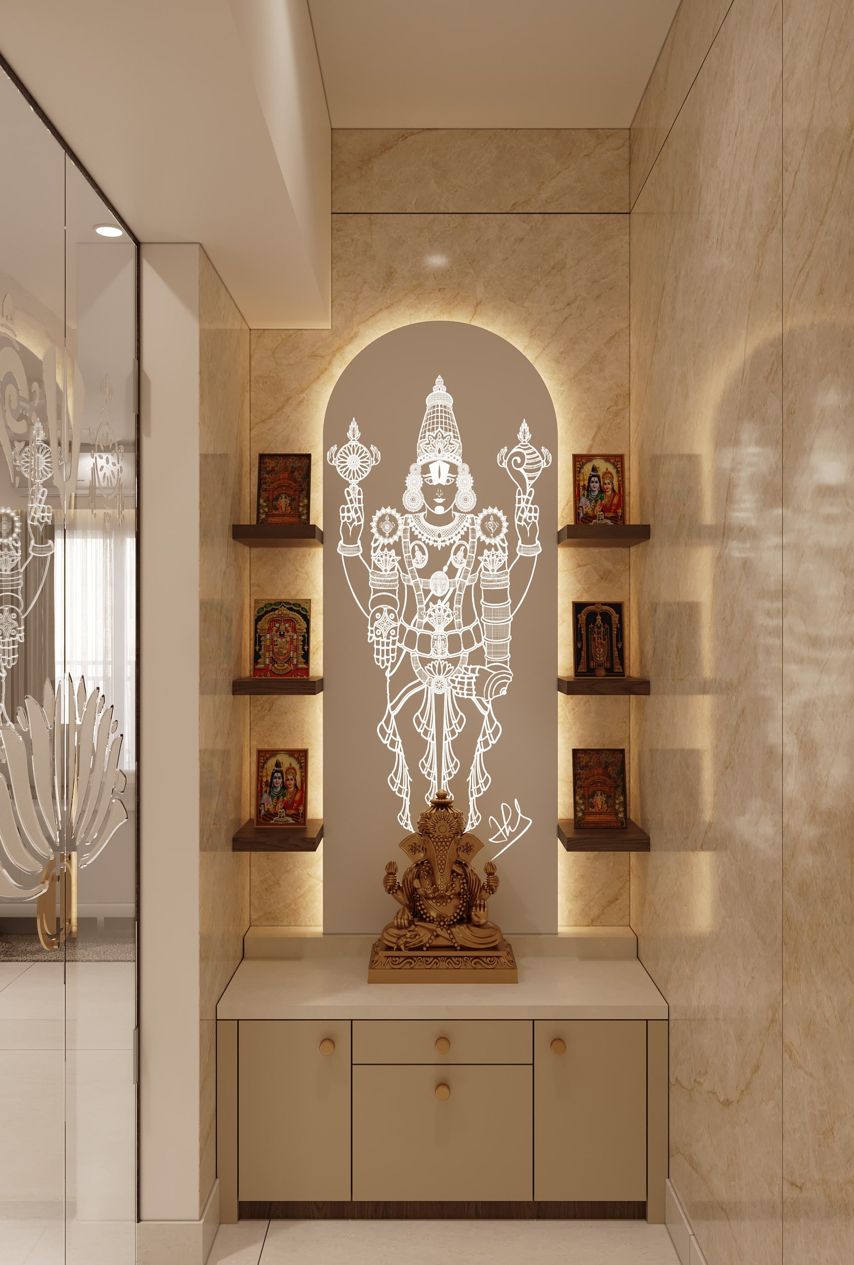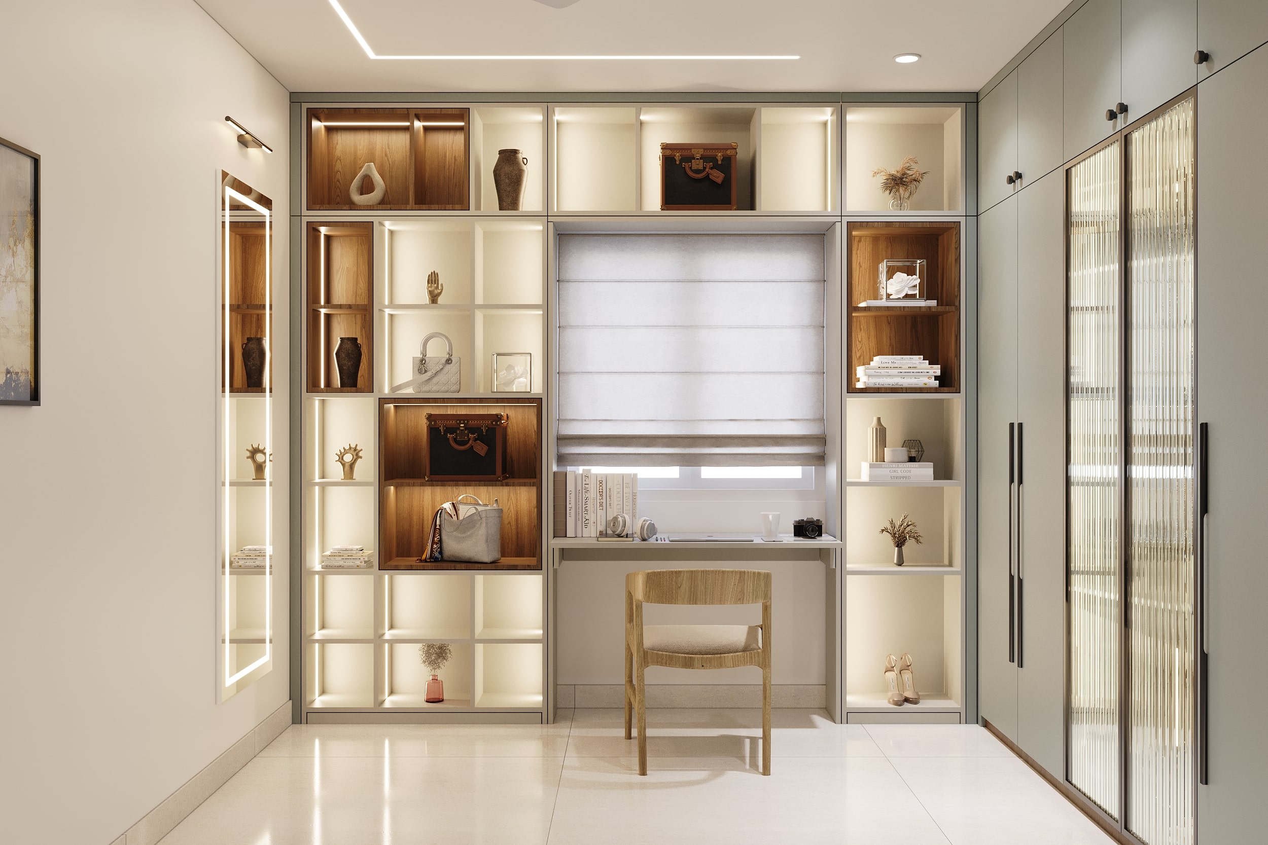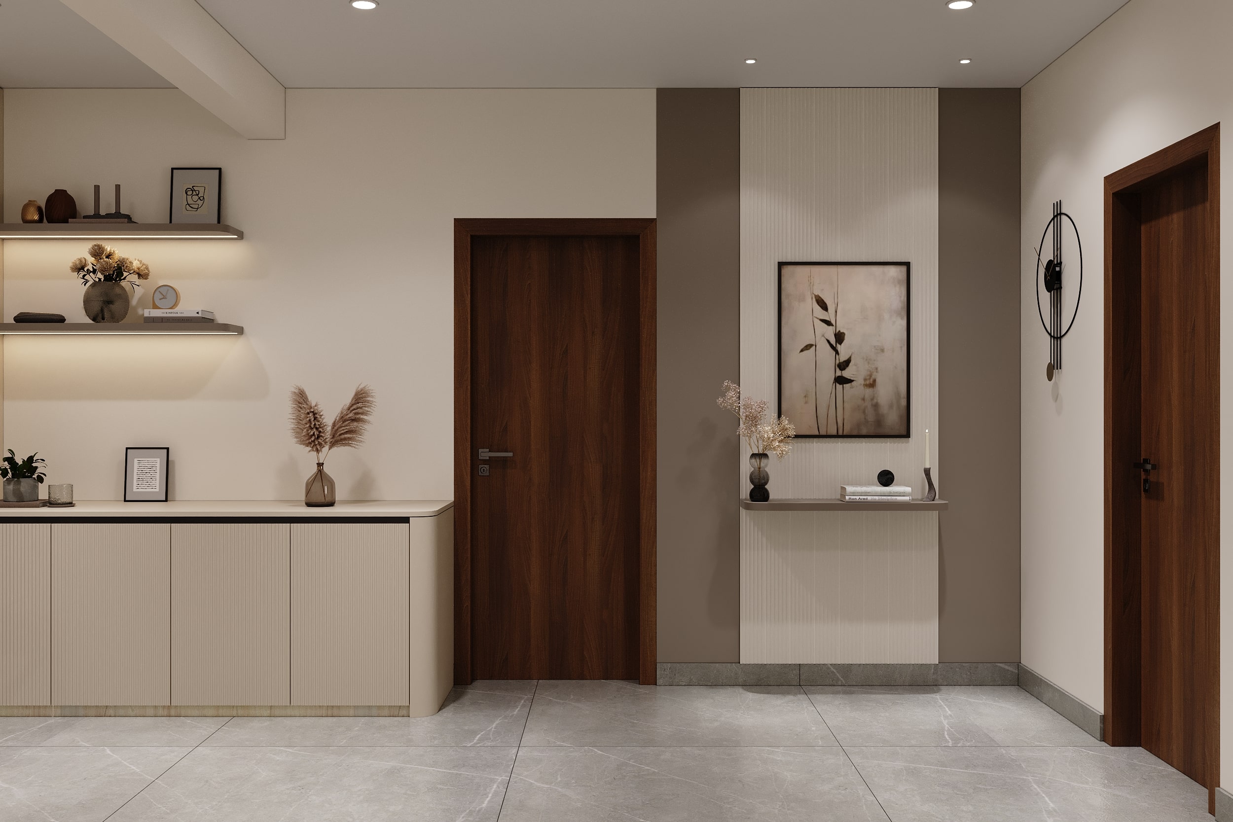Mr. Dev Baburaj’s residence at SMR Vinay Iconia embodies contemporary luxury with warm tones, sculptural elements, and seamless spatial flow. The living, dining, and lounge areas exude calm refinement through curated textures, refined lighting, and modern minimalism, while the kitchen adds bold sophistication with its harmonious palette and crafted detailing. The bedroom continues this serene narrative with layered neutrals and understated opulence, creating a tranquil retreat that reflects a lifestyle of comfort, clarity, and elevated elegance.