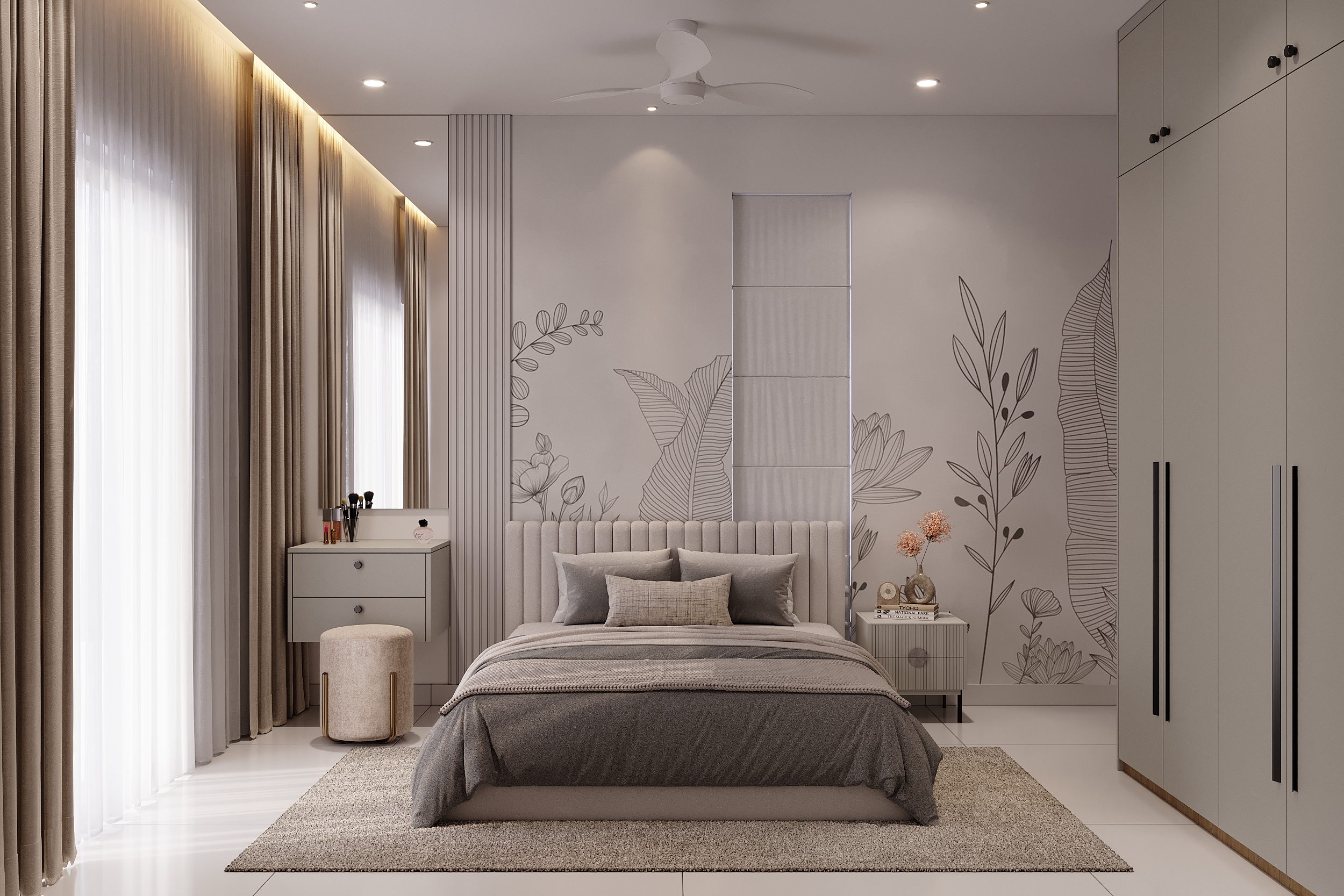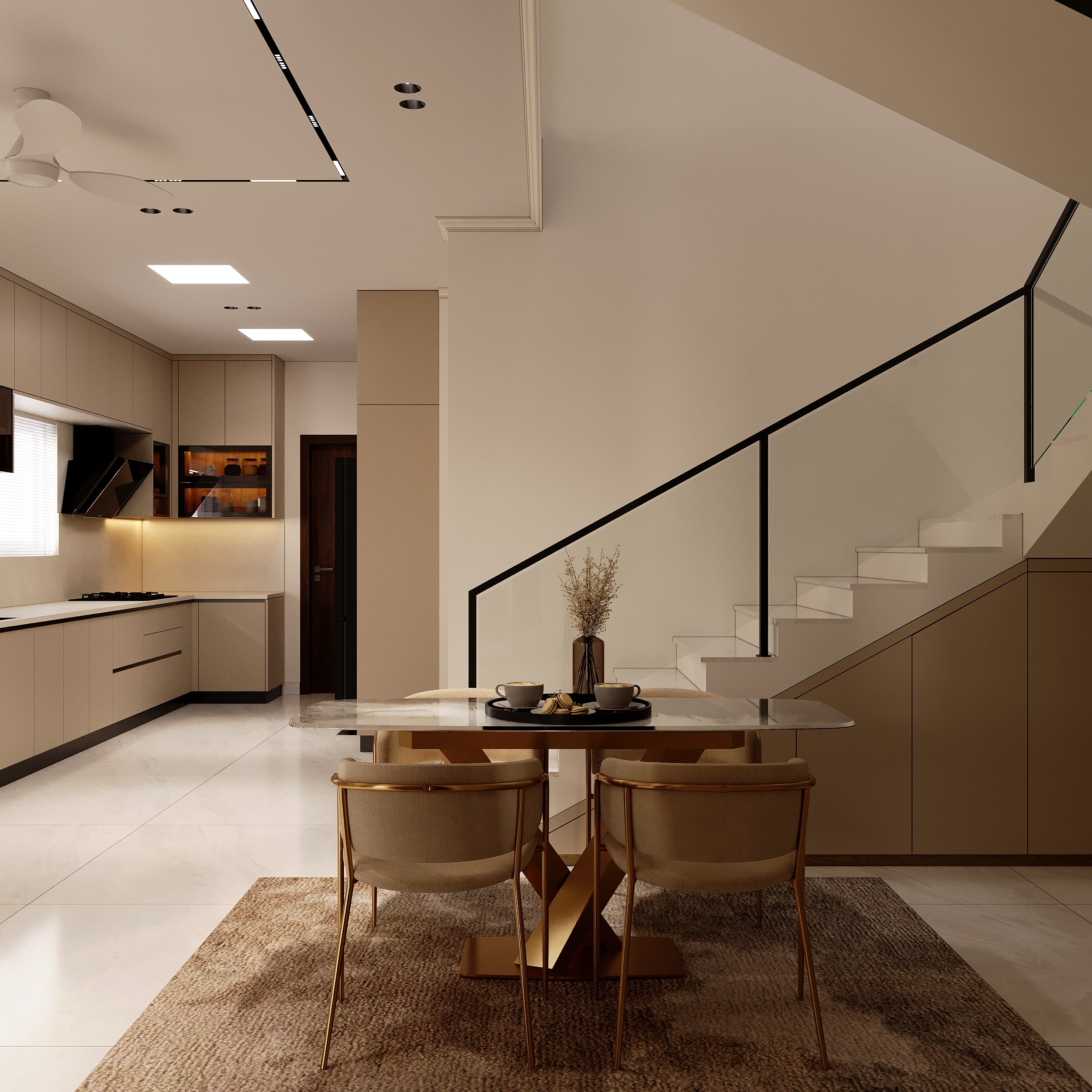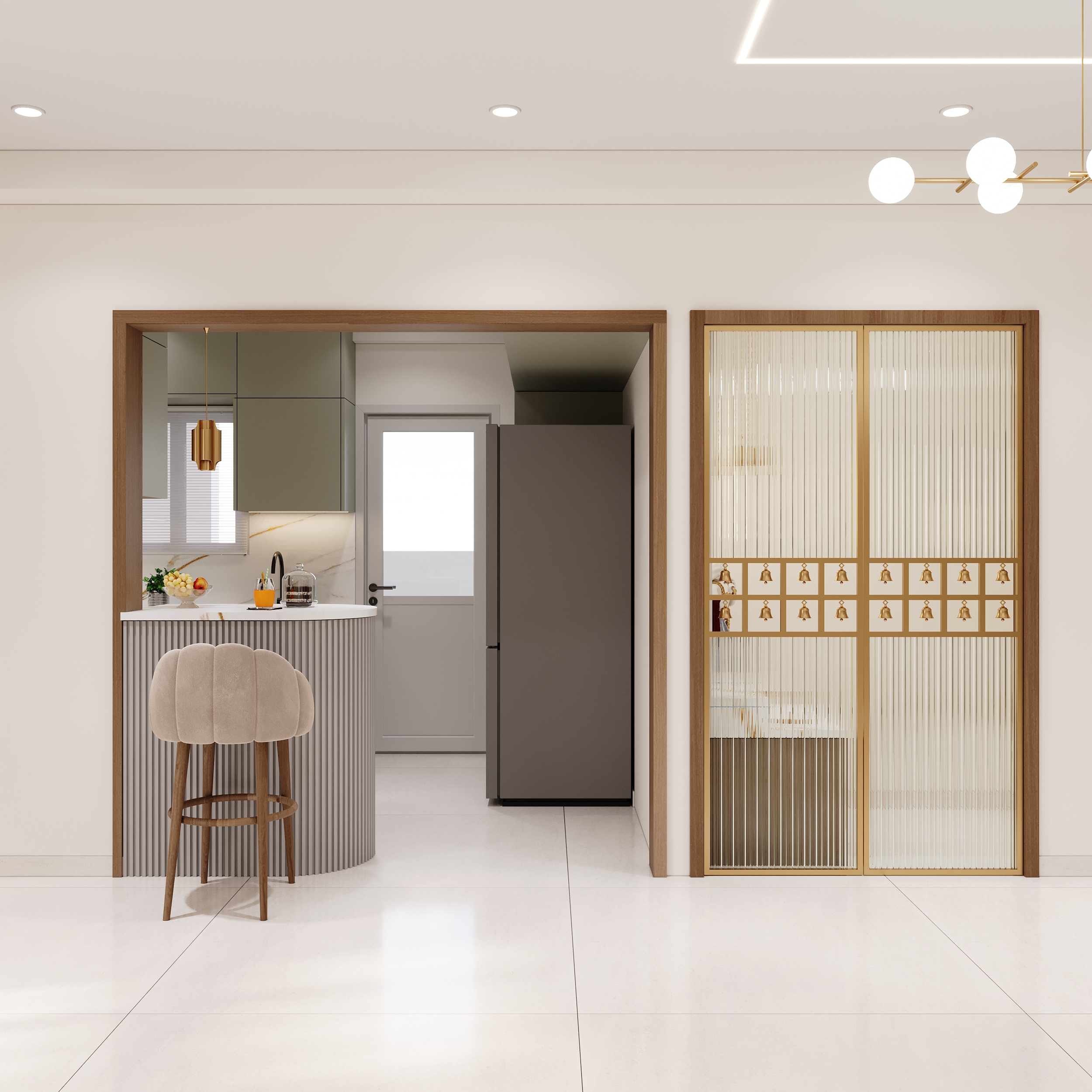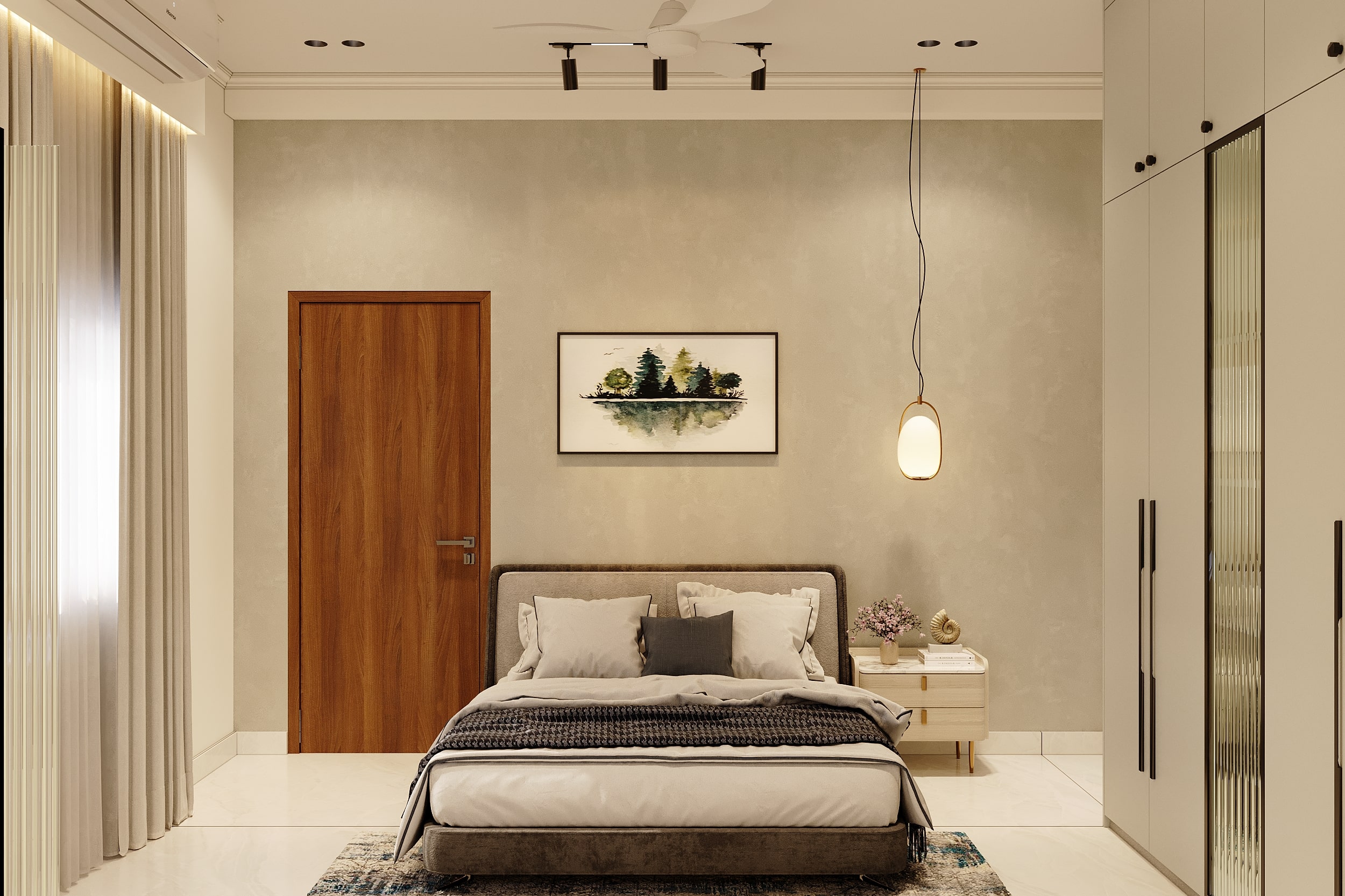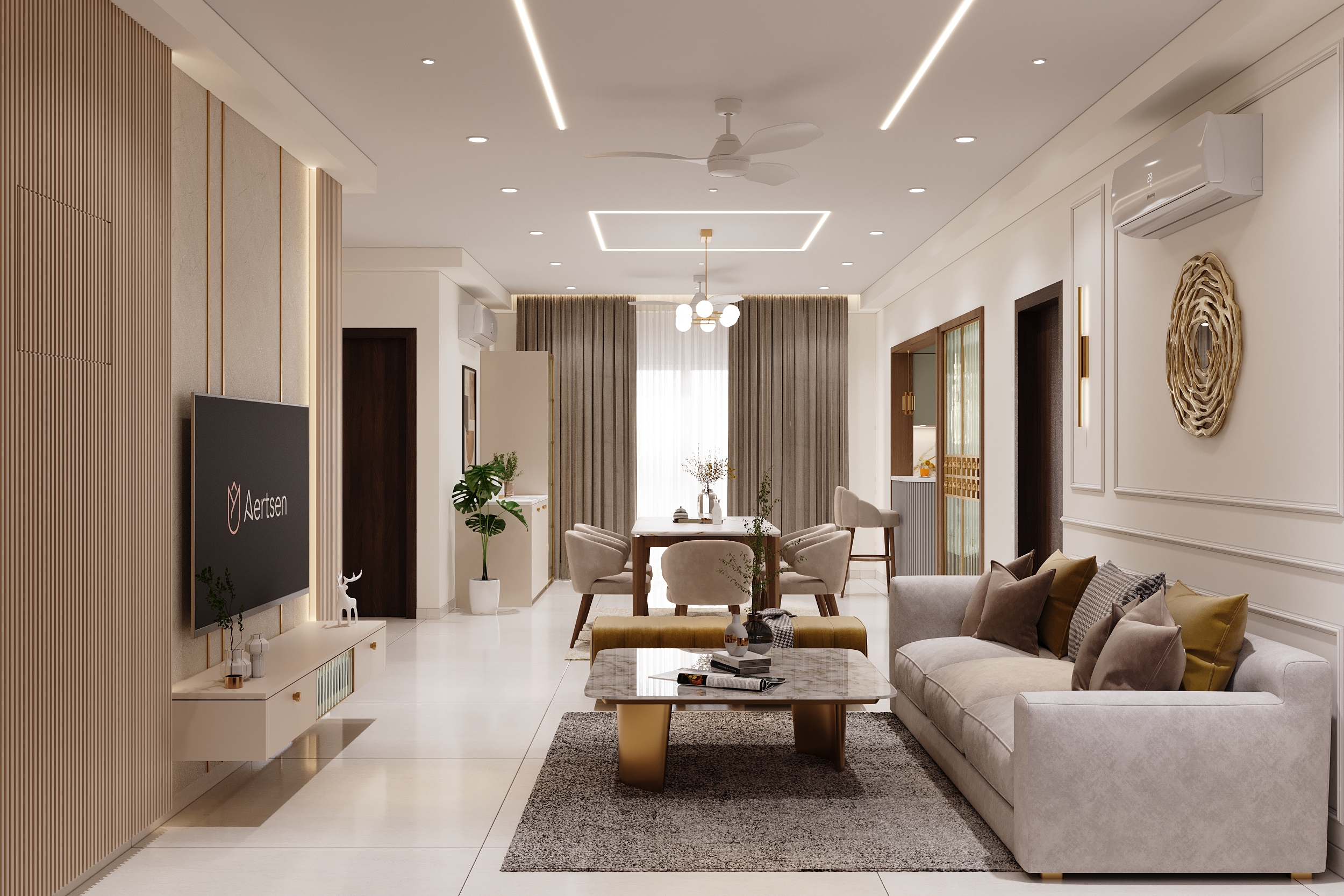Mr. Dev Baburaj’s residence at SMR Vinay Iconia embodies contemporary luxury with warm tones, sculptural elements, and seamless spatial flow. The living, dining, and lounge areas exude calm refinement through curated textures, refined lighting, and modern minimalism, while the kitchen adds bold sophistication with its harmonious palette and crafted detailing. The bedroom continues this serene narrative with layered neutrals and understated opulence, creating a tranquil retreat that reflects a lifestyle of comfort, clarity, and elevated elegance.