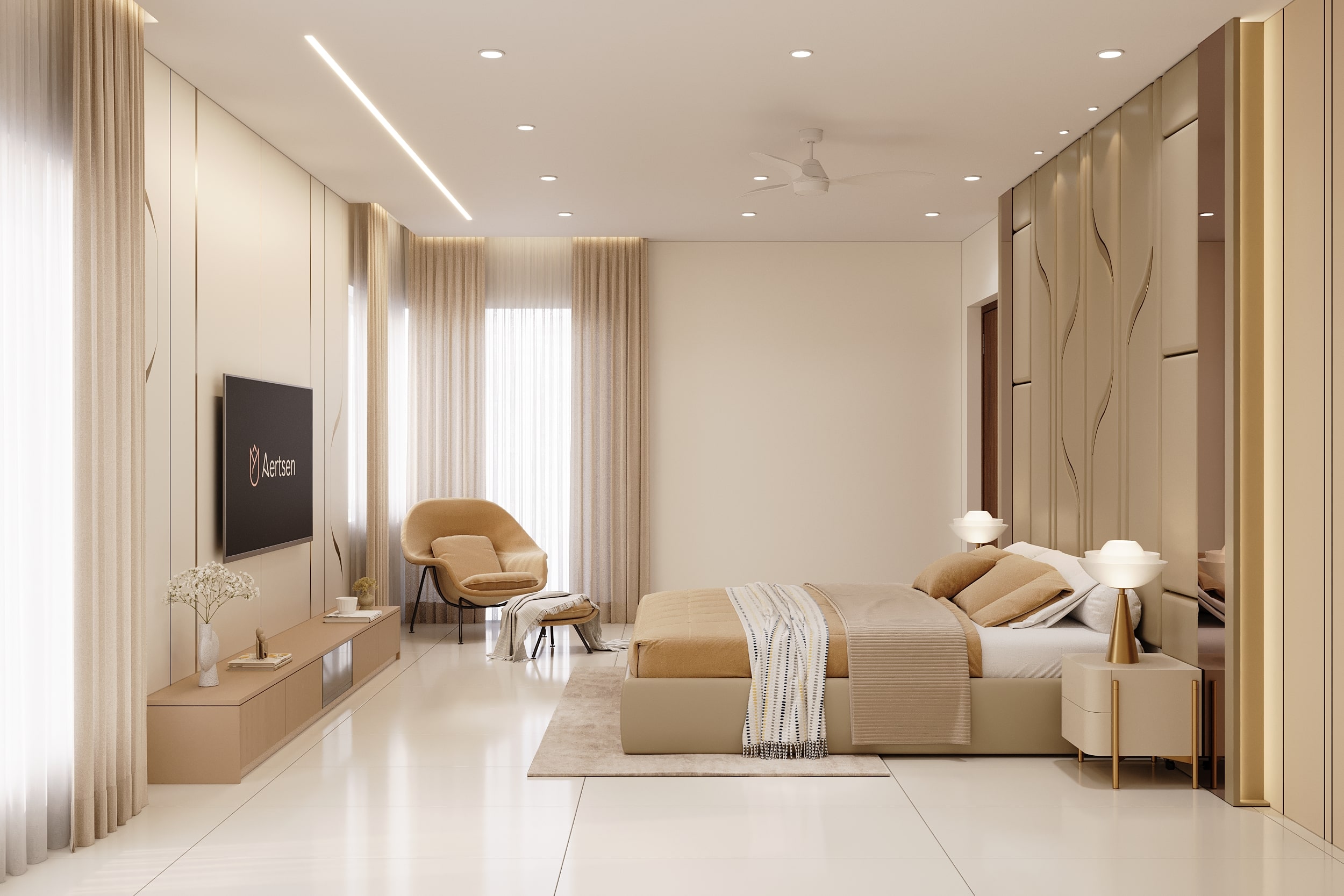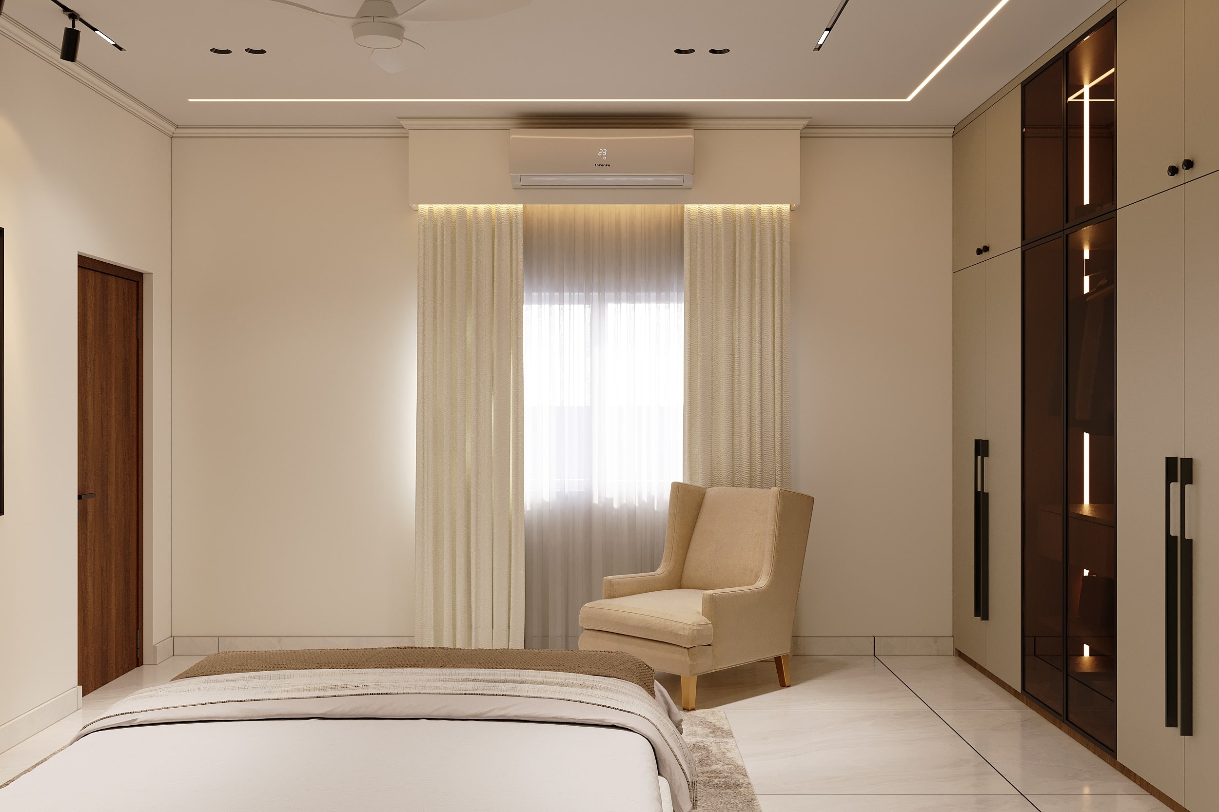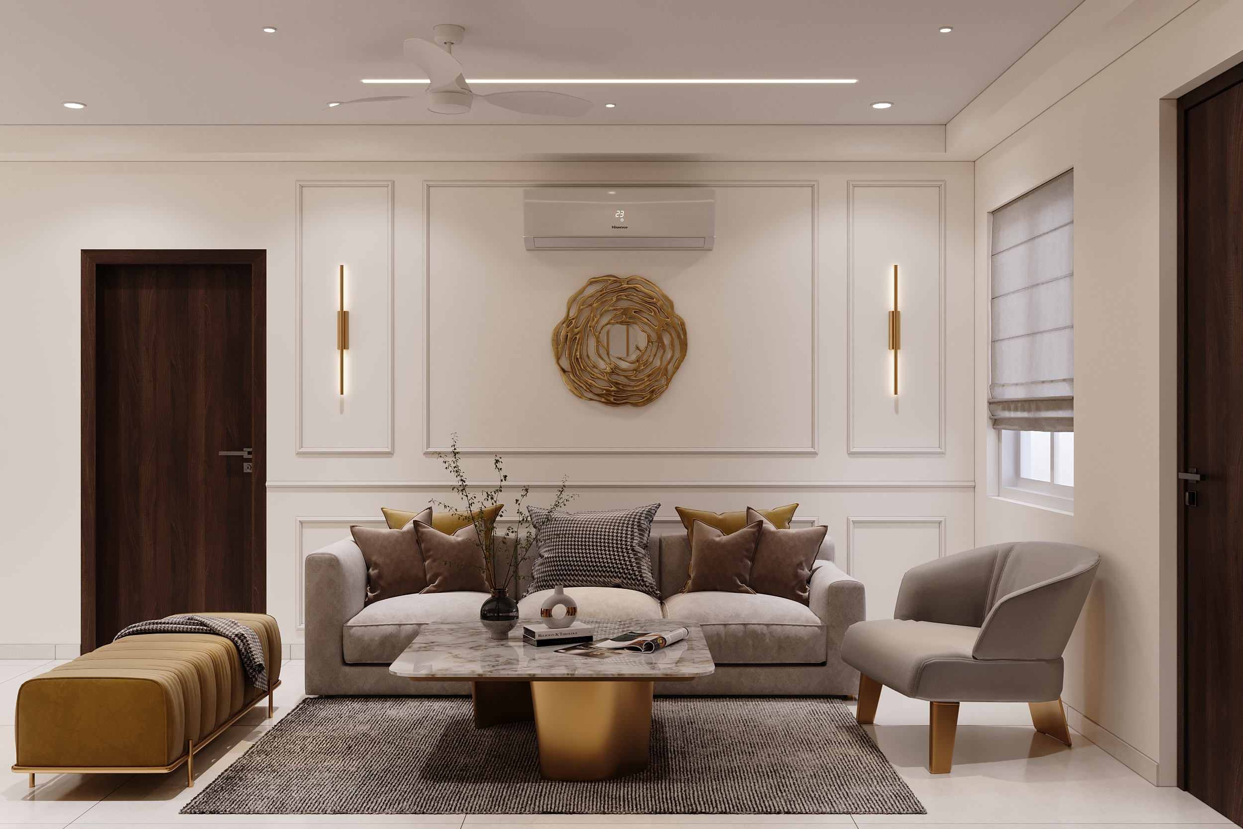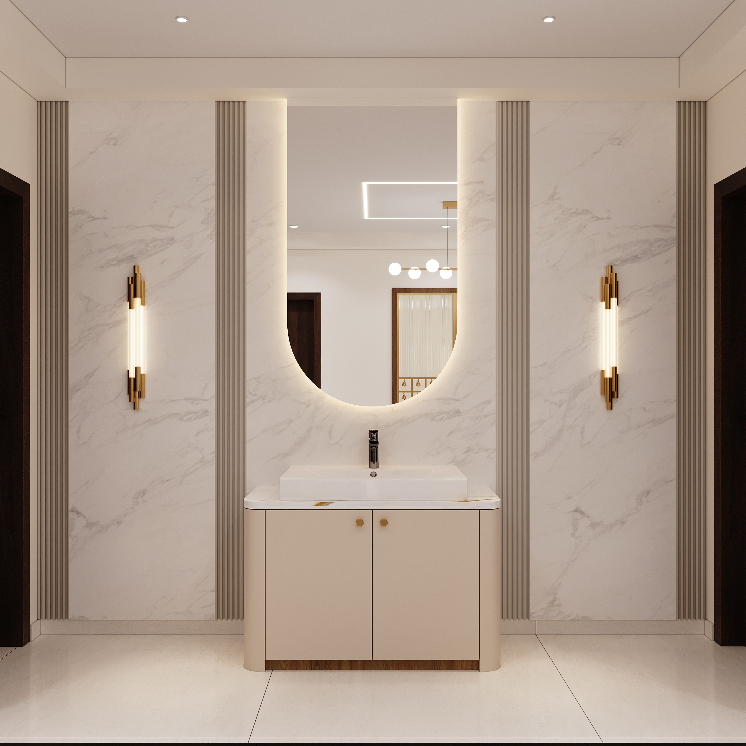 Mr. Dev Baburaj’s residence at SMR Vinay Iconia embodies contemporary luxury with warm tones, sculptural elements, and seamless spatial flow. The living, dining, and lounge areas exude calm refinement through curated textures, refined lighting, and modern minimalism, while the kitchen adds bold sophistication with its harmonious palette and crafted detailing. The bedroom continues this serene narrative with layered neutrals and understated opulence, creating a tranquil retreat that reflects a lifestyle of comfort, clarity, and elevated elegance.