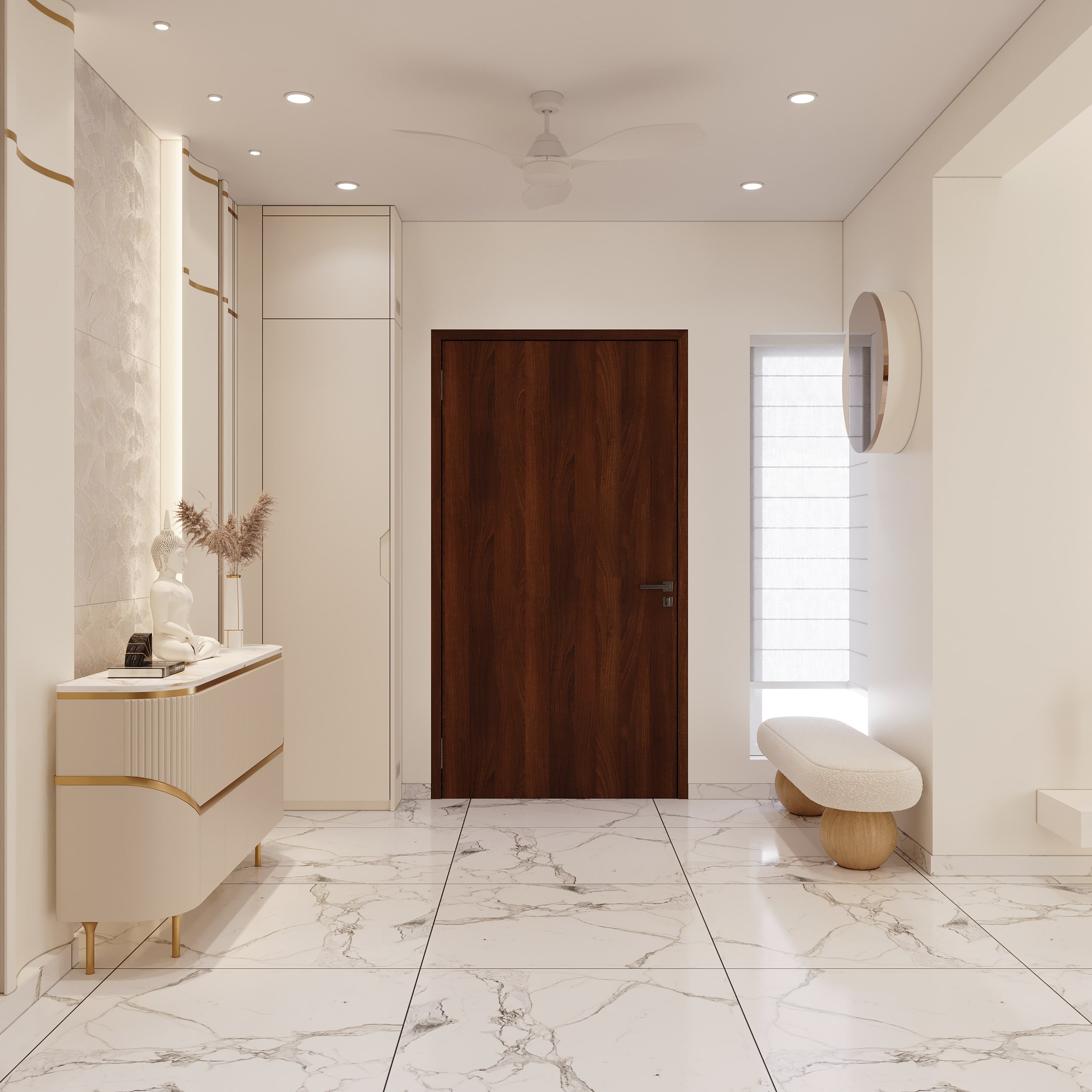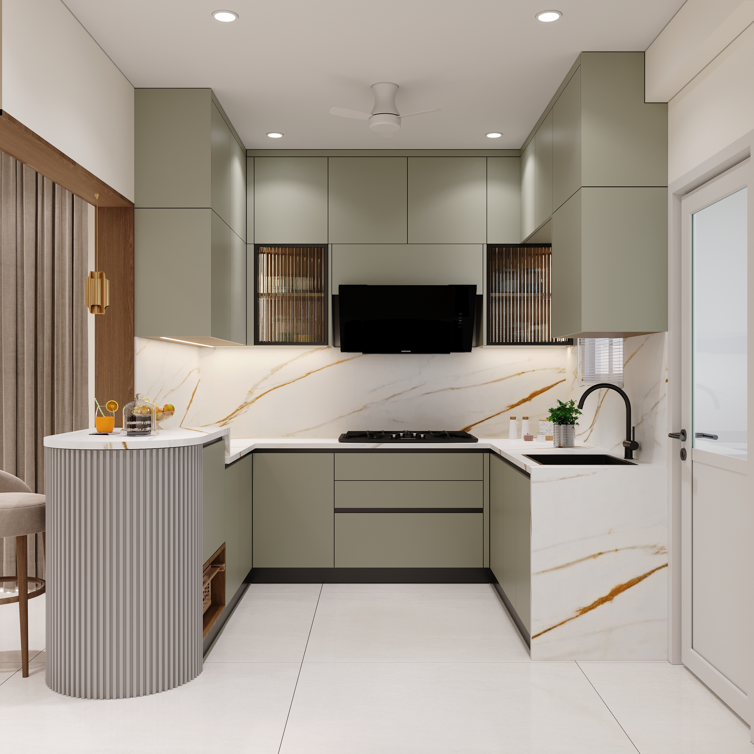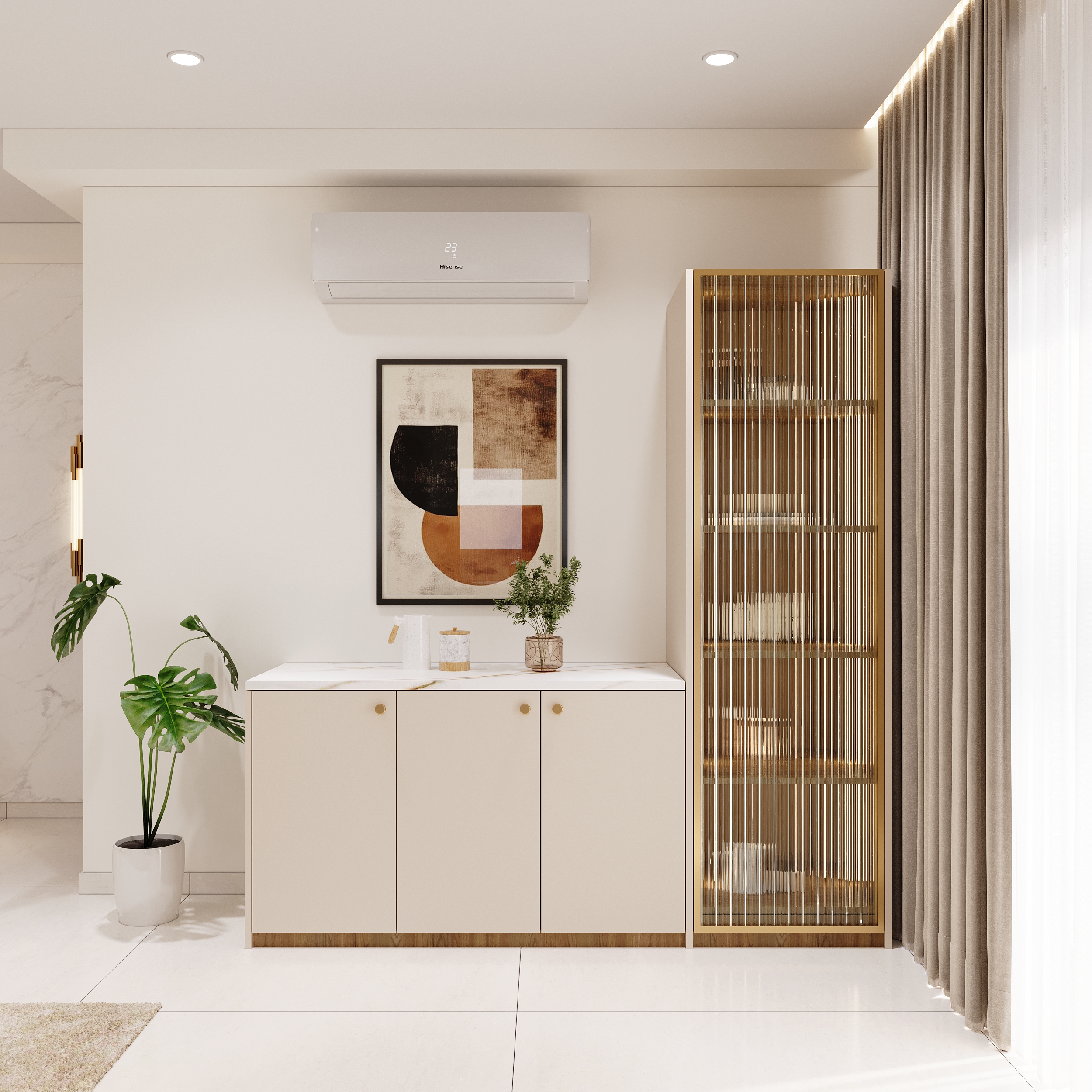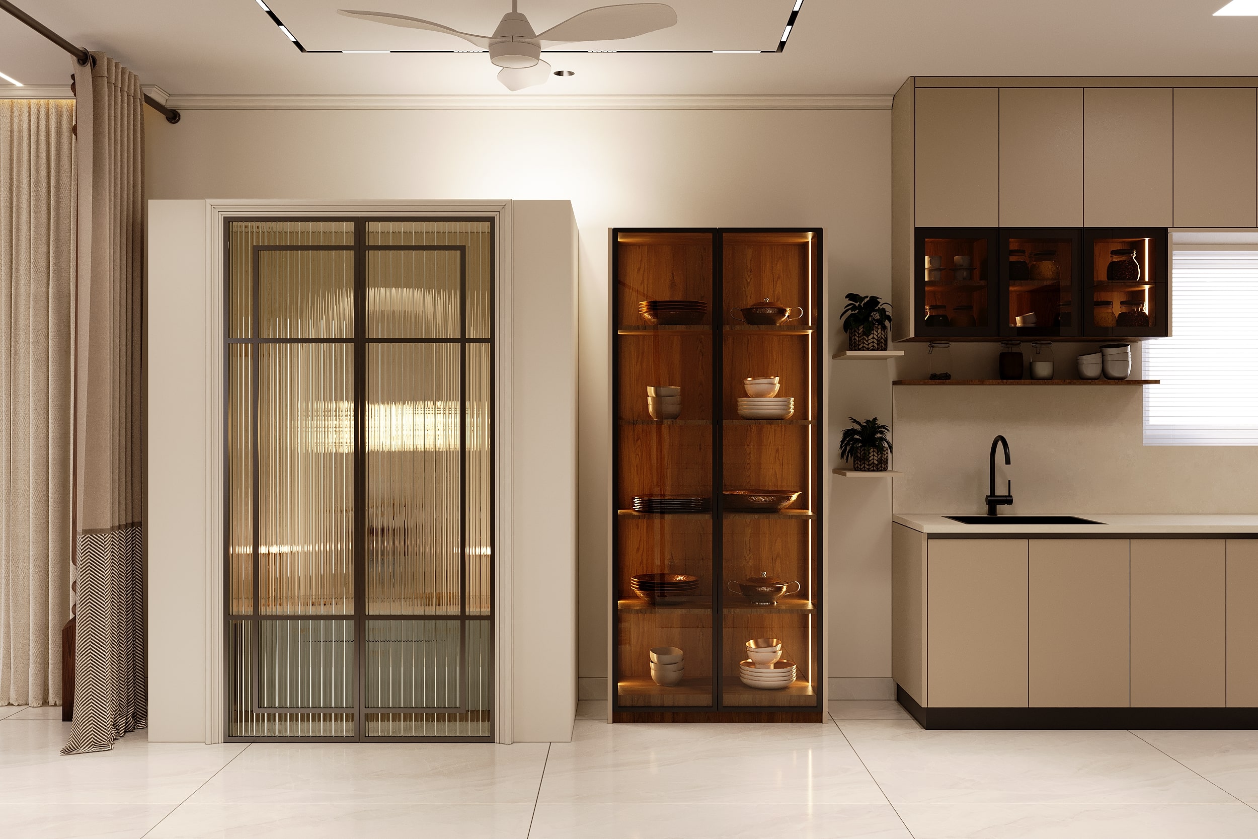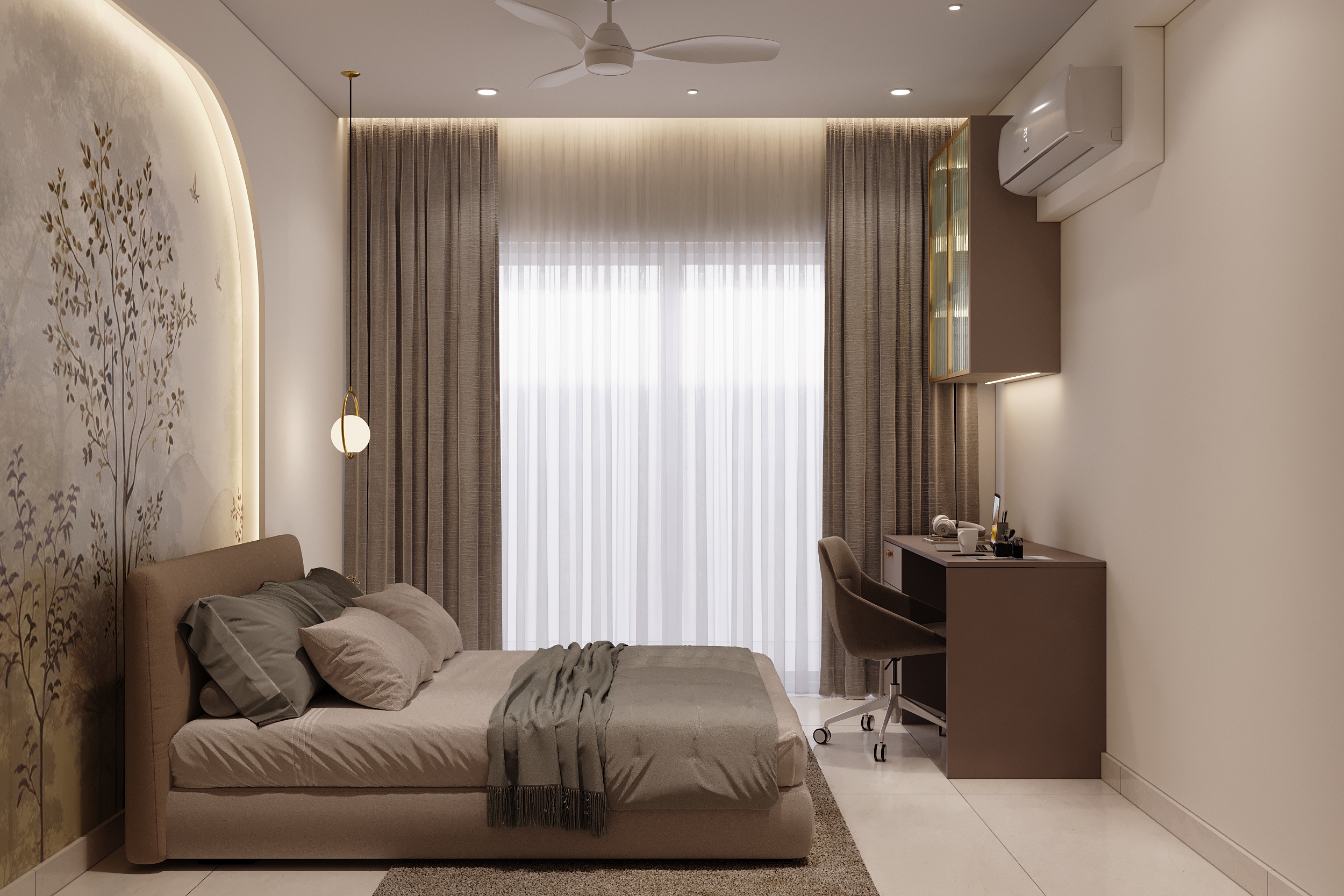 Mr. Dev Baburaj’s residence at SMR Vinay Iconia embodies contemporary luxury with warm tones, sculptural elements, and seamless spatial flow. The living, dining, and lounge areas exude calm refinement through curated textures, refined lighting, and modern minimalism, while the kitchen adds bold sophistication with its harmonious palette and crafted detailing. The bedroom continues this serene narrative with layered neutrals and understated opulence, creating a tranquil retreat that reflects a lifestyle of comfort, clarity, and elevated elegance.