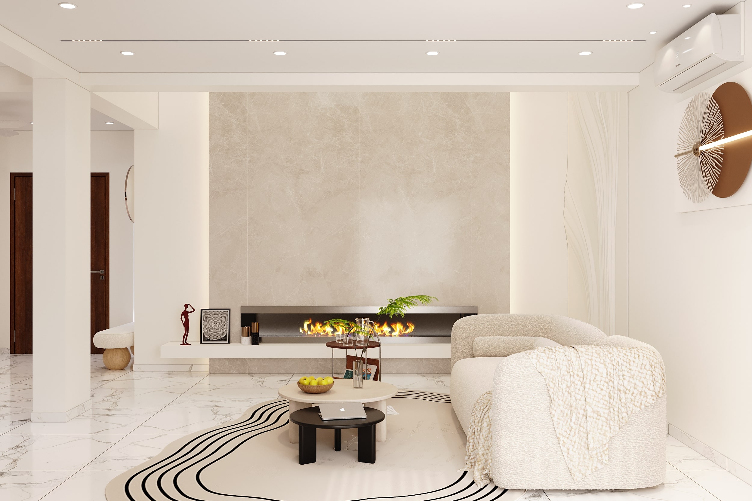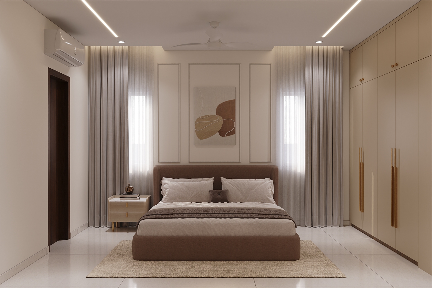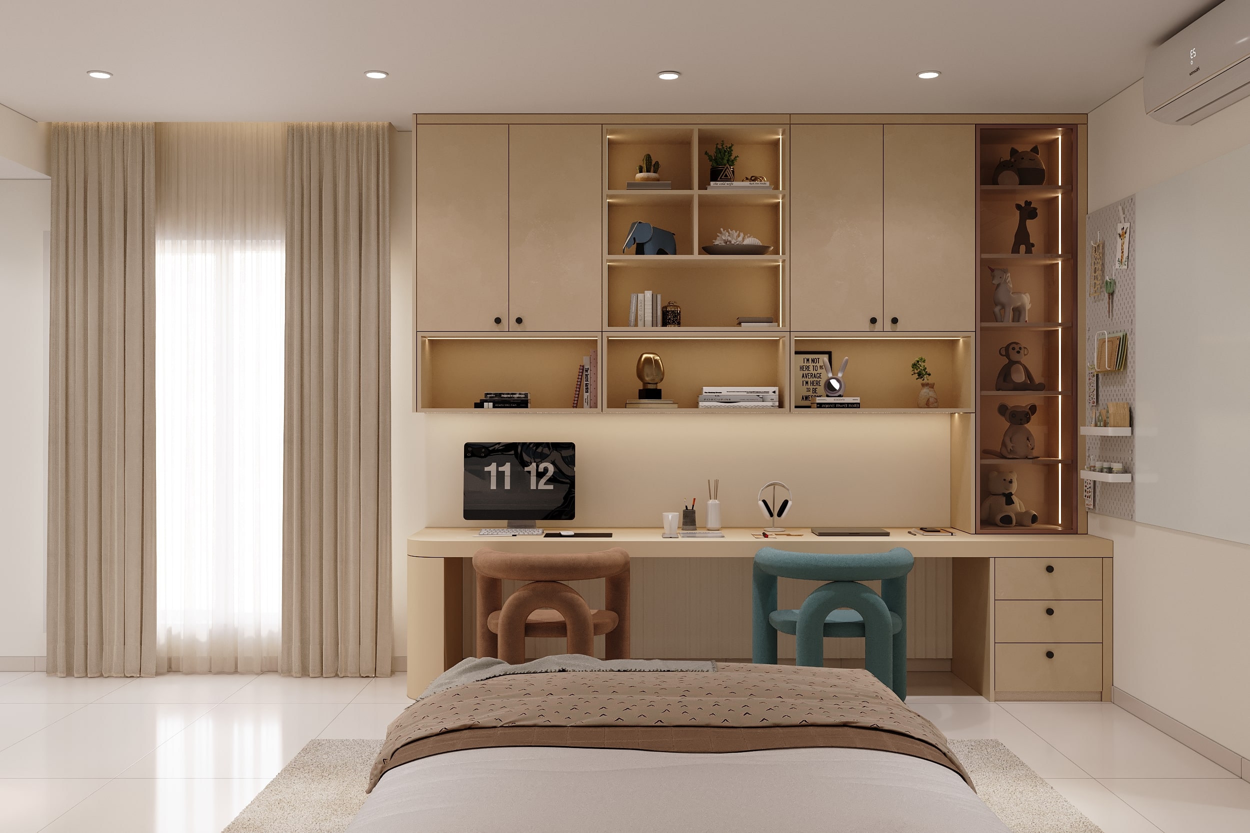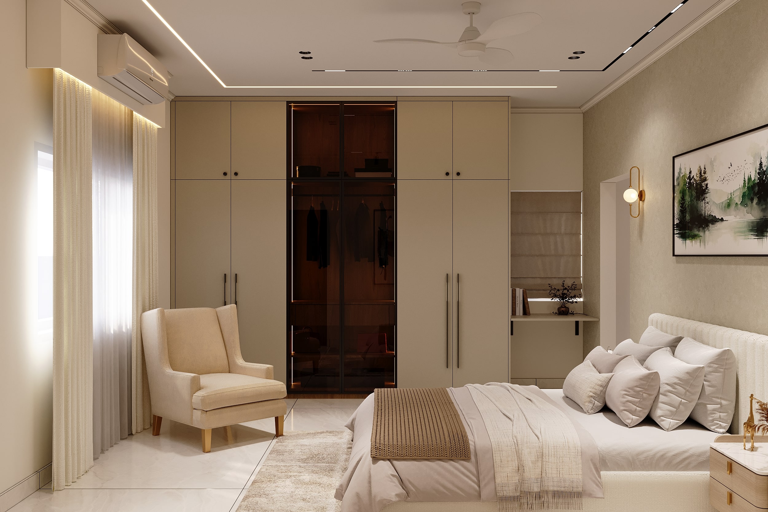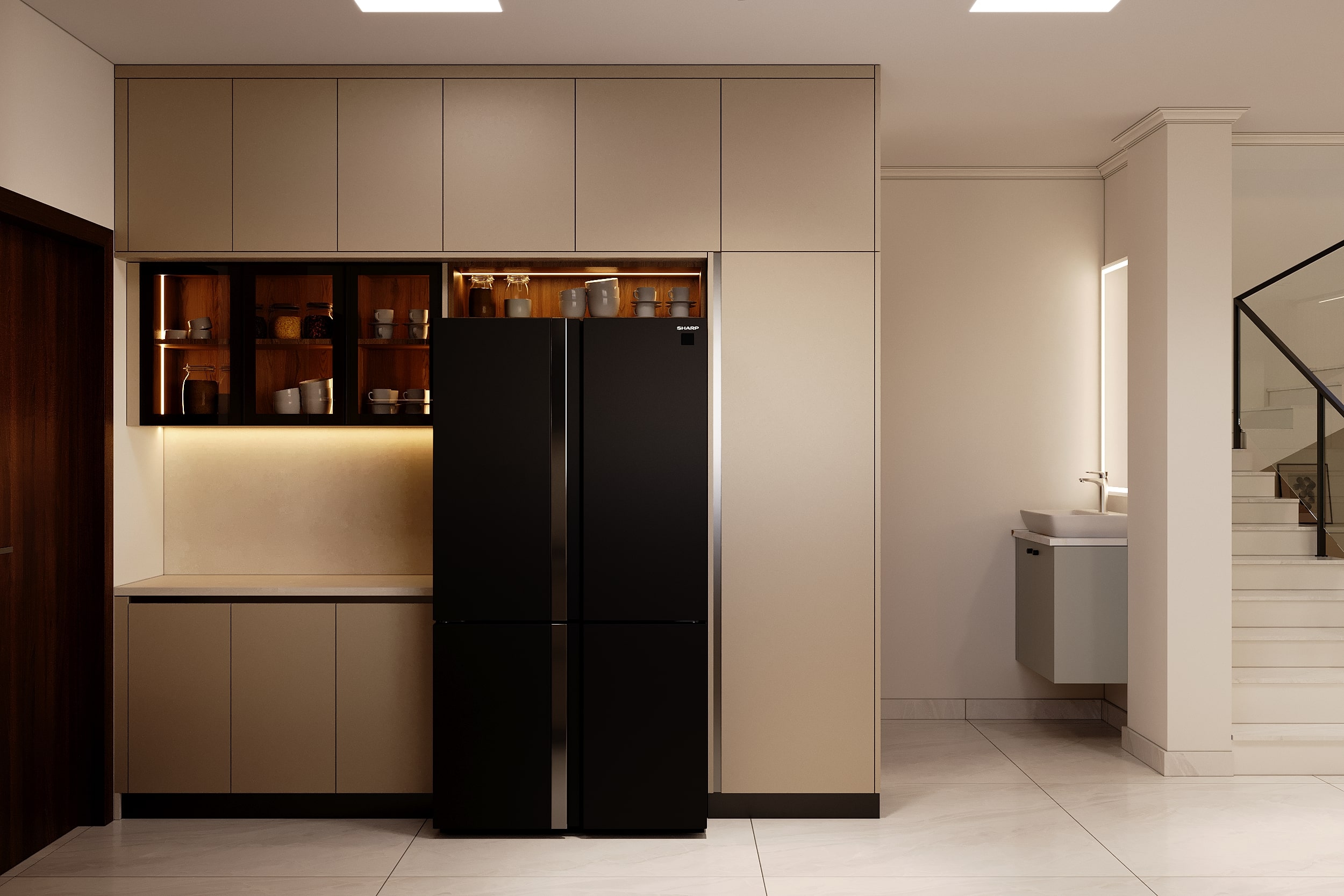 Mr. Dev Baburaj’s residence at SMR Vinay Iconia embodies contemporary luxury with warm tones, sculptural elements, and seamless spatial flow. The living, dining, and lounge areas exude calm refinement through curated textures, refined lighting, and modern minimalism, while the kitchen adds bold sophistication with its harmonious palette and crafted detailing. The bedroom continues this serene narrative with layered neutrals and understated opulence, creating a tranquil retreat that reflects a lifestyle of comfort, clarity, and elevated elegance.
