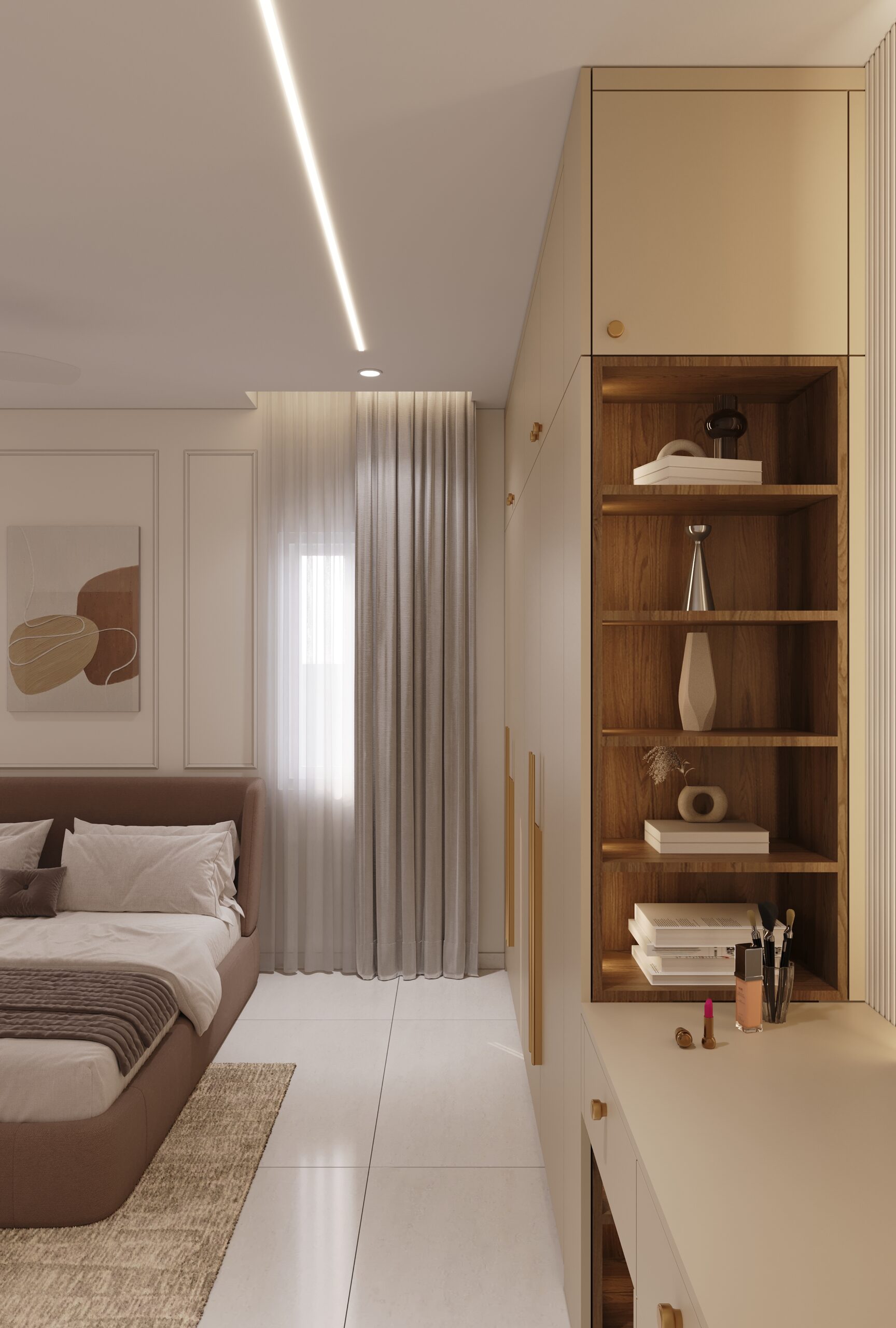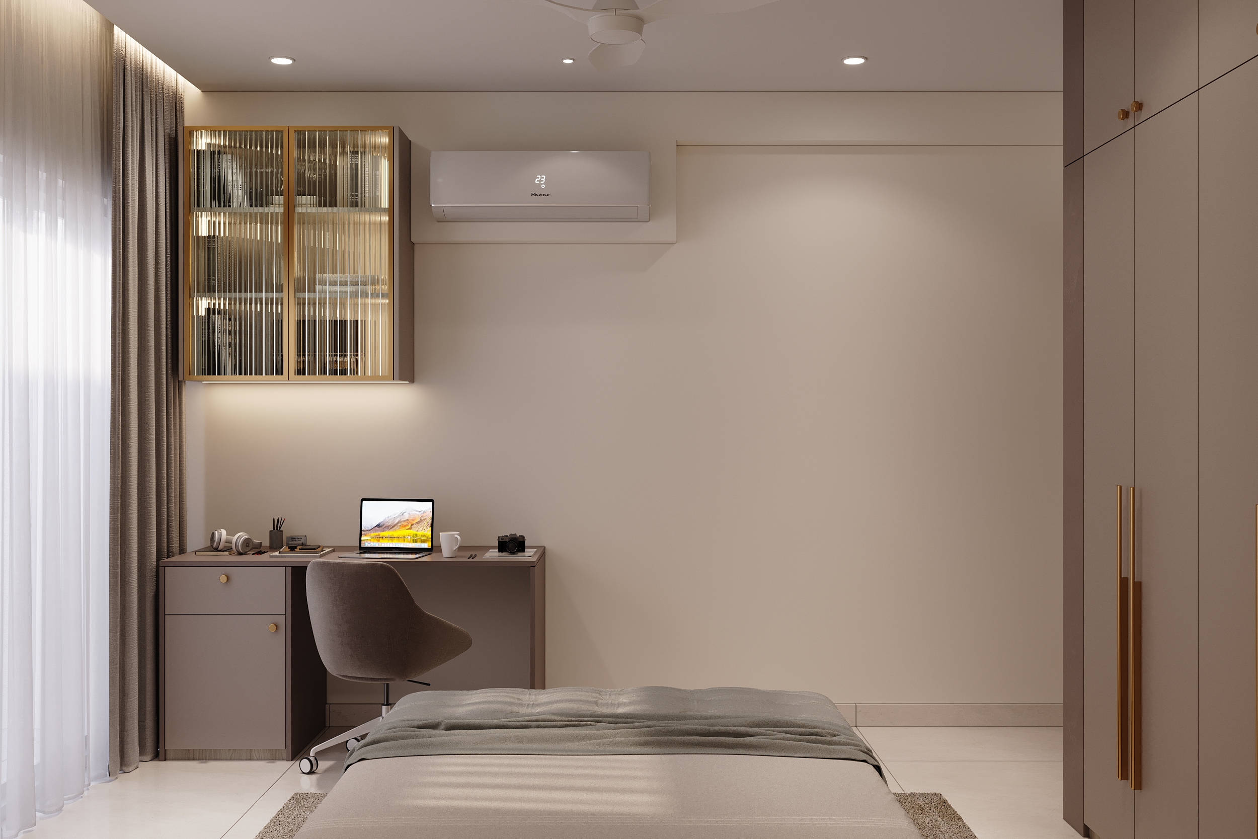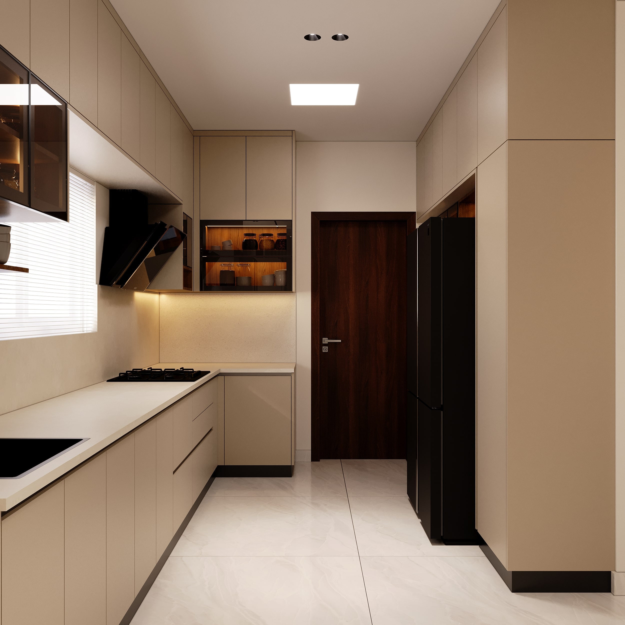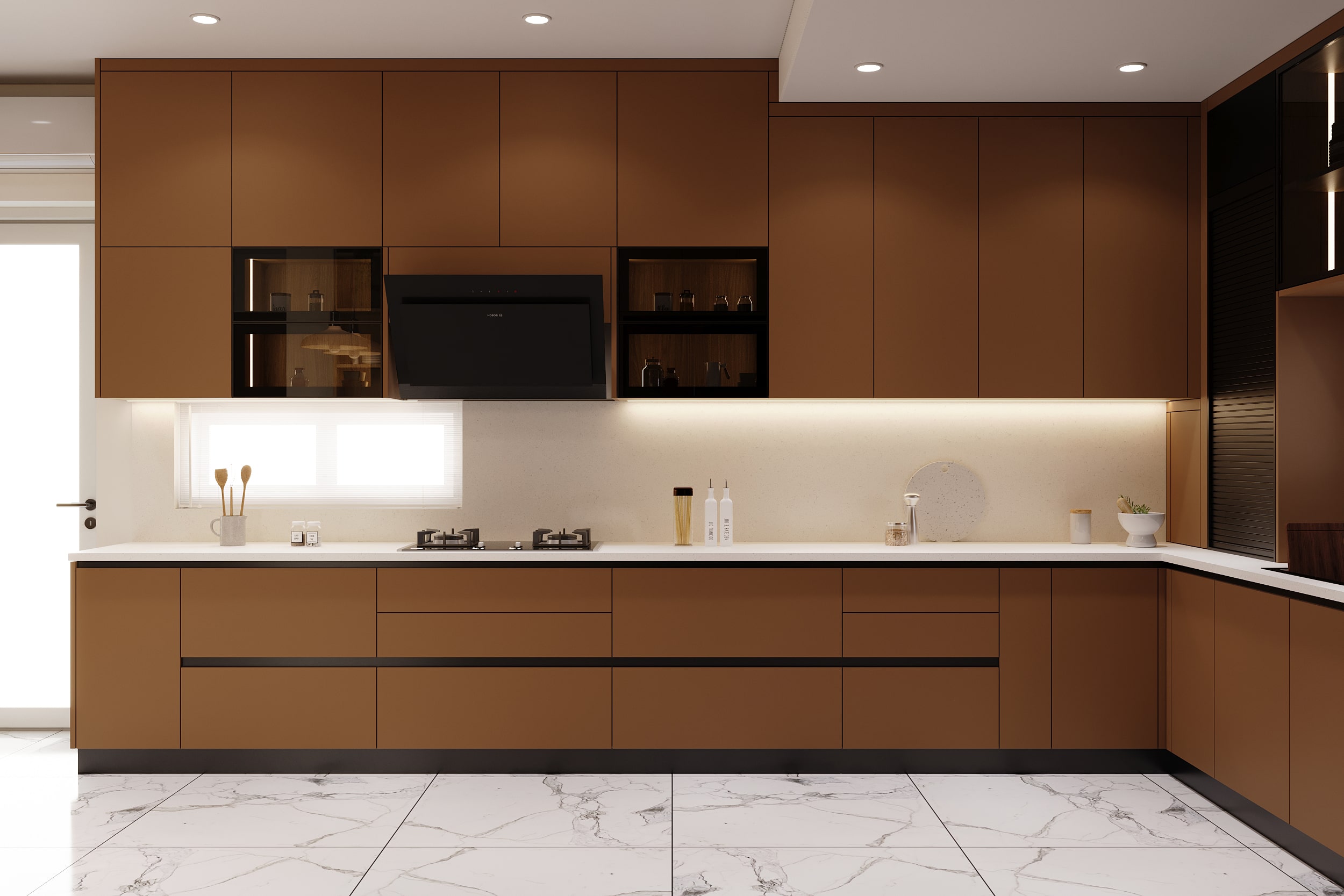 Mr. Dev Baburaj’s residence at SMR Vinay Iconia embodies contemporary luxury with warm tones, sculptural elements, and seamless spatial flow. The living, dining, and lounge areas exude calm refinement through curated textures, refined lighting, and modern minimalism, while the kitchen adds bold sophistication with its harmonious palette and crafted detailing. The bedroom continues this serene narrative with layered neutrals and understated opulence, creating a tranquil retreat that reflects a lifestyle of comfort, clarity, and elevated elegance.