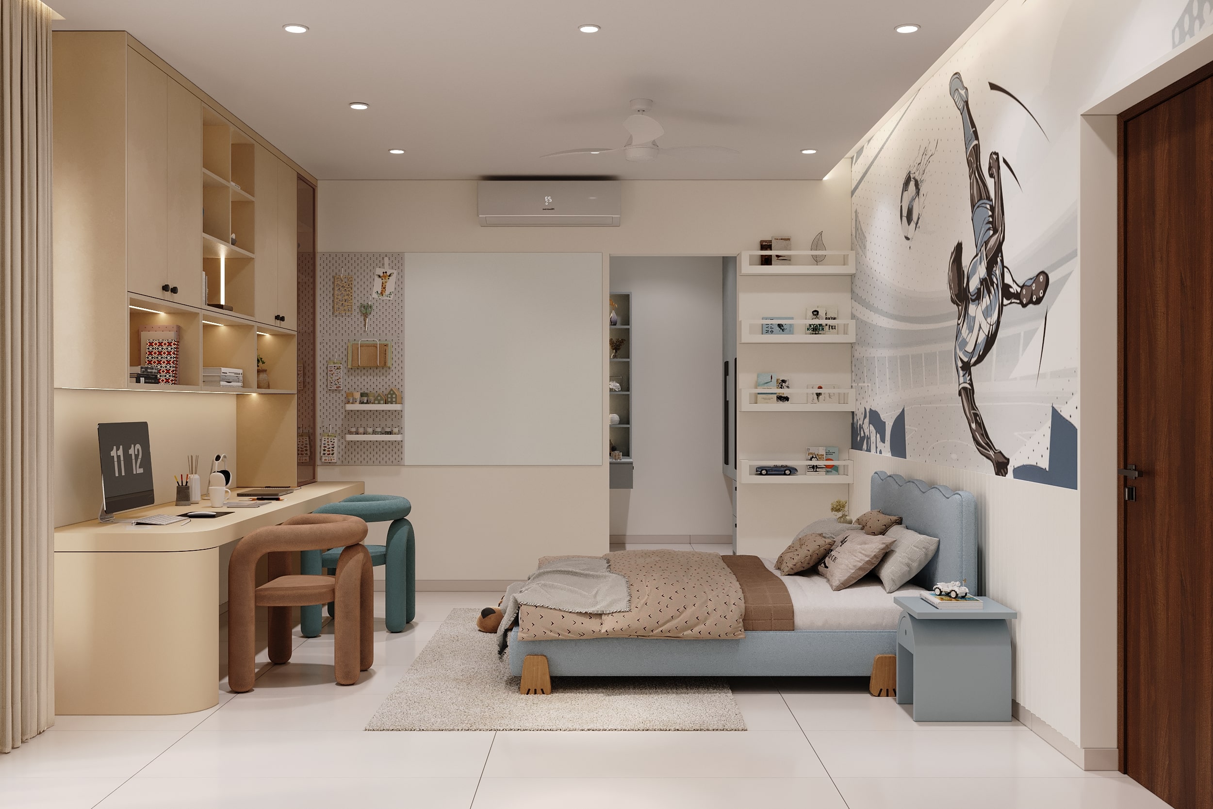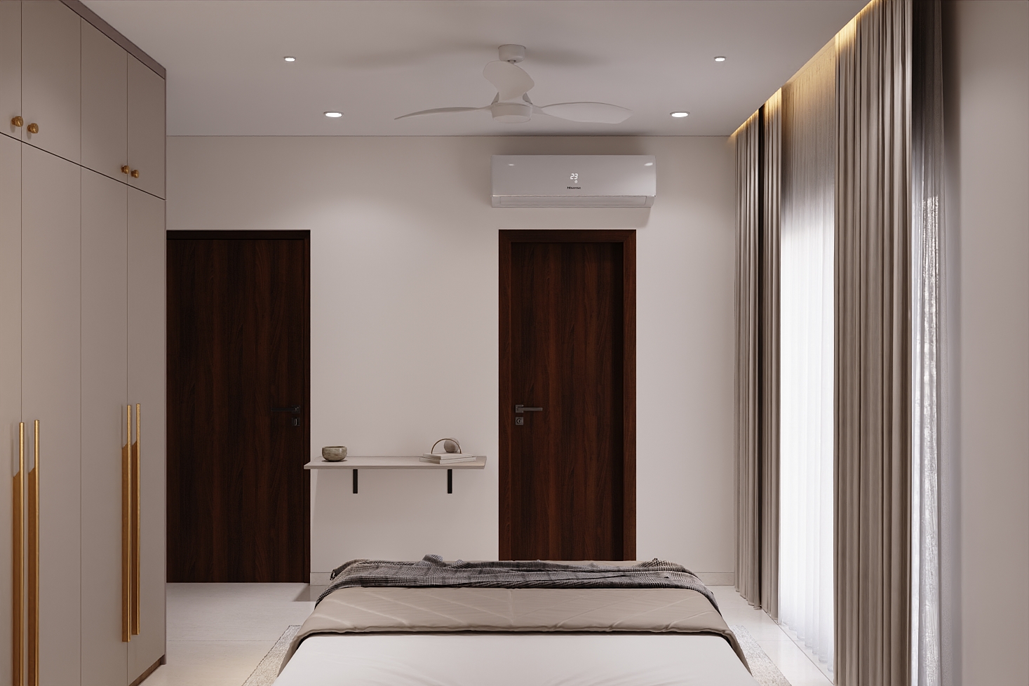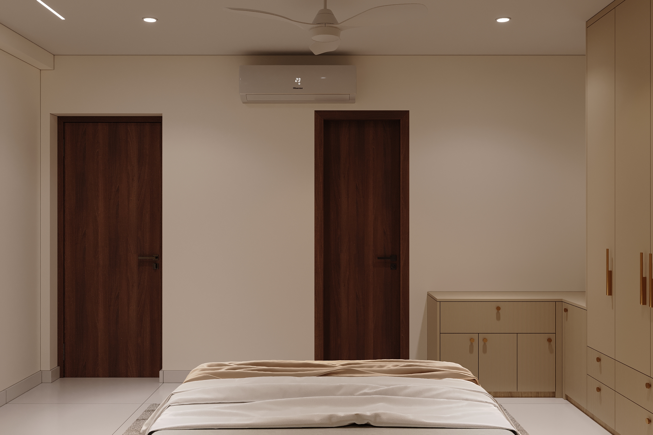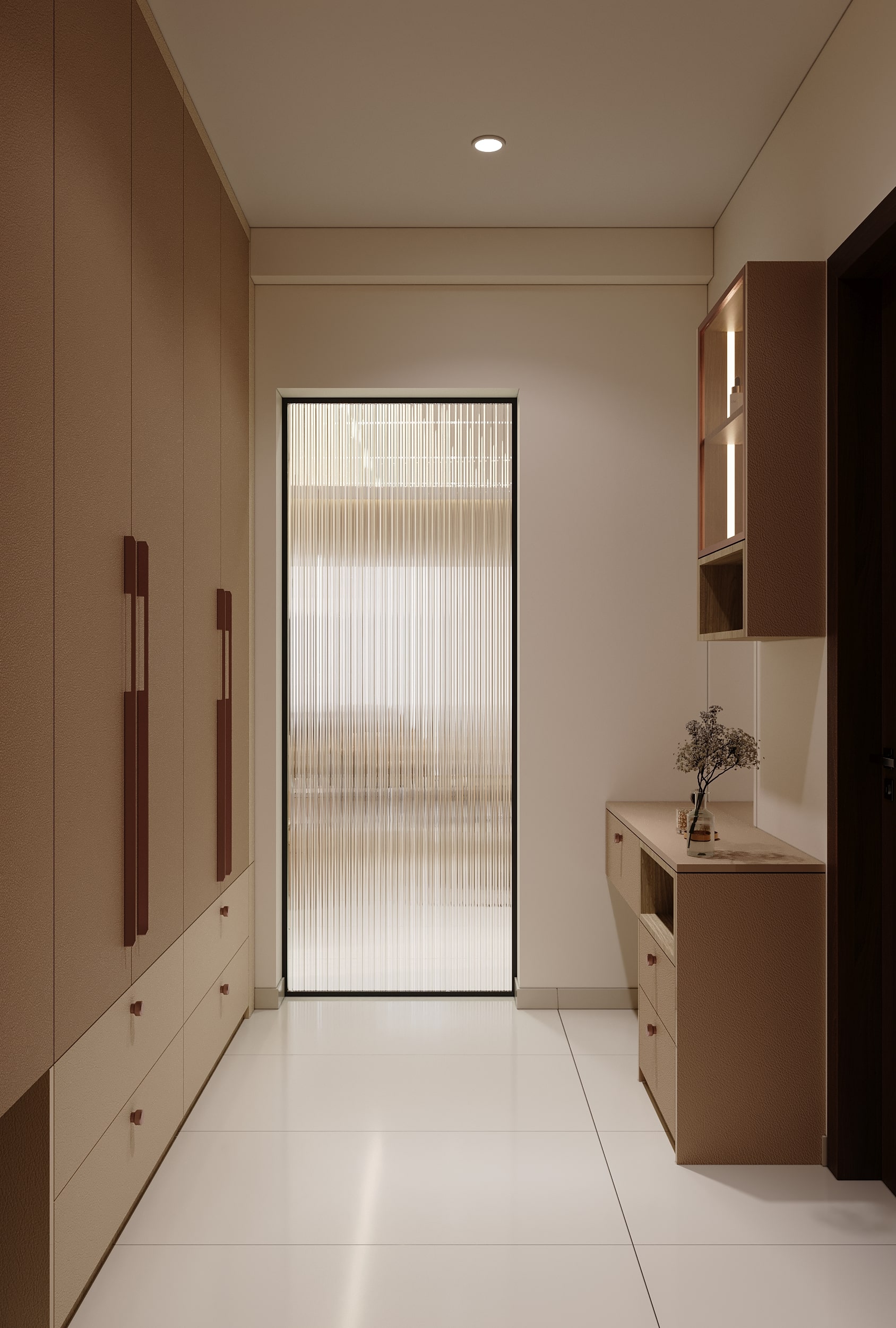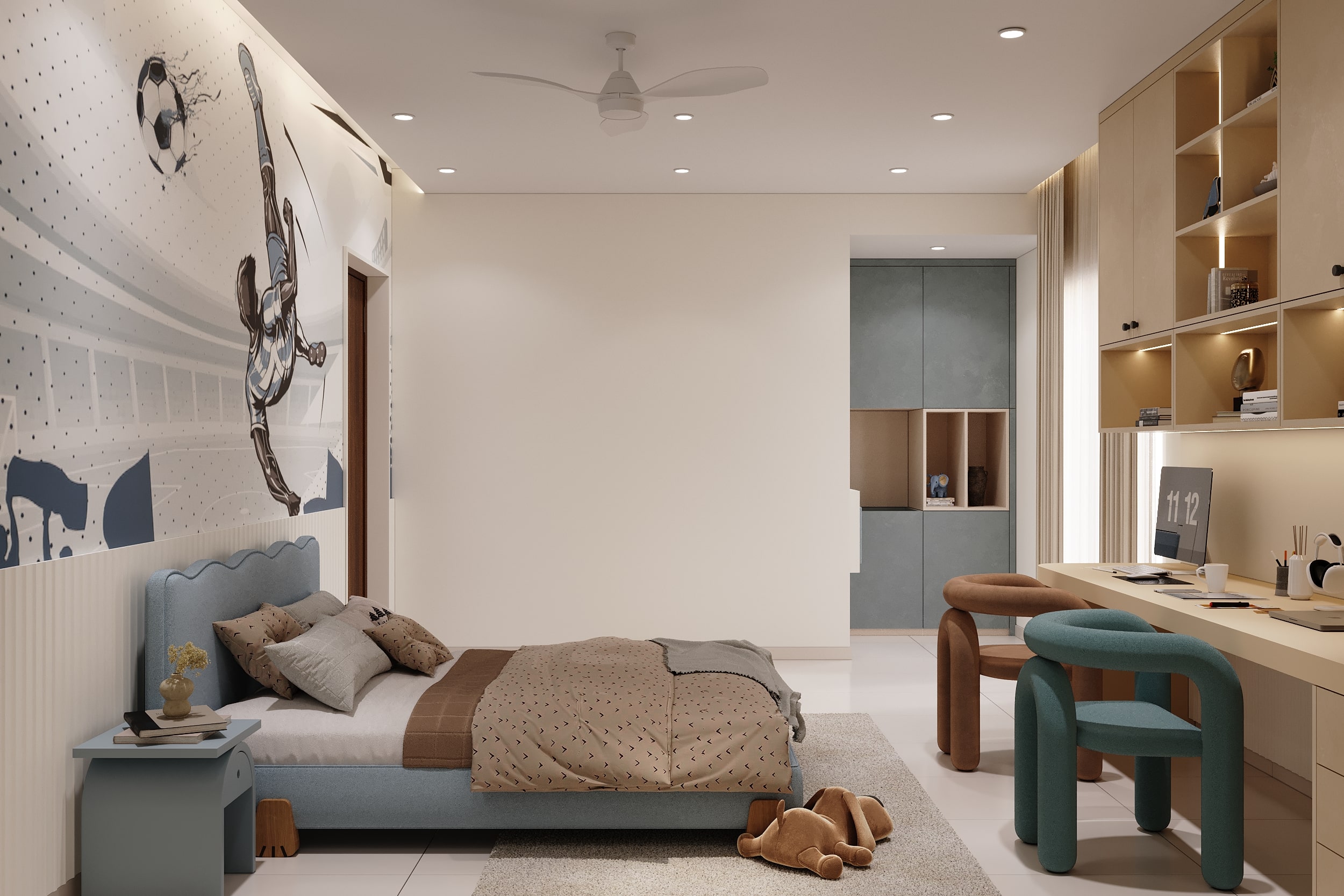 Mr. Dev Baburaj’s residence at SMR Vinay Iconia embodies contemporary luxury with warm tones, sculptural elements, and seamless spatial flow. The living, dining, and lounge areas exude calm refinement through curated textures, refined lighting, and modern minimalism, while the kitchen adds bold sophistication with its harmonious palette and crafted detailing. The bedroom continues this serene narrative with layered neutrals and understated opulence, creating a tranquil retreat that reflects a lifestyle of comfort, clarity, and elevated elegance.