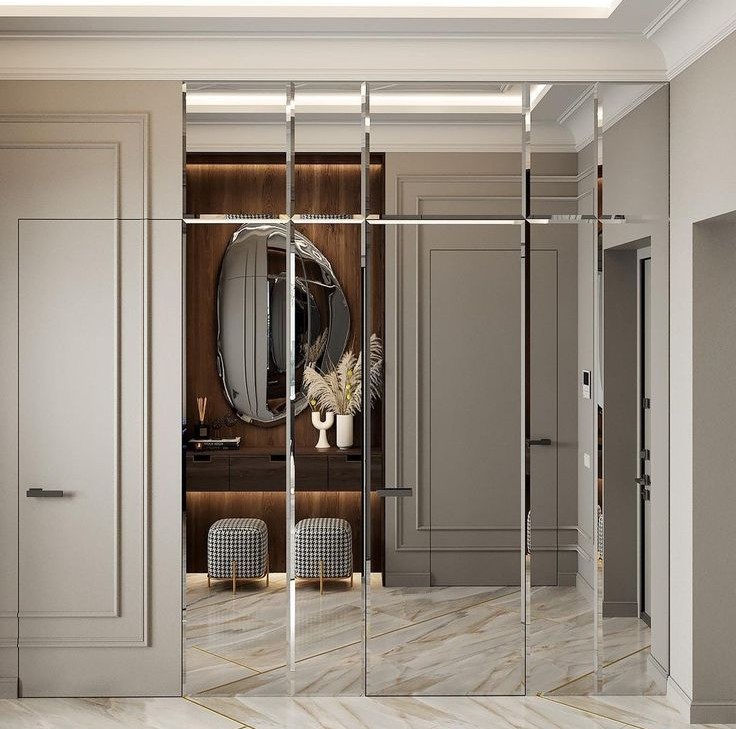Design Tip – Go for metallic finishes or high-gloss panels to create a modern, sleek vibe.