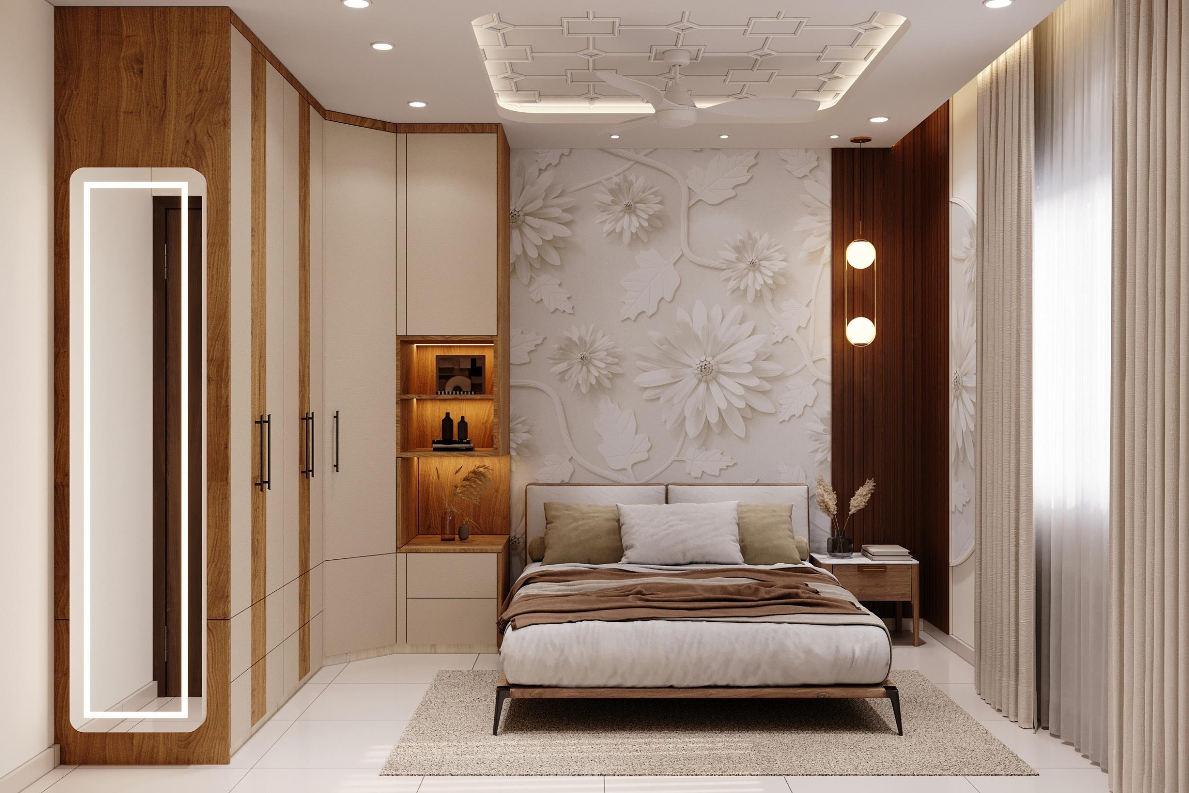 The secondary bedrooms extend this narrative in their own voices — one softened by floral relief walls and warm wooden accents, the other touched by nature-inspired murals and subtle artistry. Each room carries its own character, yet together they speak of harmony: spaces designed not just for rest, but for presence.