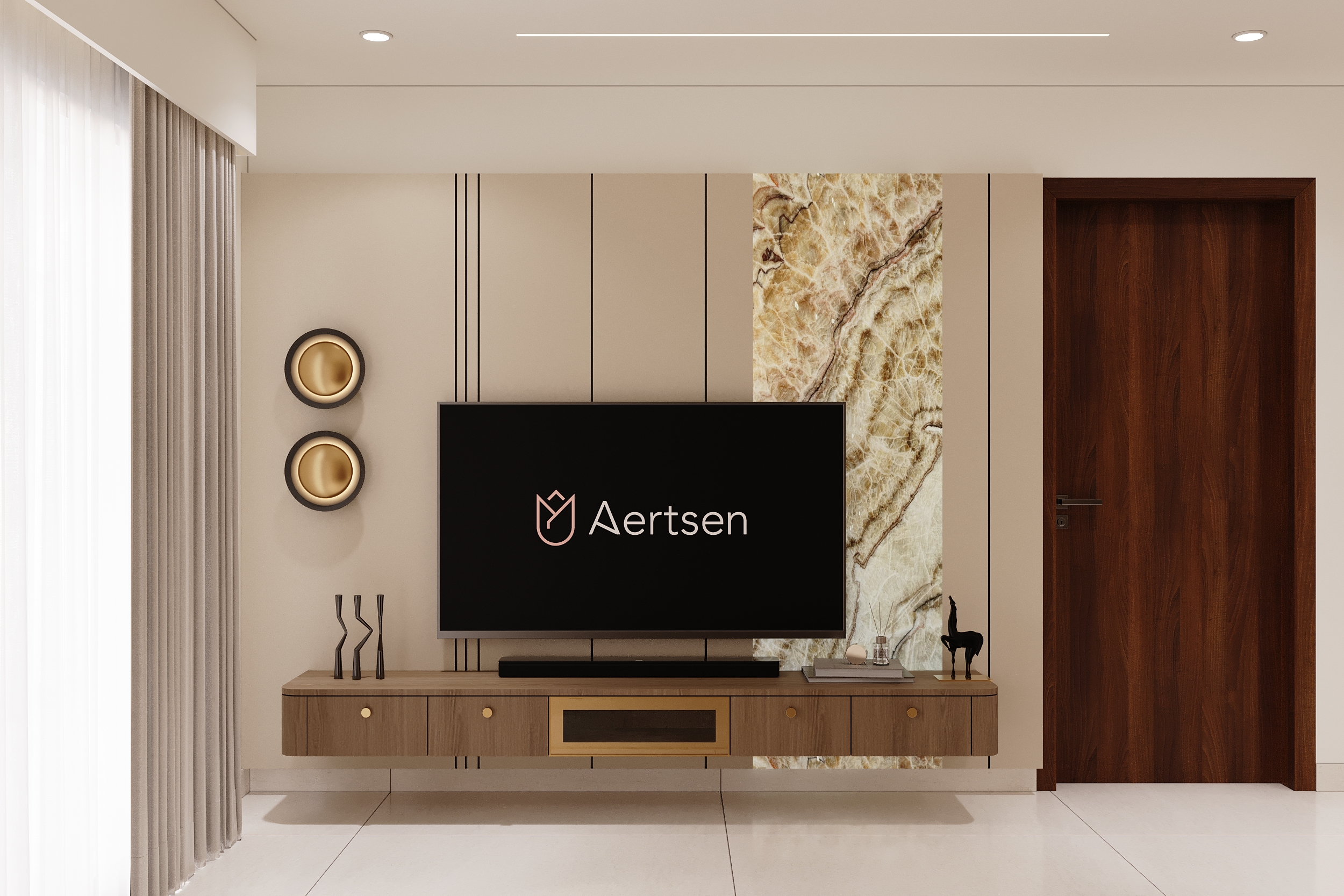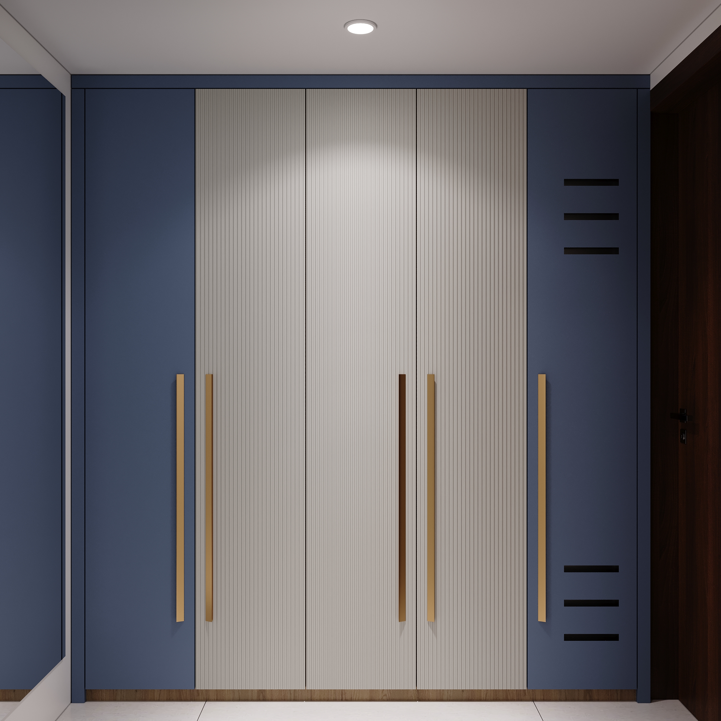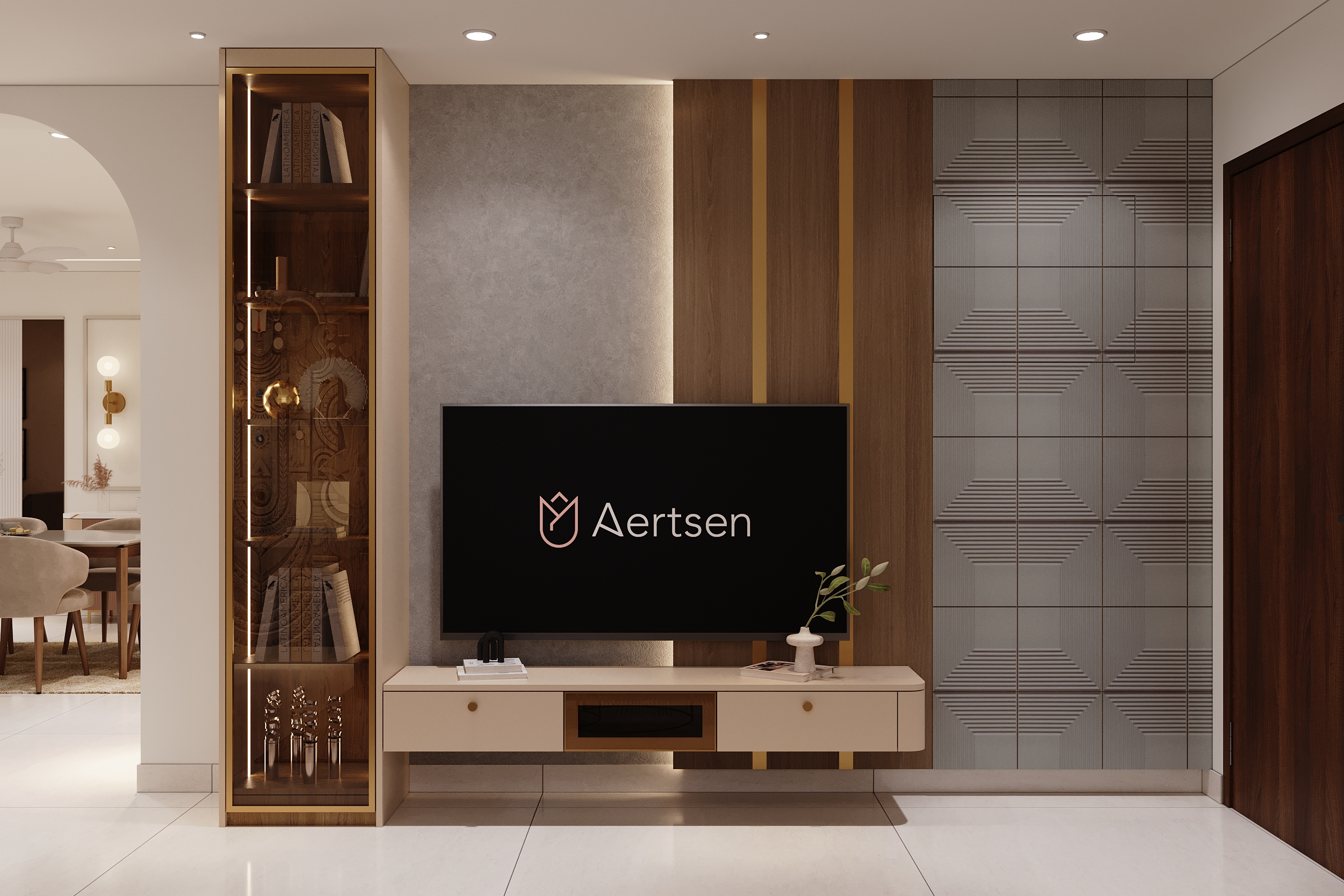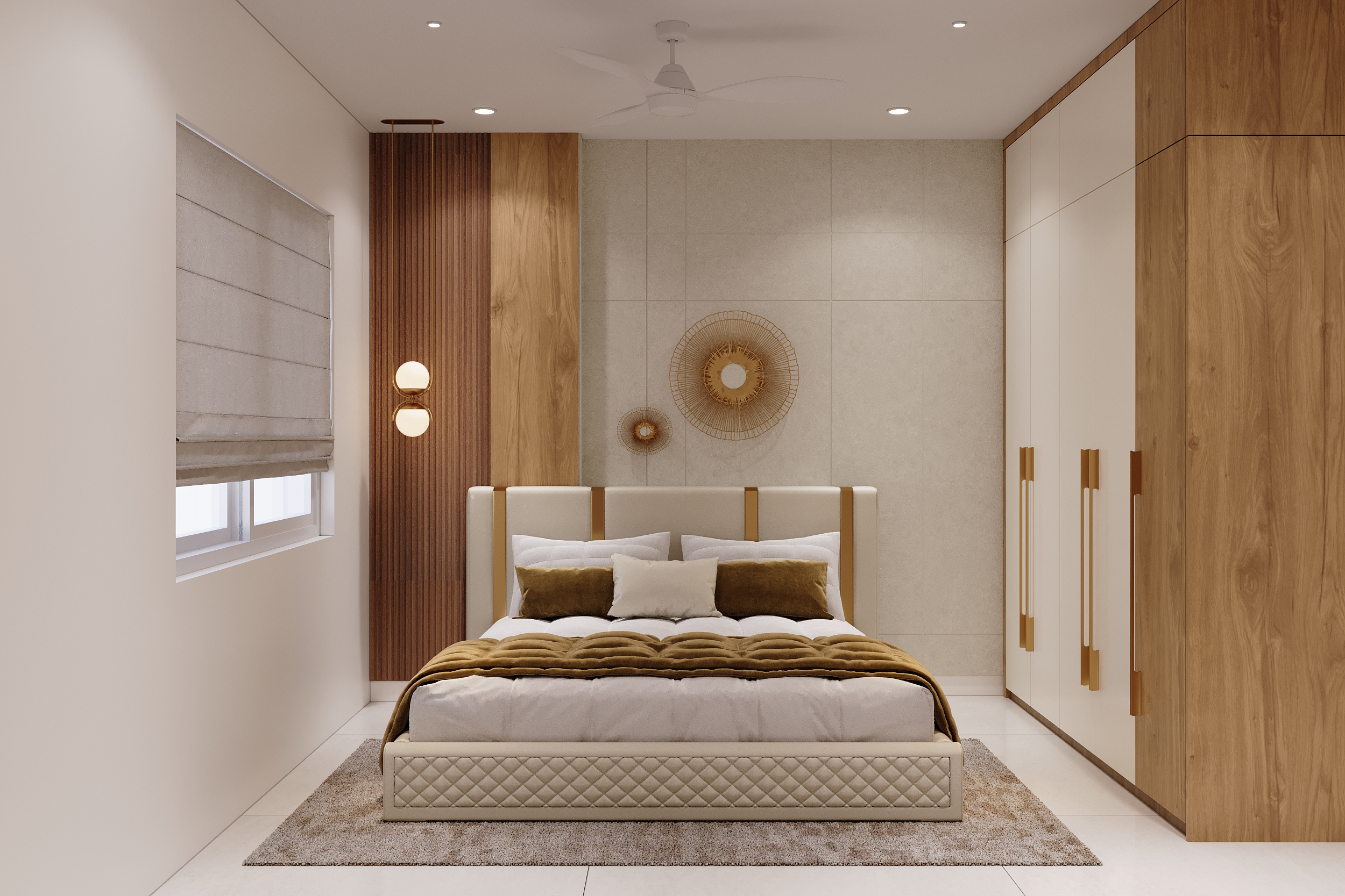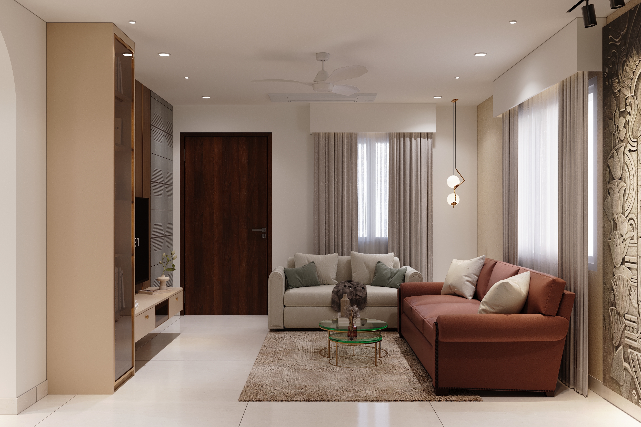 A marble-veined headwall flanked by warm linear lighting, a deep green tufted bedframe, sage wardrobes with gold handles and an arched full-length mirror — every element of this space speaks a language of quiet luxury and considered elegance. From the bespoke study nook to the warmly lit display shelving, every corner is designed to offer both comfort and beauty in equal measurer. A space conceived not merely to rest within, but to truly restore oneself.