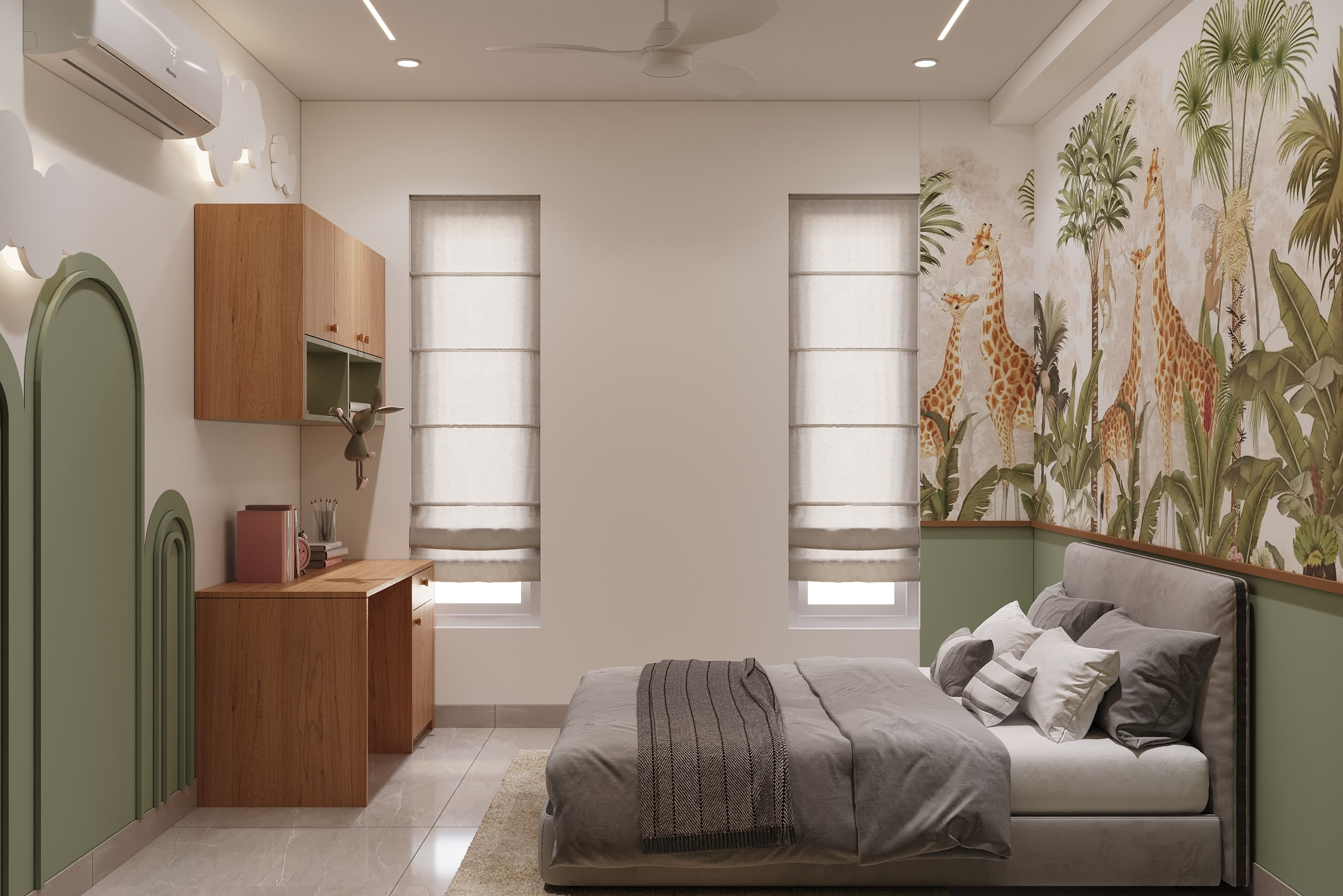 The bedrooms unfold as serene sanctuaries shaped by proportion, softness, and restraint. Muted greens, warm timber, and tailored upholstery create a calm, elevated atmosphere. Light is diffused gently, allowing surfaces to glow with quiet, refined elegance. Every detail is resolved with intention, reinforcing a sense of timeless comfort and repose.