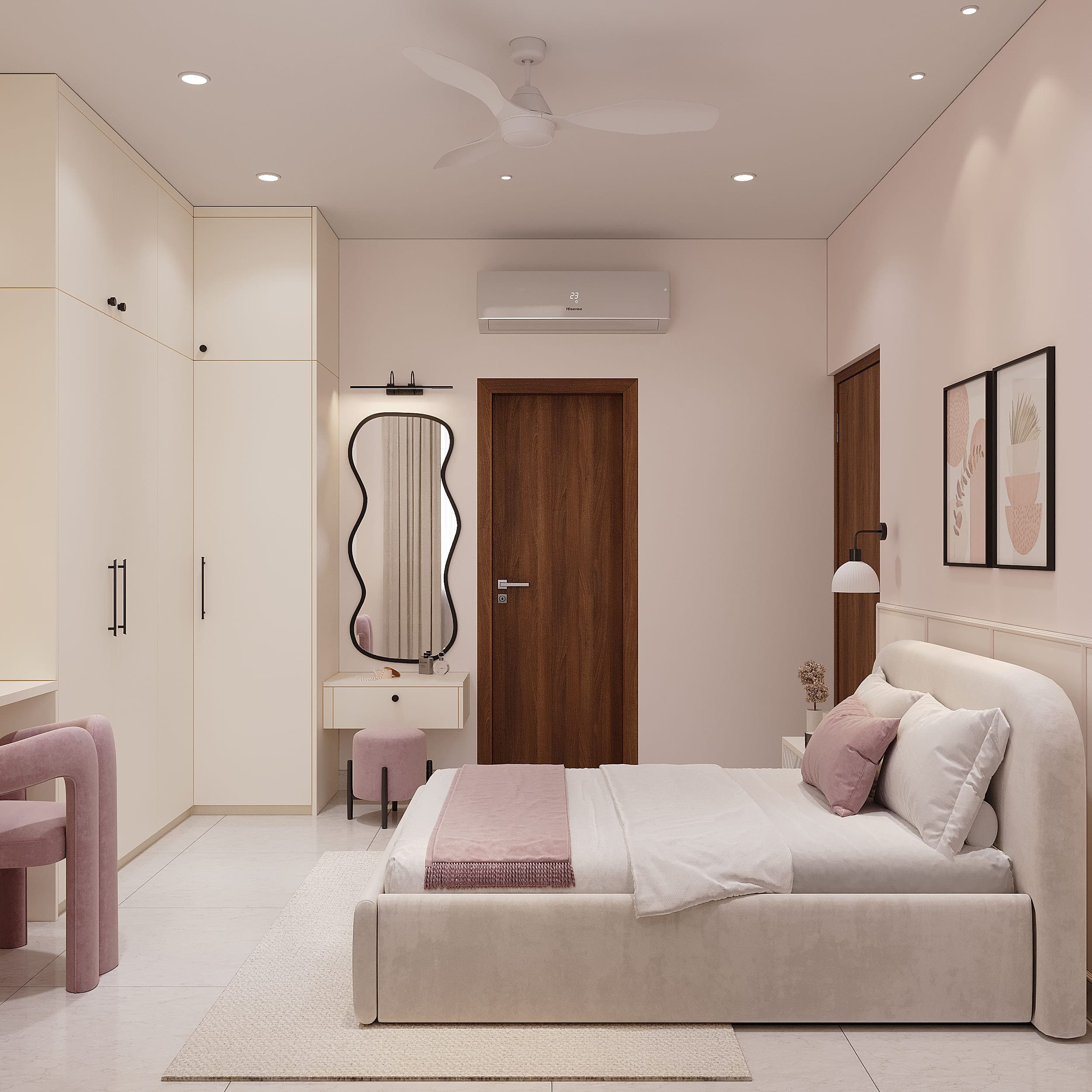 Across the private quarters, the design language softens into a series of composed retreats, each shaped by calm geometry, muted palettes, and tactile restraint. Warm woods, gentle blush tones, and sculpted upholstery create spaces that feel deeply personal yet impeccably edited. Light moves quietly across surfaces, lending every corner a sense of ease, reflection, and tailored comfort.